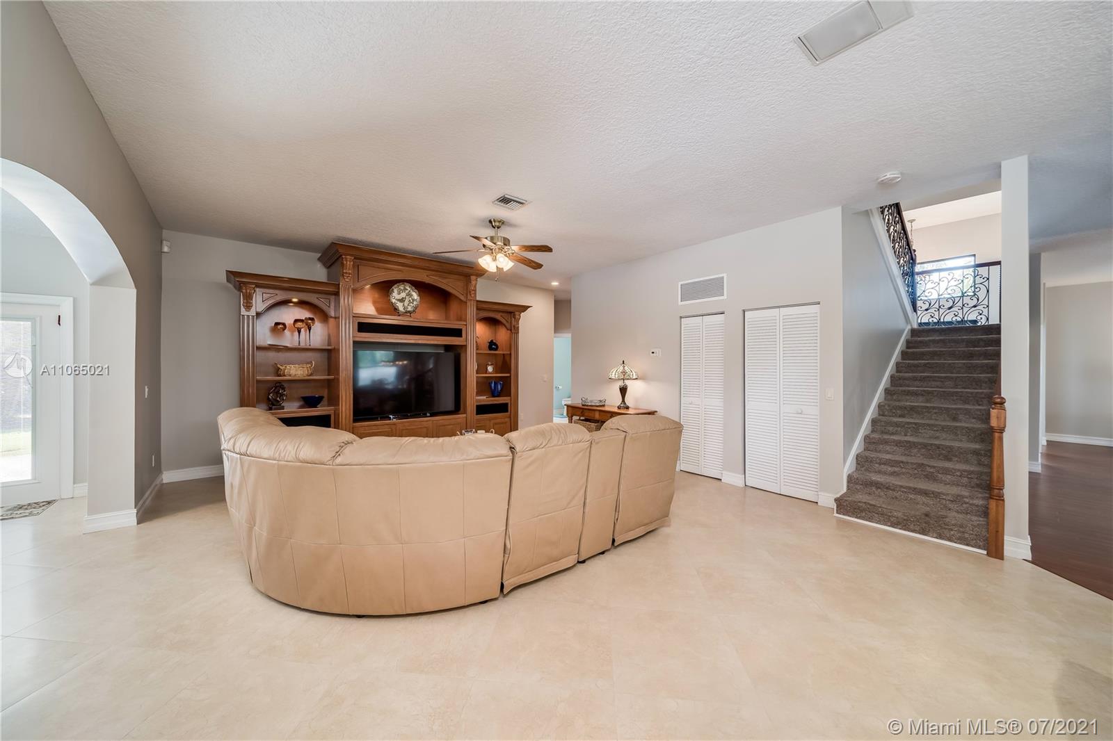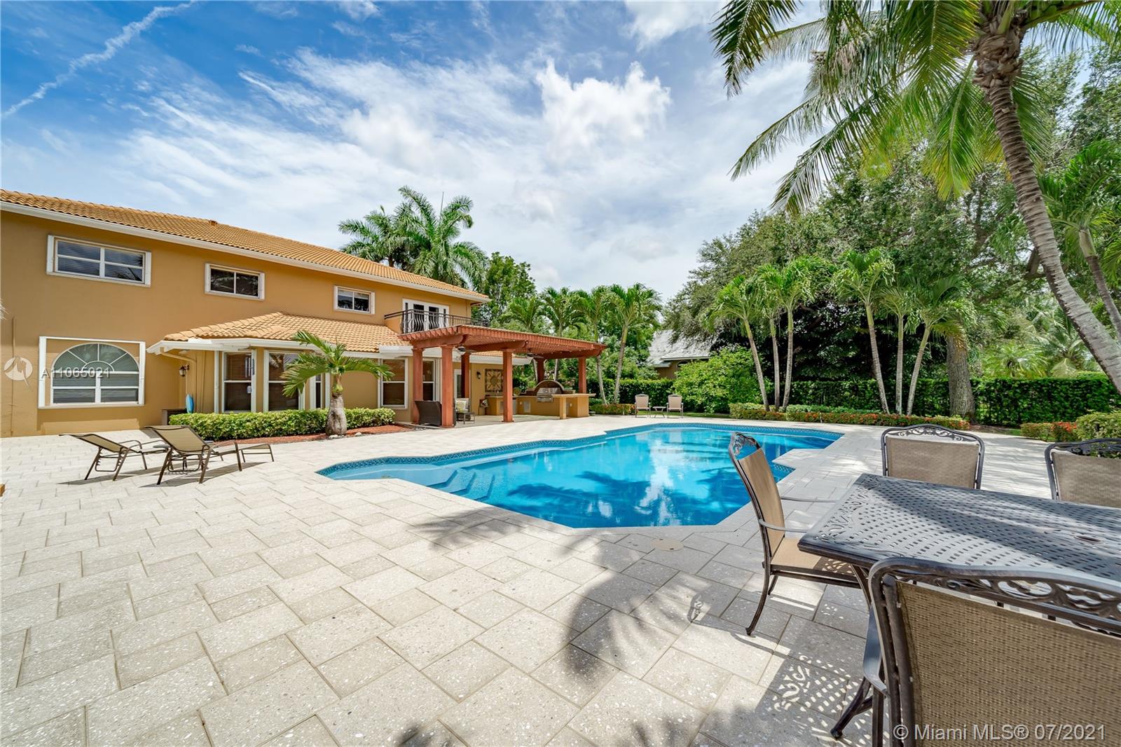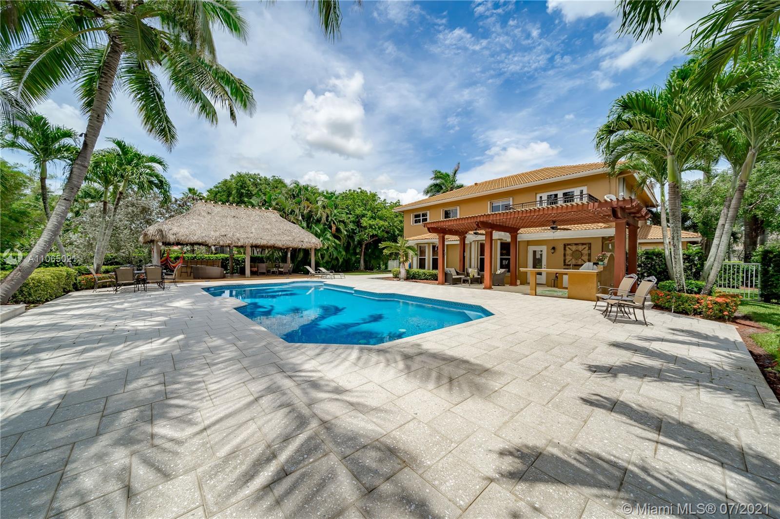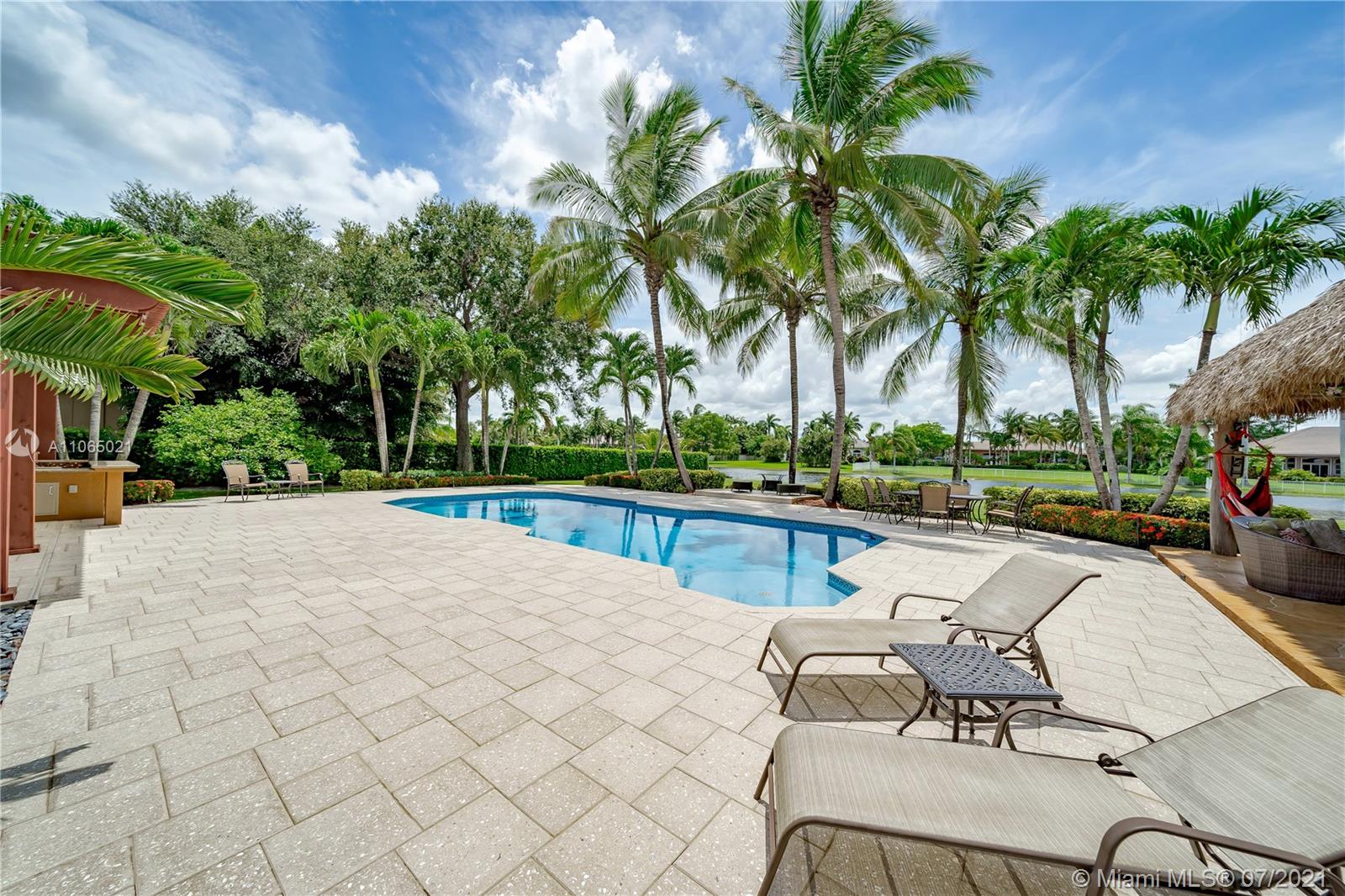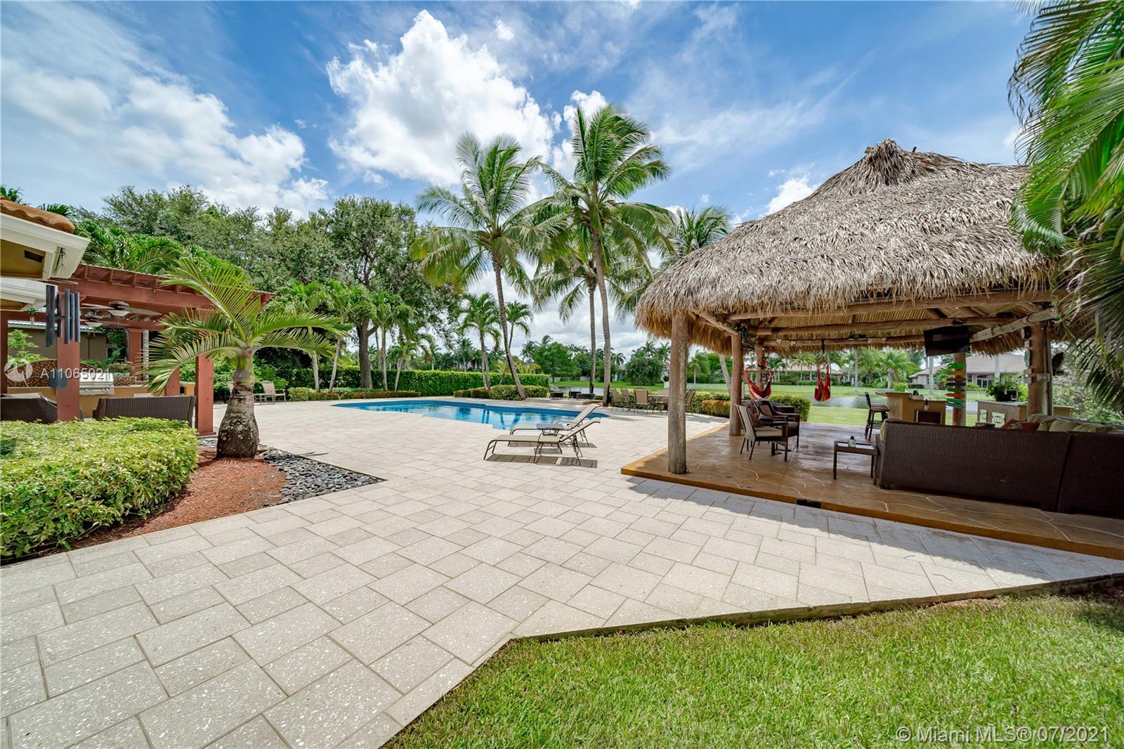 This serene lake estate offers an outdoor lifestyle as well as all the comforts you are looking for in a magnificent spacious home. Soaring entryway welcomes you. Formal living & dining room. Oversized chef's kitchen, breakfast area, open family room with an office/playroom where you can enjoy views of the stunning backyard from every room. Spectacular sunset views as you relax under your 800 sq. foot tiki hut with bar, 2 TV's and movie projector. Oversized pool, Summer kitchen, half BB court, boat launch and fire pit area are added to the upgrades list. Full house generator & a 500 gallon natural gas tank allows for 2 weeks of non-interruptive electricity. 3 car Housewall garage system, oversized driveway for 12 cars. Impact doors and Accordion shutters throughout. Don't miss this gem.