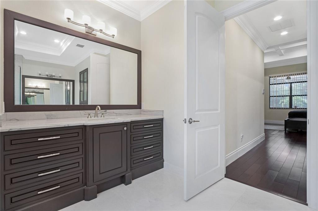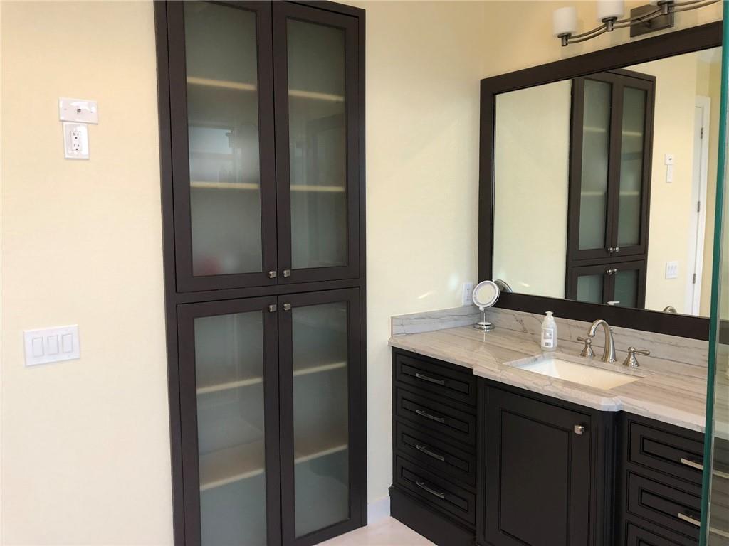 Immaculate, custom home on acre lot (.94) w/custom upgrades! RV & boat parking allowed! Custom kitchen w/stainless steel Sub-Zero & Wolf appliances, w/ long granite countertop island. Custom cabinets in kitchen & bathrooms, w/ granite & quartz countertops. Marble and hardwood flooring. Oversized, screened patio w/ travertine, pool, & outdoor kitchen w/ built-in Artisan grill, mini-fridge, sink, granite countertop, & weatherproof cabinetry, perfect for entertaining. Tray ceilings, w/ moldings, in master, family, living, dining room, & foyer. 7 in. baseboards & crown moldings throughout. Custom bedroom closets. Custom cabinets in garage, w/ work station, by Closet Factory. Extra laundry in garage. Separate guest/in-law quarters w/ bedroom, bathroom, living room, kitchenette pantry, fridge.