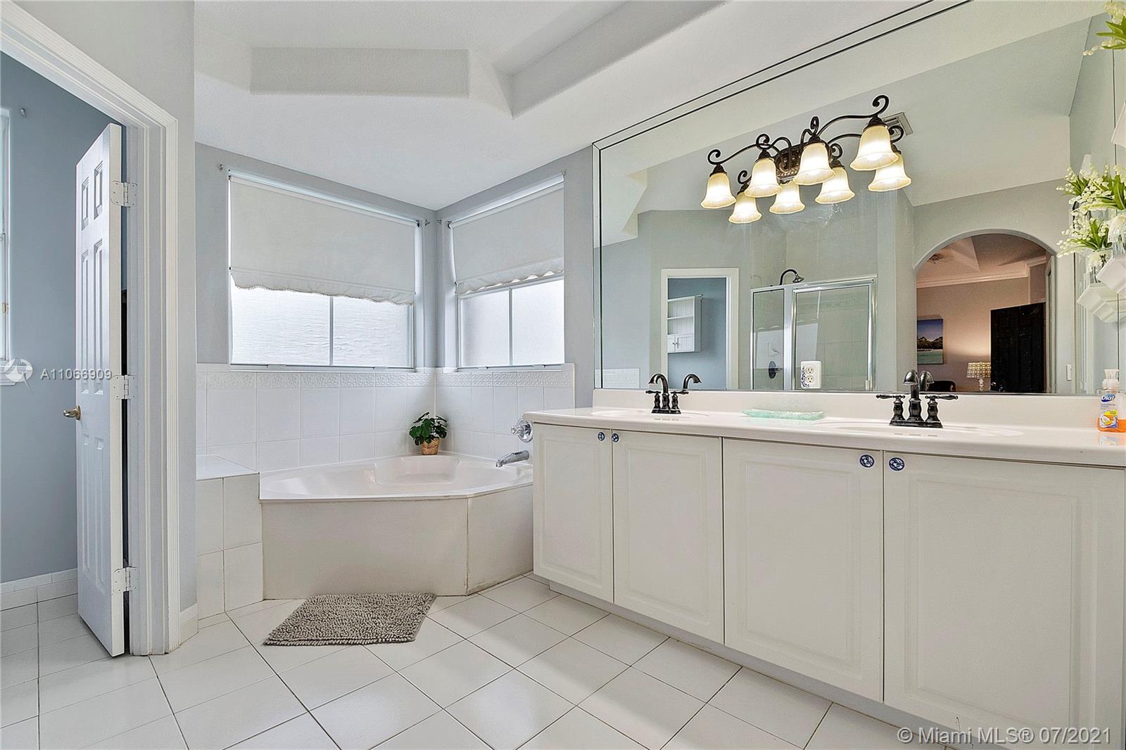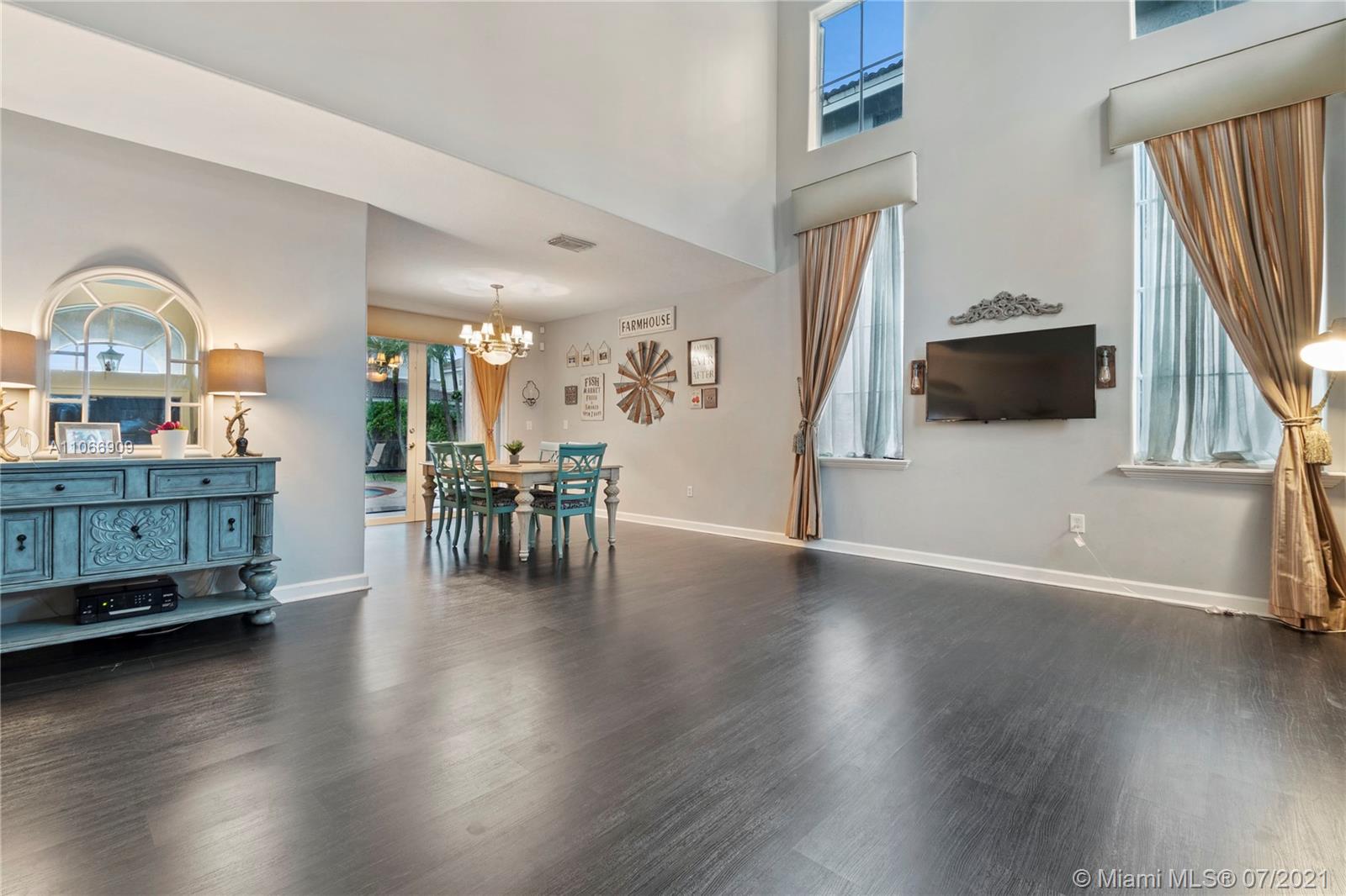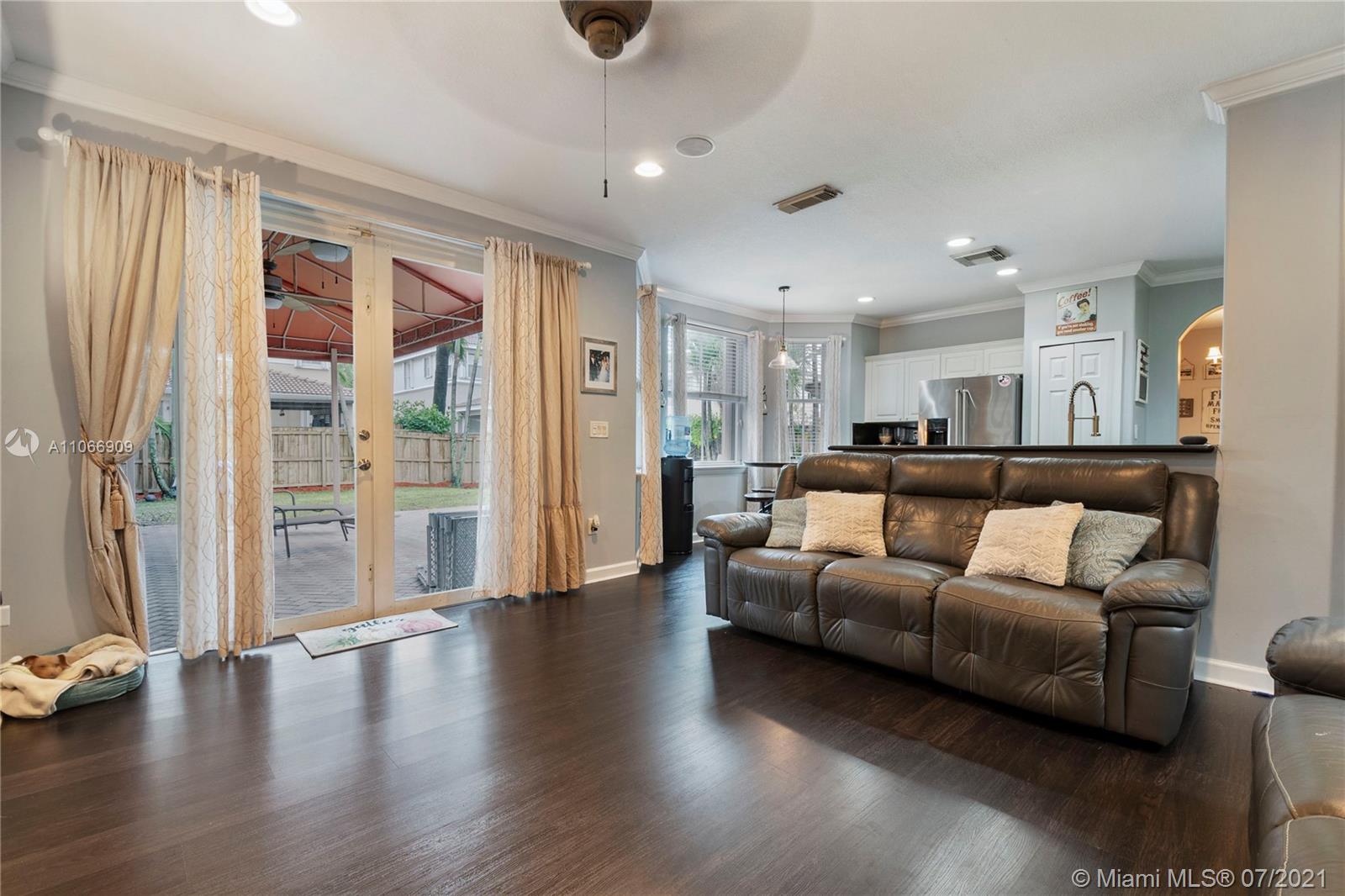 Costa Bonita, a Gated community in Doral. Mediterranean 2-story style home with private pool. Good location in move in condition. Expresso wood laminate floors throughout. Freshly painted interiors, crown moldings. New kitchen cabinets with granite counters and all stainless steel appliances. 2nd floor master suite with huge walk in closet and bathroom. Generous sized bedrooms, all upstairs. Accordion shutters for hurricane protection. Pool with surrounding brick pavers and awning, pool fence, rain gutters. Low monthly maintenance fee of $ 175.00 a month.