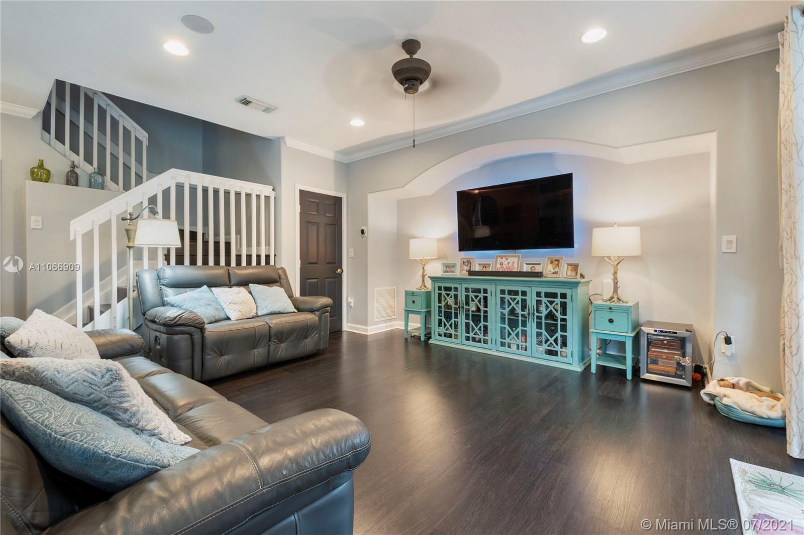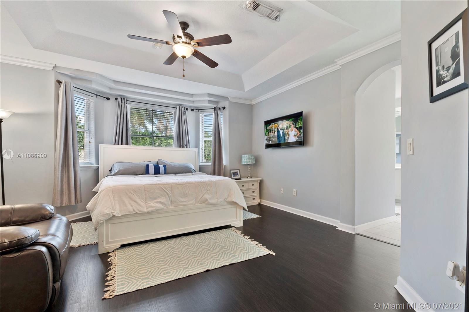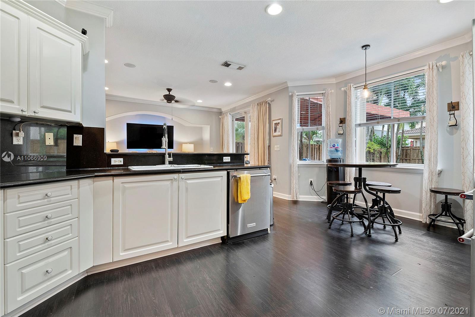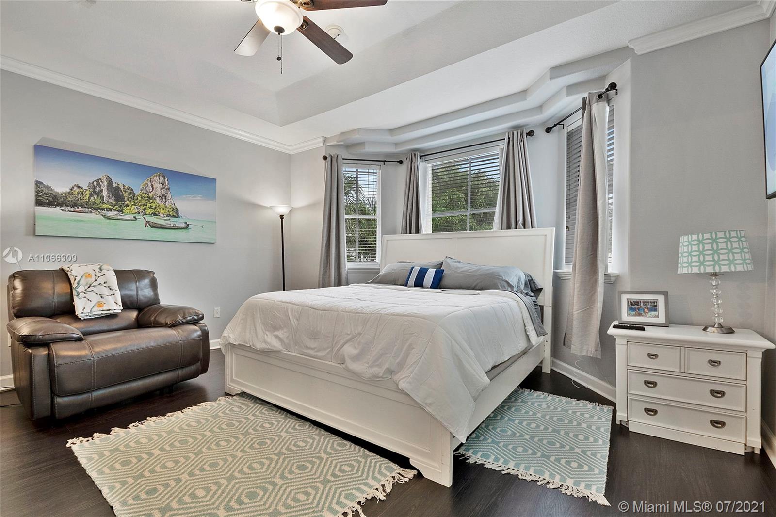 Costa Bonita, a Gated community in Doral. Mediterranean 2-story style home with private pool. Good location in move in condition. Expresso wood laminate floors throughout. Freshly painted interiors, crown moldings. New kitchen cabinets with granite counters and all stainless steel appliances. 2nd floor master suite with huge walk in closet and bathroom. Generous sized bedrooms, all upstairs. Accordion shutters for hurricane protection. Pool with surrounding brick pavers and awning, pool fence, rain gutters. Low monthly maintenance fee of $ 175.00 a month.