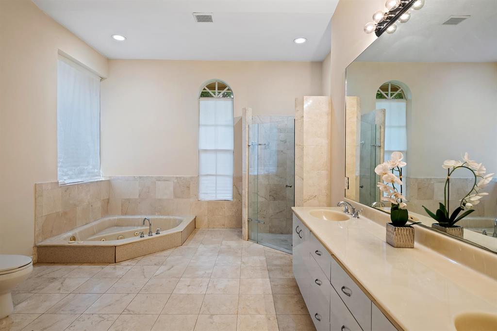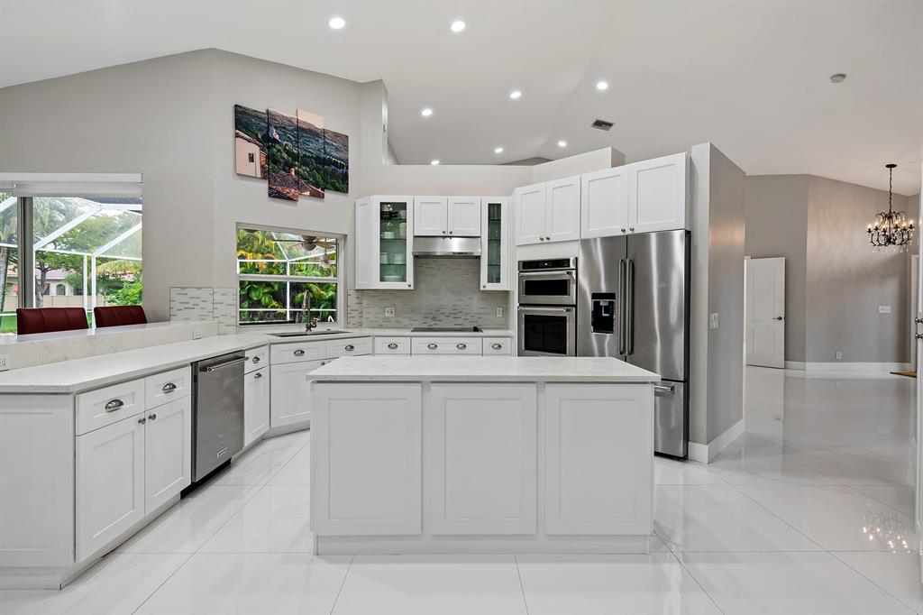 Spectacular home on a large lot in the highly desirable gated community with 24/7 security of Ridgeview Estates. The home is completely remodeled with high end contemporary finishes. Porcelain tile flooring is throughout the home. The Kitchen has top of the line stainless steel appliances, quartz countertops and white shaker cabinets. Their is also an island and bar top. 2 bathrooms have been upgraded with beautiful vanities and fixtures. The split floor plan has a spacious master bedroom with adjoining den. 15 foot vaulted ceilings with clerestory windows and added recessed lighting add for an open vibrant feel with tons of natural light. Living, dining and family room plus the breakfast area are very spacious. Washer, Dryer, Water heater and AC are less than 5 years old.