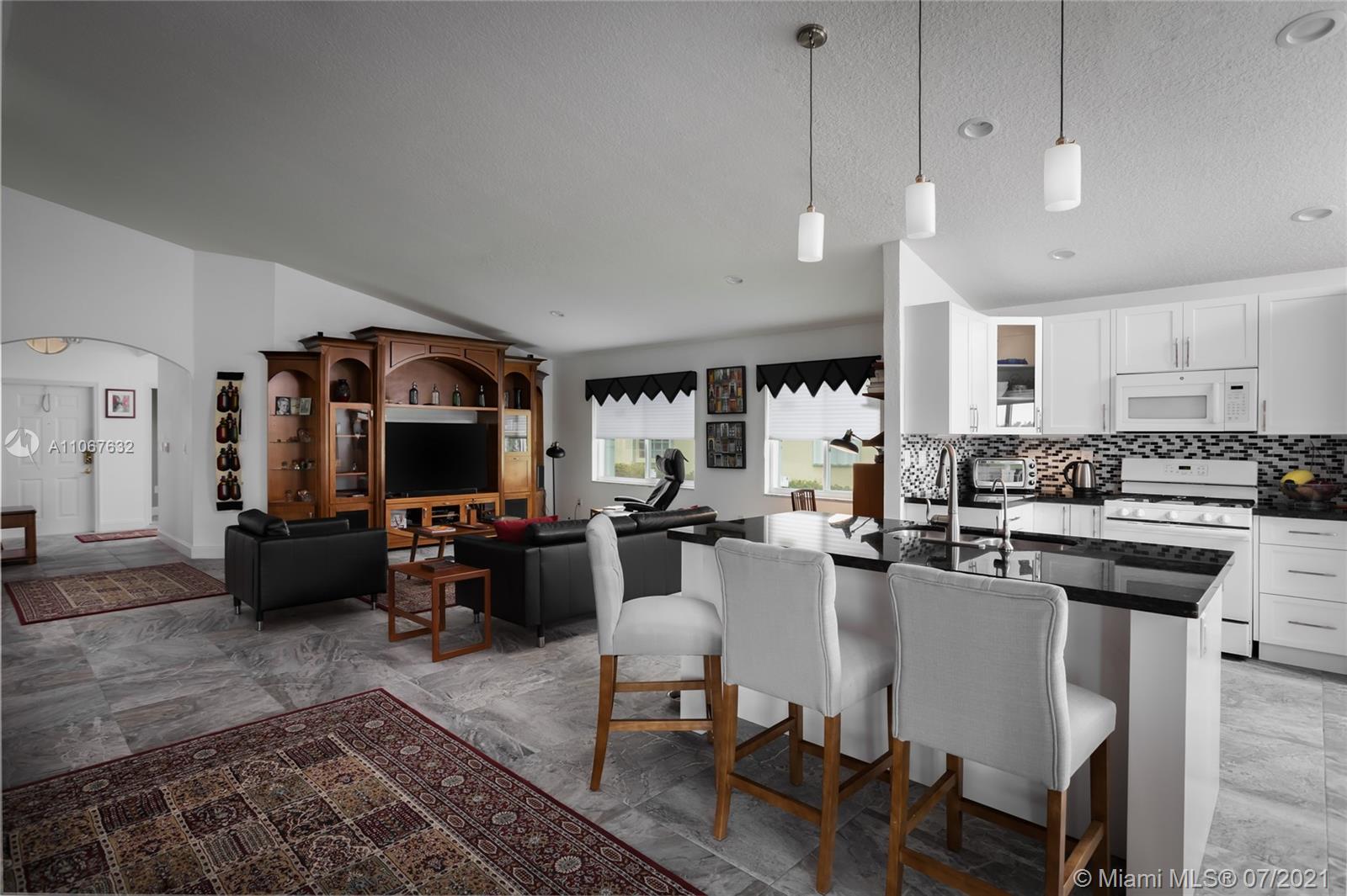 Light and bright open concept floor plan*Lakeview*gated community*new roof in 2016*high impact garage door in 2019*24” tiles*knockdown volume ceilings with high hat lighting*huge granite cooking island*new Bosch dishwasher in 2019*new garbage disposal in 2019*gas stove*eat-in kitchen*French door & all 8 high impact windows plus accordion shutters*ceiling fans in living room, 3 bedrooms & 2 in patio*master bedroom with two closets, one is a walk-in and double door entrance*extra storage in garage*screened in covered patio*Hunter Douglas blinds* security patrol*handicap access home*resort style living*lots of amenities: beach,three pools,play grounds,tennis and basketball courts,gym,fishing piers,picnic areas,jogging/cycling paths,beach volleyball,library and more. ABSOLUTELY A MUST SEE!!!!