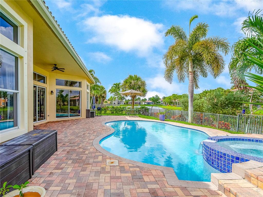 SPECTACULAR 5 Bedroom Pool home on Heron Bay’s most MAGNIFICENT Waterfront lot! Stunning long lake views and gorgeous sunsets await. Large fenced yard, a butterfly garden, and a big Lanai overlooking the heated pool, spa & lake. This spacious Ashton model features high vol/tray ceilings, transom windows, diagonal tile floors. This triple split open floor plan delivers million-dollar views from almost every room. Upgraded kitchen off the family rm w/breakfast area, SS appliances, granite counters, tiled backsplash. Laundry rm with sink. Master suite w/sitting area & his & her walk-in closets. Master bath w/dual sinks, roman tub & walk-in shower. Oversized garage features 600sqft of semi-finished attic space, 90sqft of storage racks, even room for a workbench, and more.
