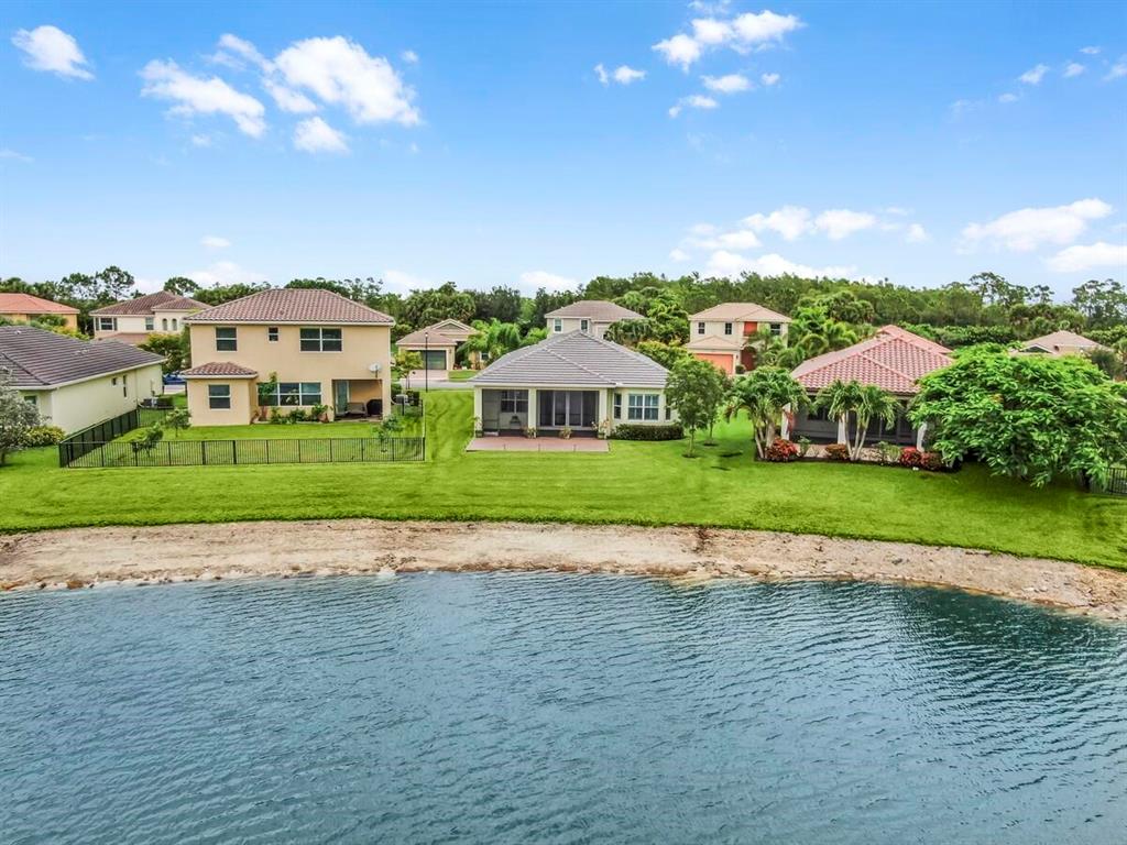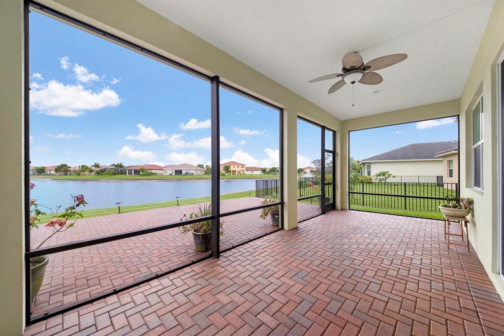Be prepared to be inspired by this stunning 4 bedroom, 2.5 bath lake front home with impact windows and doors in the sought after community of Portosol. The perfect layout to entertain with a formal dining room, living room and screen enclosed patio. The dream kitchen includes stainless steel appliances, granite countertops, 42'' upper cabinets, counter height seating at the island, breakfast nook and a large pantry. The spacious master suite includes a coffered ceiling, 2 large walk in closets, bay windows, double sinks and large walk in shower. Tile laid on the diagonal, plantation shutters, high hat lighting, neutral decor and abundance of light finishes off the home. Enjoy your tropical paradise with a screen enclosed and an open patio with a stunning lake view.