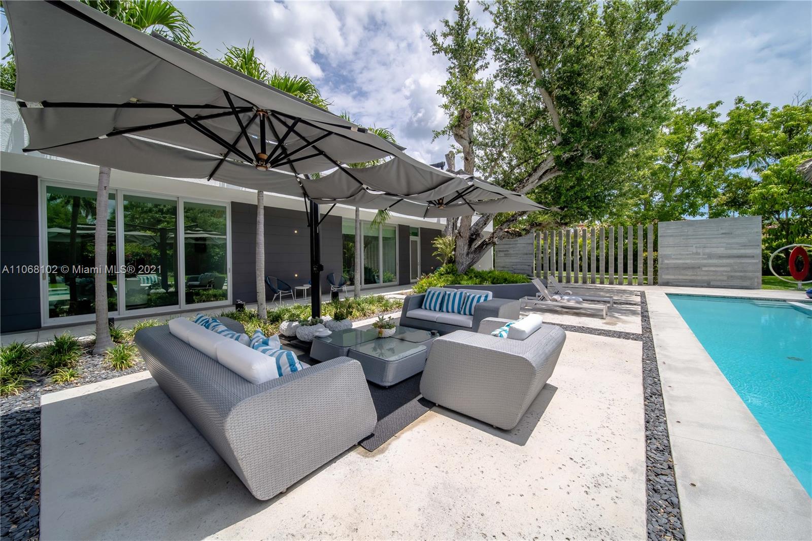 Welcome to "Casa De El Roble" - This home was designed by award winning architect Ronny J Mateu and sure is a modern masterpiece built around two beautiful oak trees which blends the contemporary interior with striking exterior landscapes and large 50 foot pool. The interior features double-height ceilings and walls of glass throughout for exquisite natural light. Surrounded by many prestigious A+ schools, and its proximity to many shopping centers this property provides a timeless work of art for a perfect family. Can be sold furnished.
