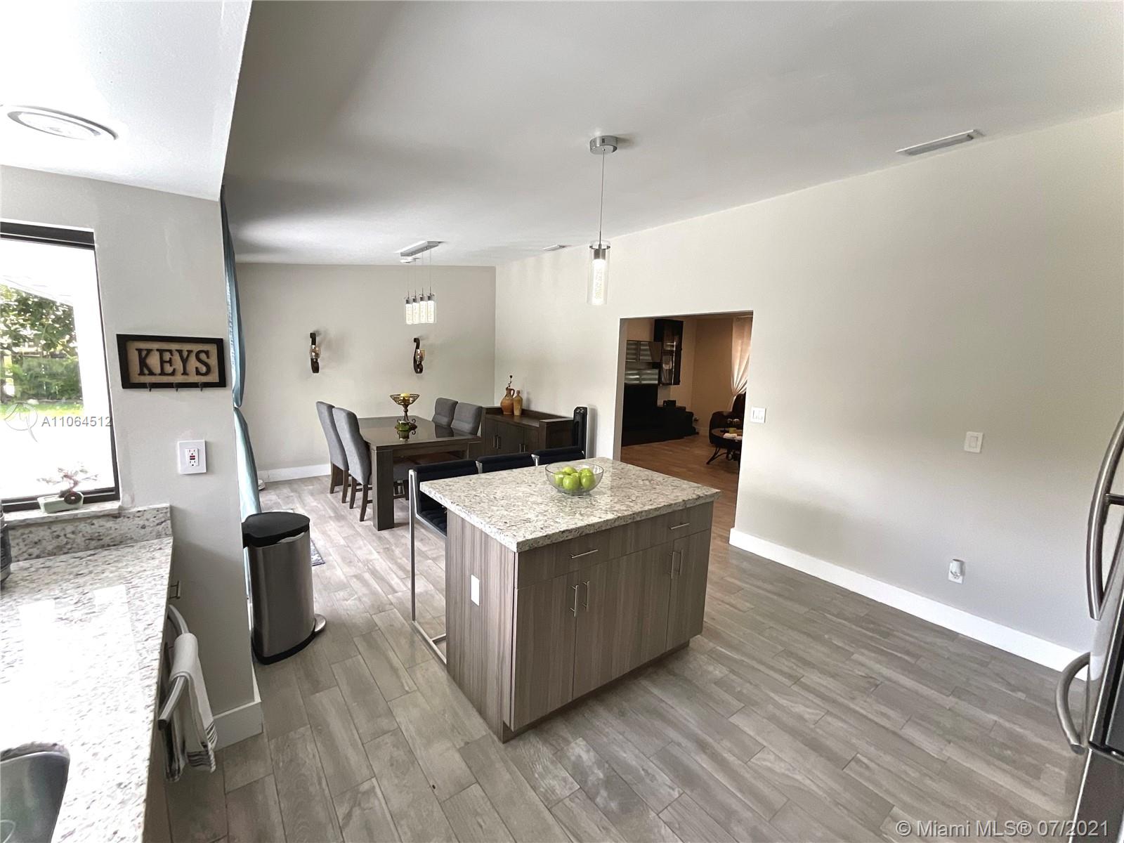 BEAUTIFUL 3/2 PLUS 1 CAR GARAGE. REMODELED LARGE CORNER HOME ON A CUL DE SAC. BRAND NEW FLOORING, NEW IMPACT RATED FRONT DOOR, NEW KITCHEN, NEW BATHROOM, GRANITE COUNTERTOP. HIGH CEILINGS, LARGE WINDOWS. LOTS OF NATURAL LIGHT THROUGHOUT THE HOUSE. REMODELED MASTER BATH, DOUBLE SINKS, NEW CABINETS. HUGE BACK YARD WITH ENOUGH SPACE TO BUILD A POOL.