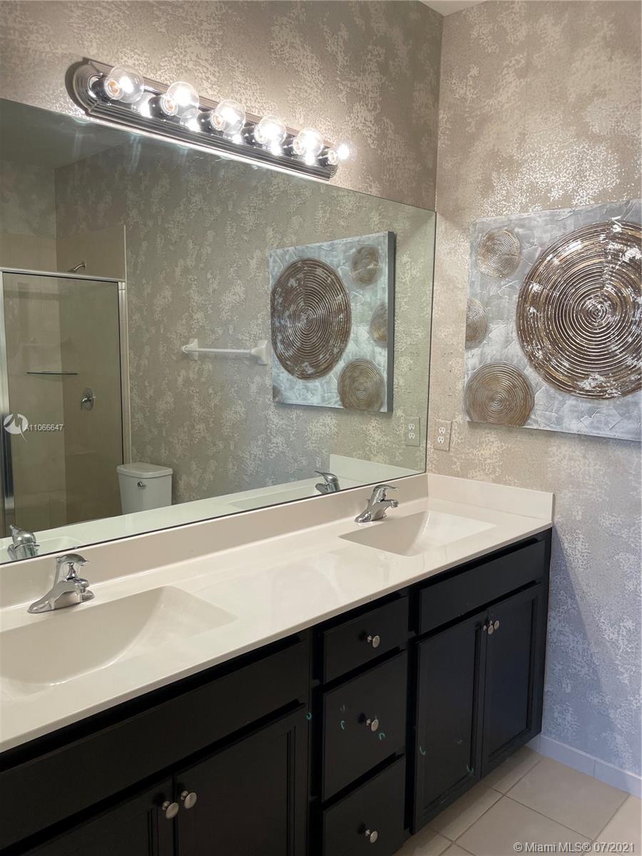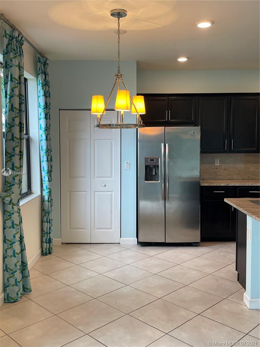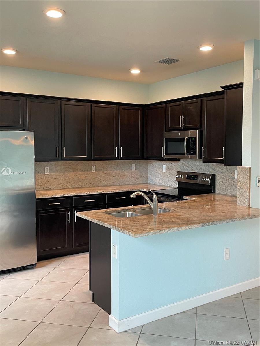 Welcome to this one of a kind LENNAR MODEL Townhouse. Total upgrades throughout, Premium kitchen cabinets and granite kitchen counter tops, Premium top mounted stair handrail with black metal pickets, diagonally installed tile on 1st floor, speakers in great room and upstairs hallway, entertainment alcove in family room pre-wired for surround sound, wall art paintings and decor, oversized rear patio package, 4' Aluminum fence and gate, storm shutters and such more. Come visit this beauty TODAY!