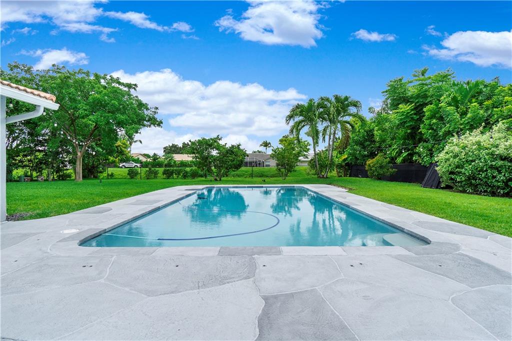 Amazing!! Amazing!! 5/2 on water, oversized pool plus situated on a 10,350 square foot lot in Ramblewood! Impact glass and doors, remodeled kitchen and baths, updated flooring and great split floor plan for easy living. This home is model perfect and all upgrades have been tastefully done. Large pool deck, covered patio with plenty of space and outdoor counter area is great for entertaining. The oversized kitchen has natural light from large windows, wood cabinets, coffee station and stainless appliances. Master bedroom overlooks the pool and water and opens to the patio. All A/C duct work was recently replaced and A/C is 5 years old, water heater 1.5 years old, brand new pool pump that was converted to salt and new pool surface!!