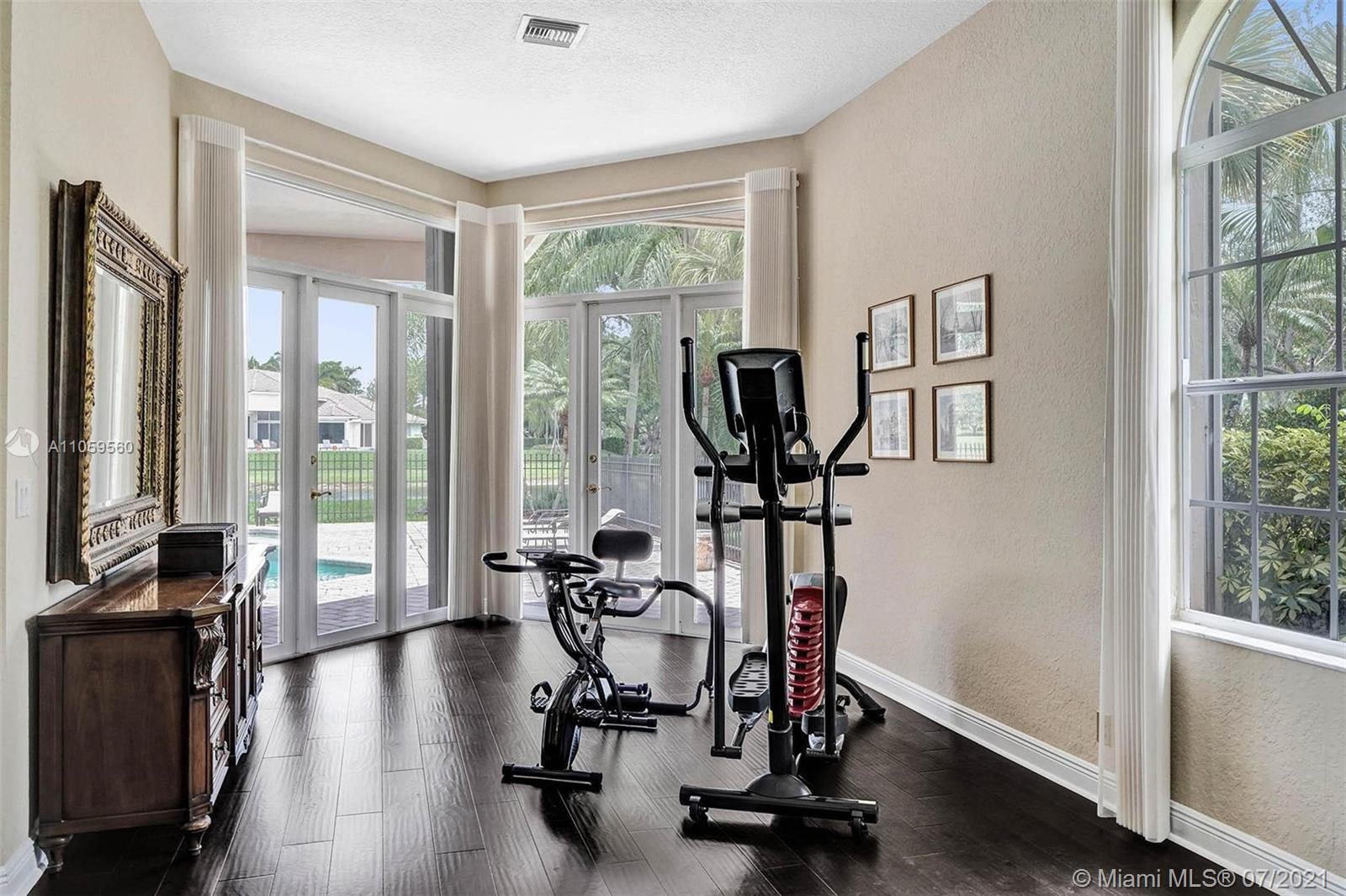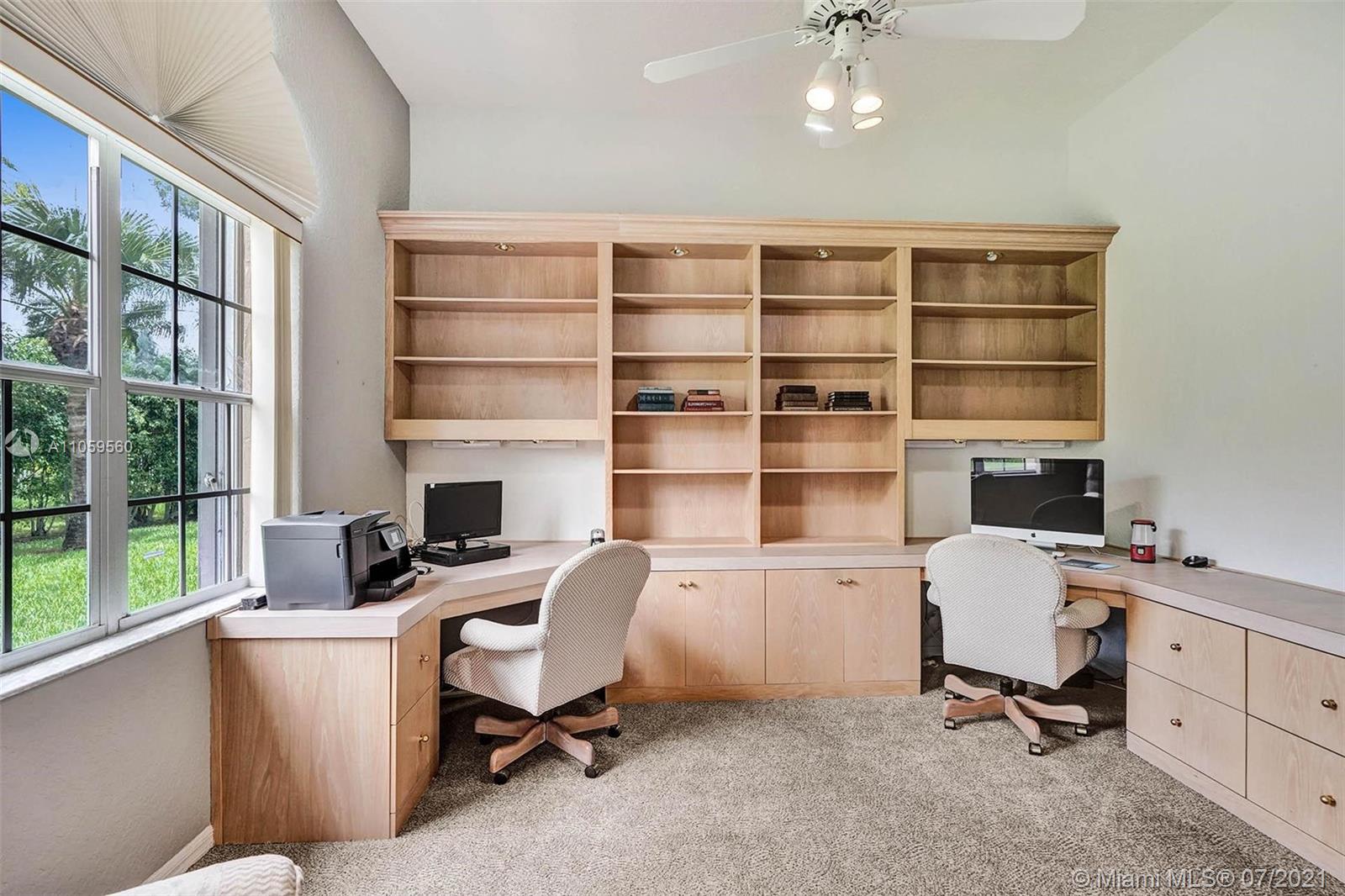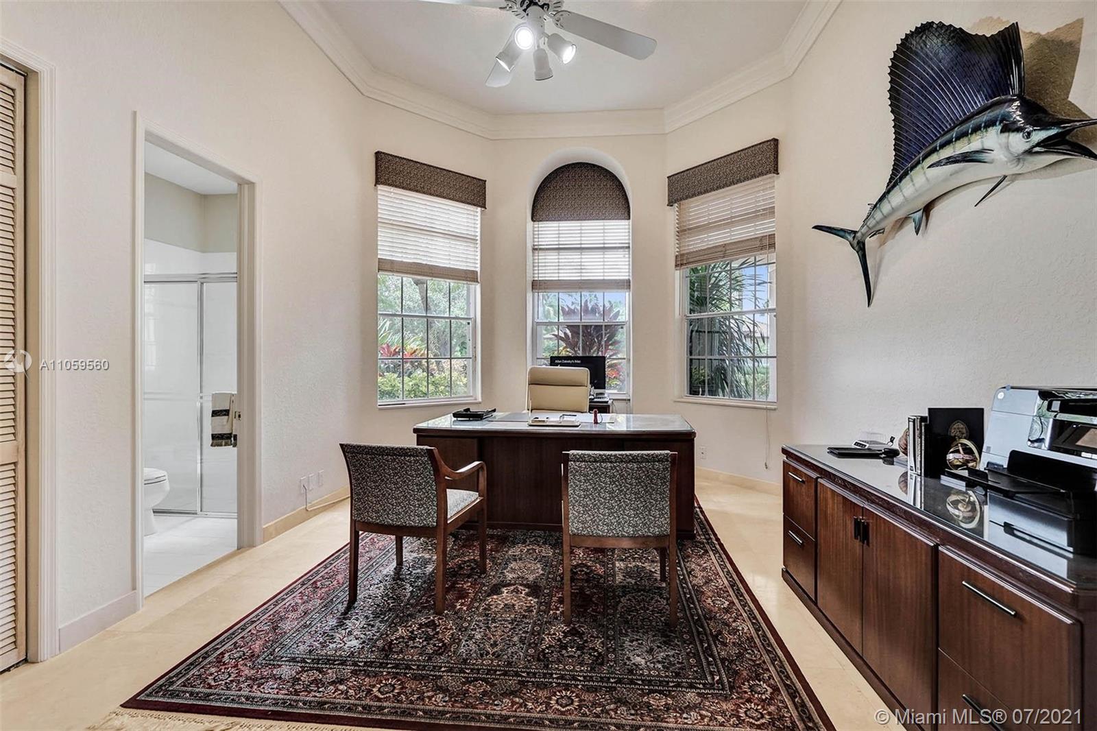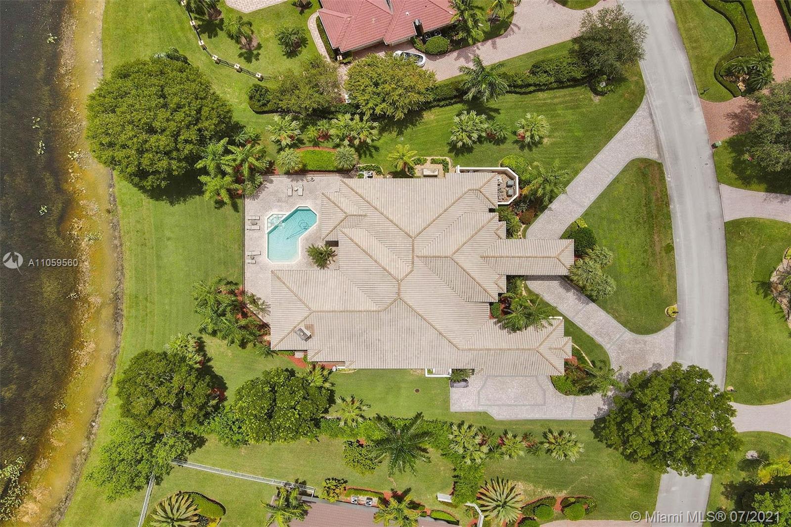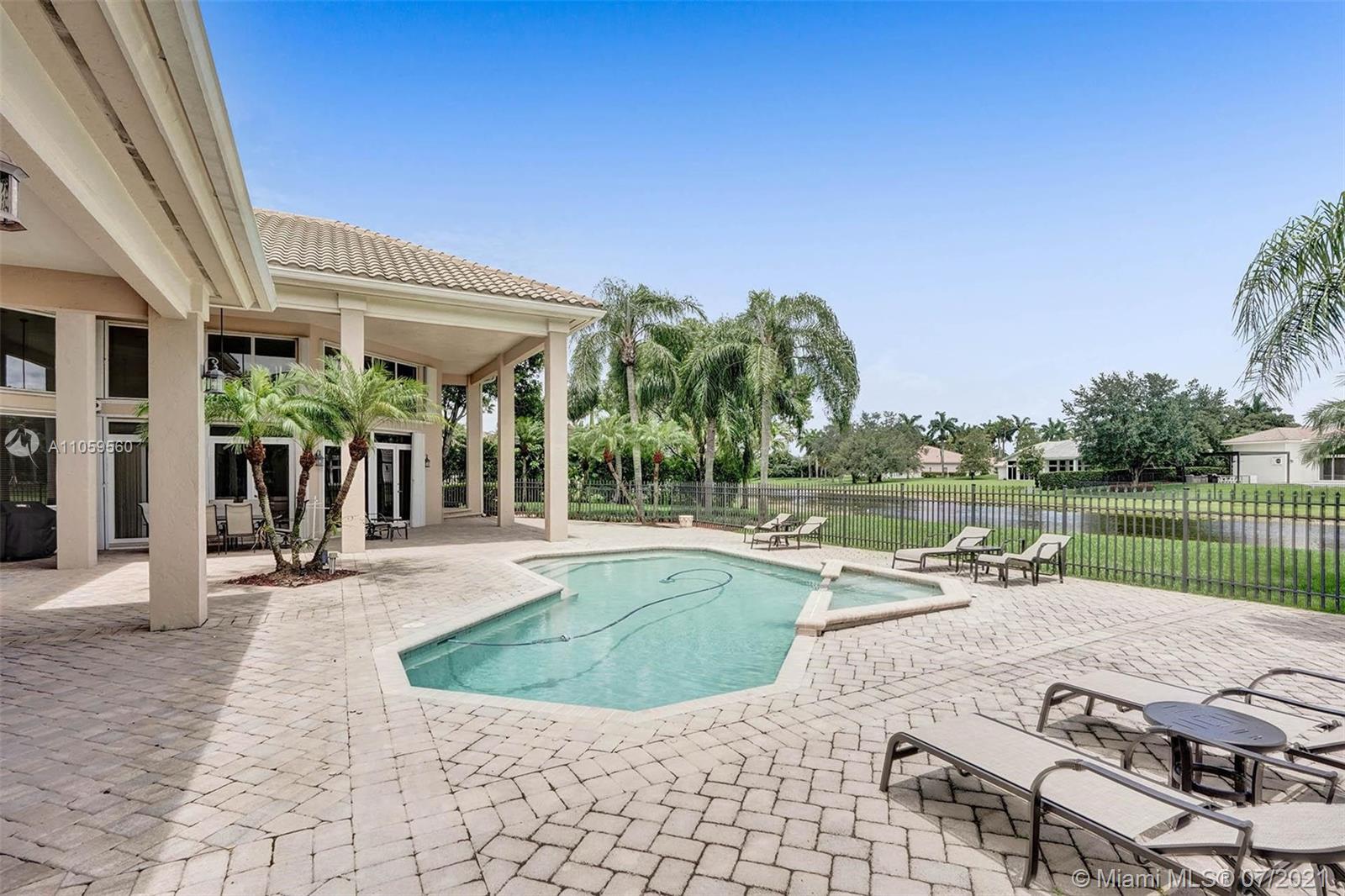 OPEN HOUSE SUNDAY 7/11 1-3. Tucked in the gated boutique community of Windmill Lake Estates. Grand 5 bed + office 5.5 bath pool estate home sitting on over an acre lot*expansive paver circular driveway*porte-cochere. Private water views from your custom pool/spa*fully fenced*lushly landscaped, pavers, baby fence. Marble throughout living areas*Soaring ceilings*Extensive crown moldings*Gourmet wood kitchen with island*breakfast bar*custom cabinetry*granite countertops* SS appliances*Double ovens*Oversized refrigerator*expansive butler pantry w/ fridge. Master suite w/ wood floors, Sitting room*custom master bath dual vanities*jacuzzi tub*marble flooring.Office with own full bath. Full accordion/rolladen protection. Full house generator. Side entry 3 car garage. New pool heater 2021