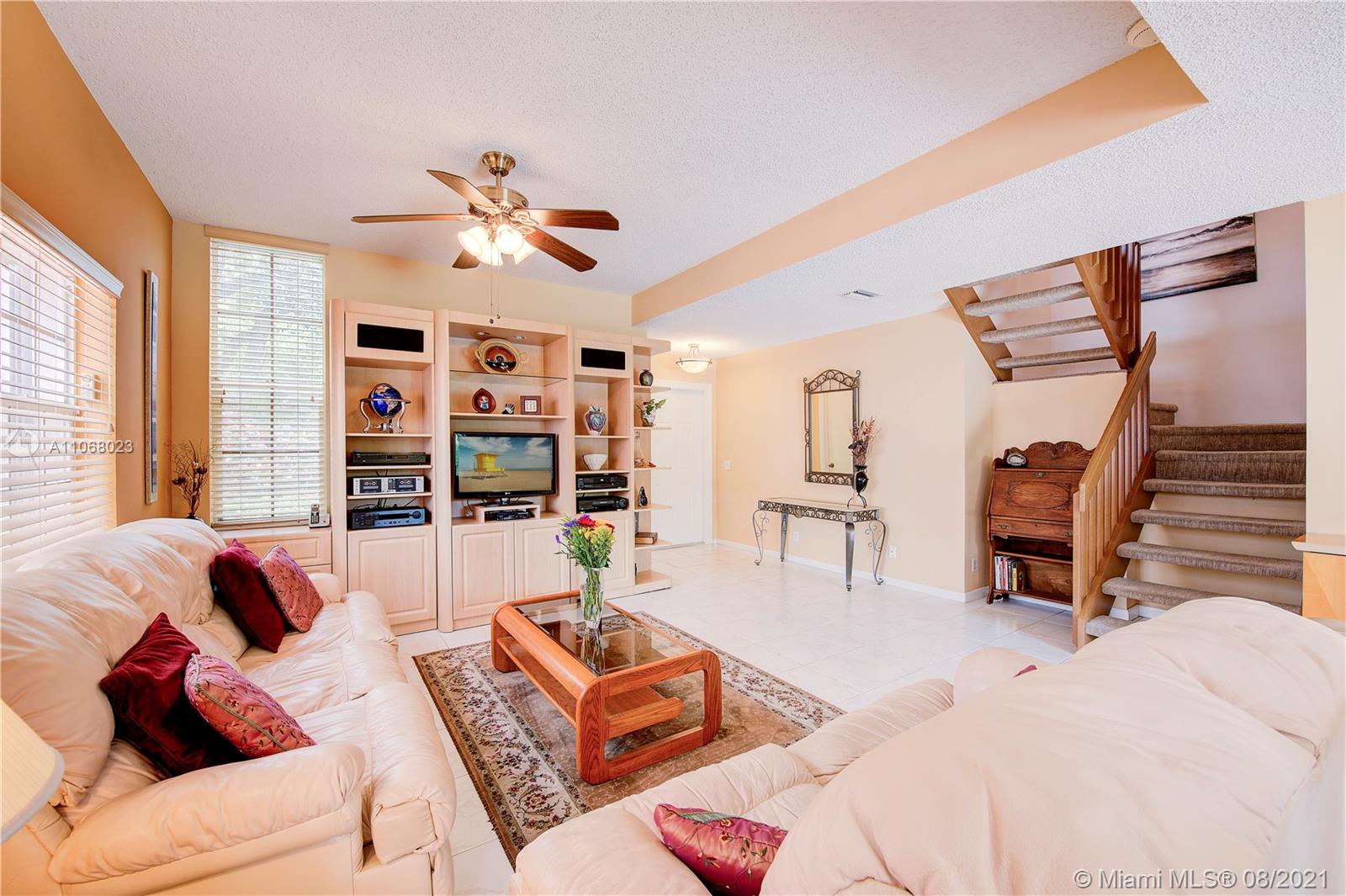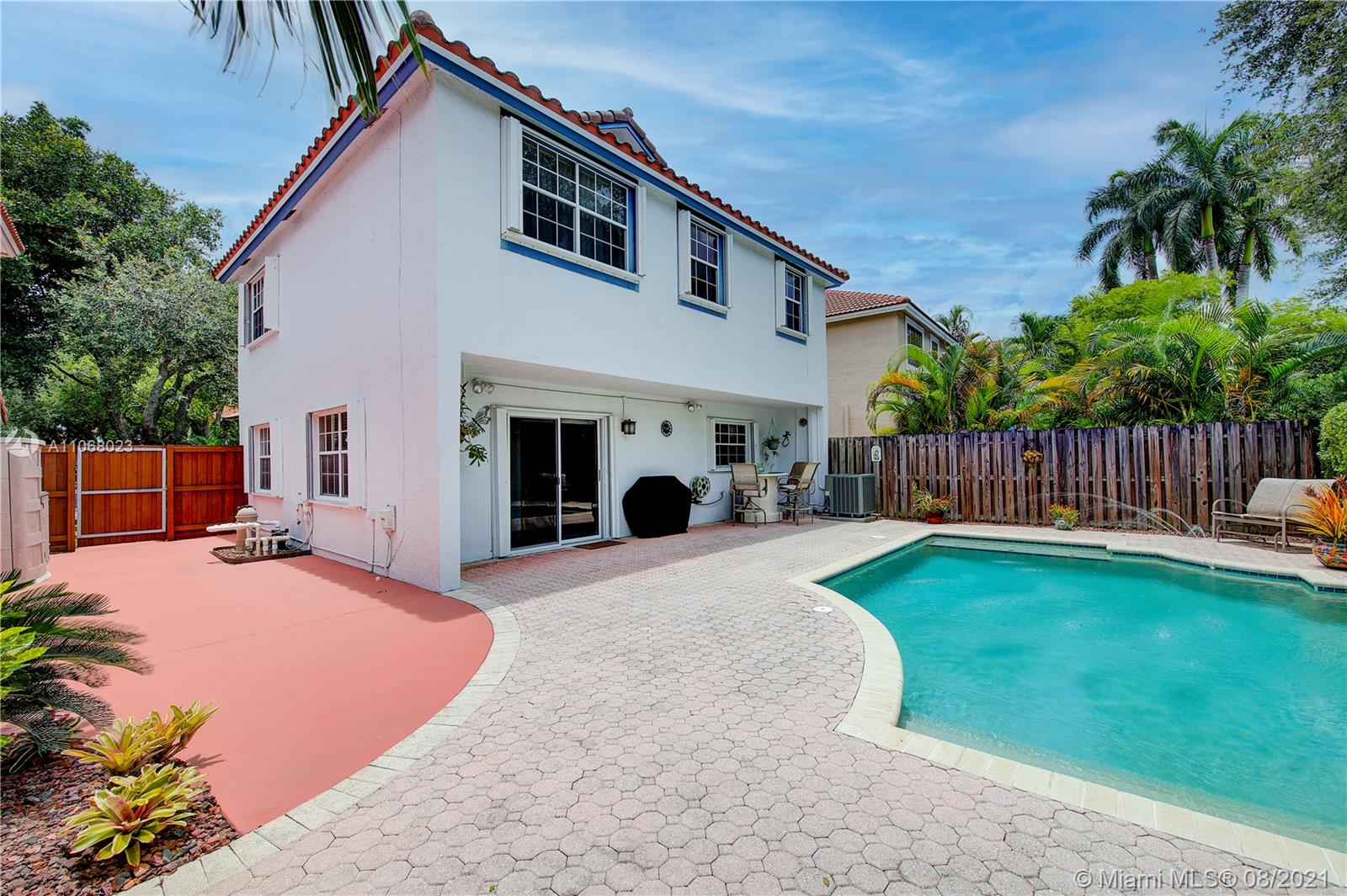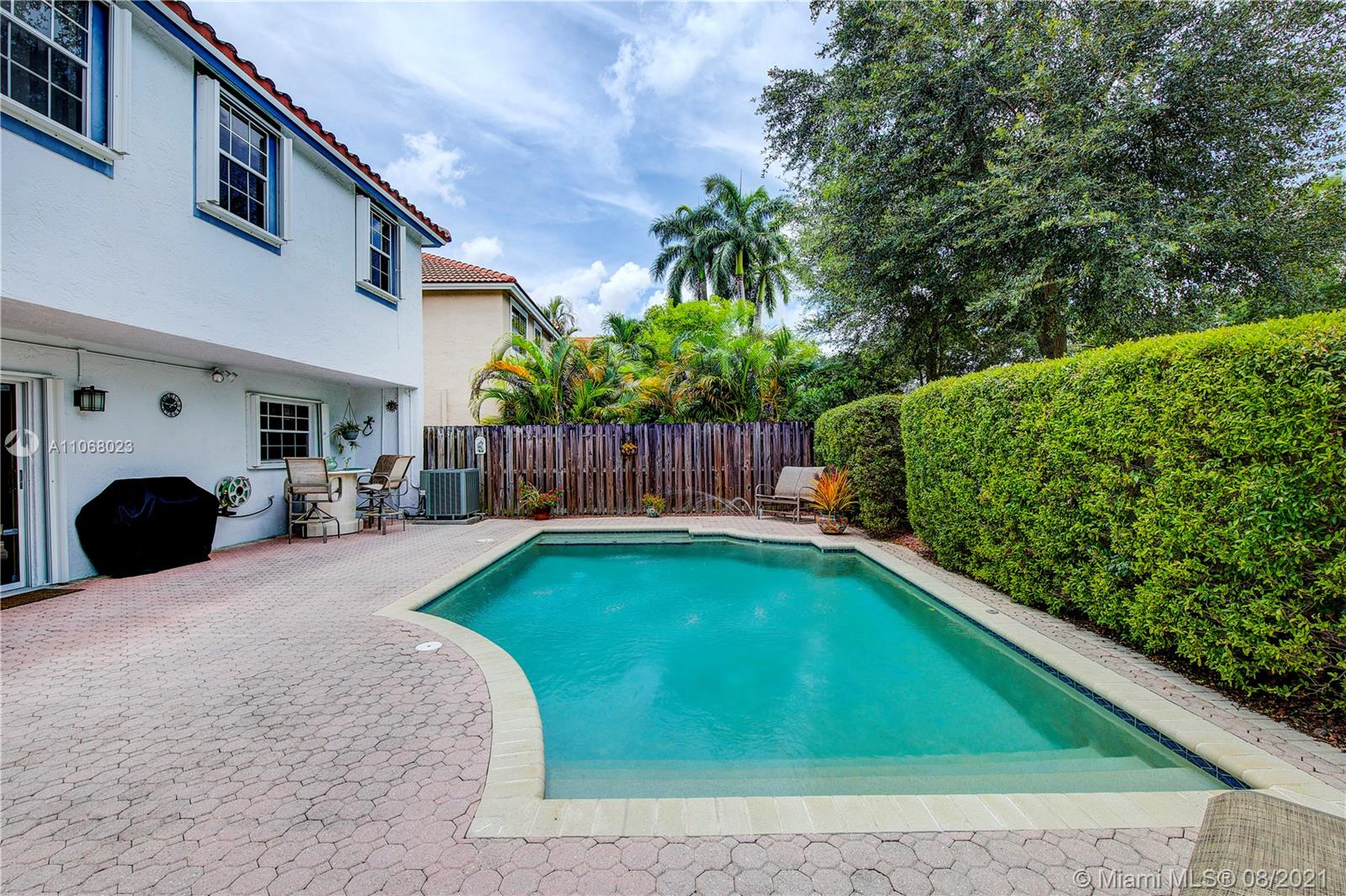 Don't miss this beauty in highly sought after Ventana @ Jacaranda. Two-story. 3/2.5, saltwater pool home w/garage. Bonus loft/possible 4th bedroom. Large open living/dining w/view of inviting pool & backyard. Renovated kitchen features wood cabinetry, granite counters & SS appliances. Spacious primary has 2 walk-in closets & bath w/wood vanity & granite top, 2 sinks & combo Roman tub/shower. Quartzite counters in 2nd bath. Polybutylene plumbing re-piped w/copper & 80-gallon water heater ensures endless hot showers. Impact garage & front door + accordian shutters throughout. Lots of closets/storage. Low HOA fee covers front lawn mowing, tree trimming & more. Located near Central Park, Plantation Promenade, Viscaya Square & Plantation Walk, a new mixed-use development. Close to highways.