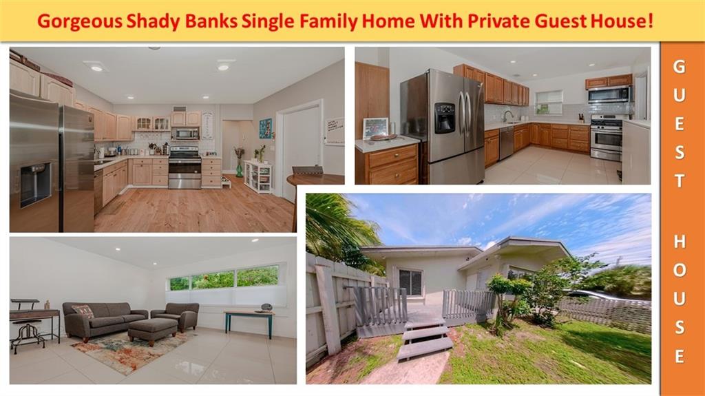 Amazing Find! Gorgeous Updated Shady Banks 3 Bedroom 1 Bath Single Family Home + Attached 2 Bedroom 1 1/2 Guest House With Full Kitchen, Carport & Oversized Courtyard With Plenty of Space For RV Or Boat. Both Kitchens Have Beautiful Stainless Steel Appliances & Quartz Counter Tops. Each Side Has Separate Privacy Fences & Entrances. Perfect For Air Bnb/Mother In Law Suite/Annual Rental. Shady Banks is Centrally Located Only Minutes To the Airport, I-95 & Las Olas. It Offers An Active Local Park, Outdoor Gym, Sports Area, Waterfront Nature Preserve & Walking Trail. This is A Must See!