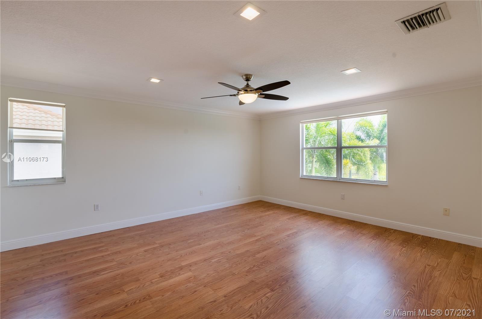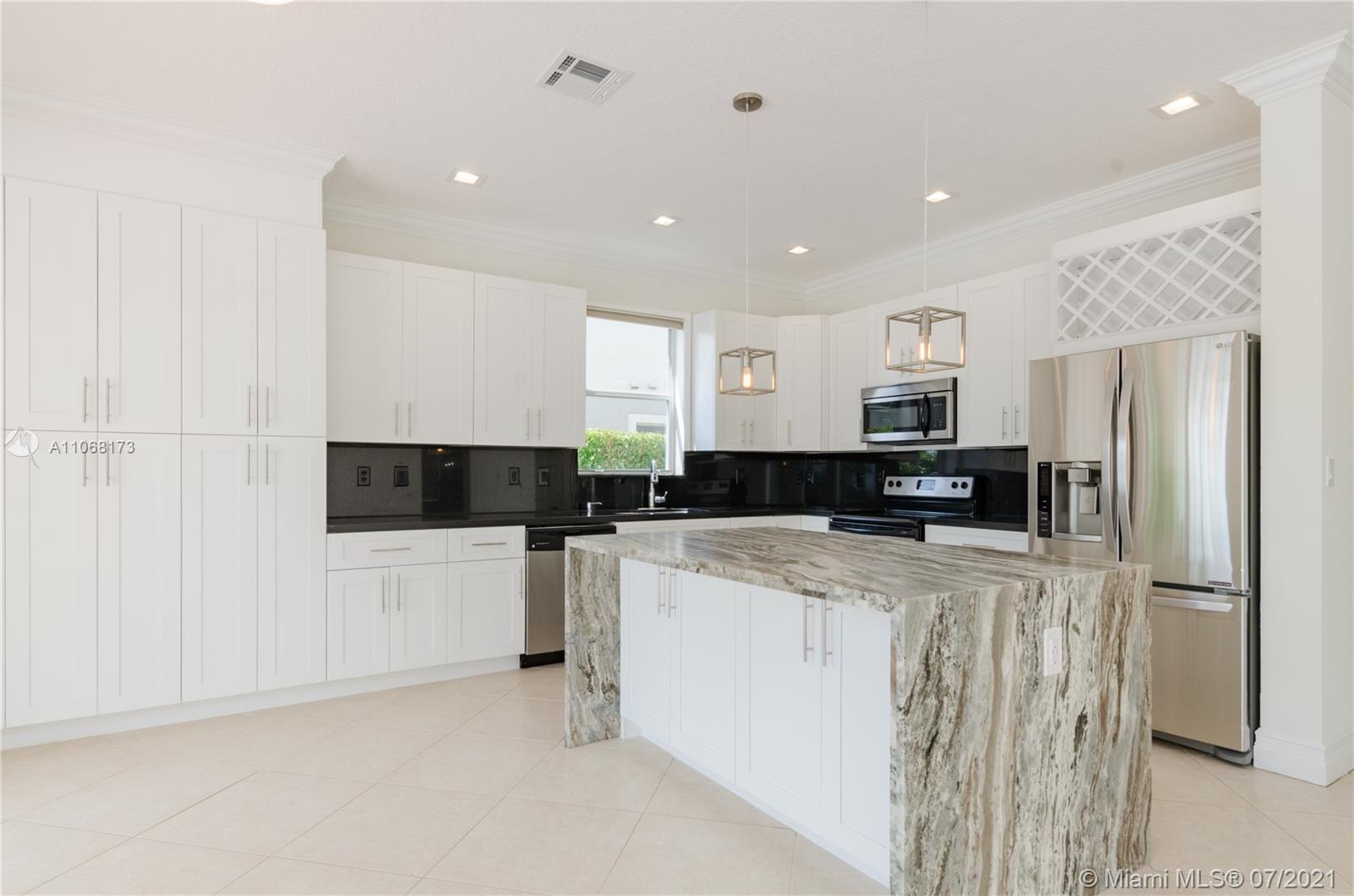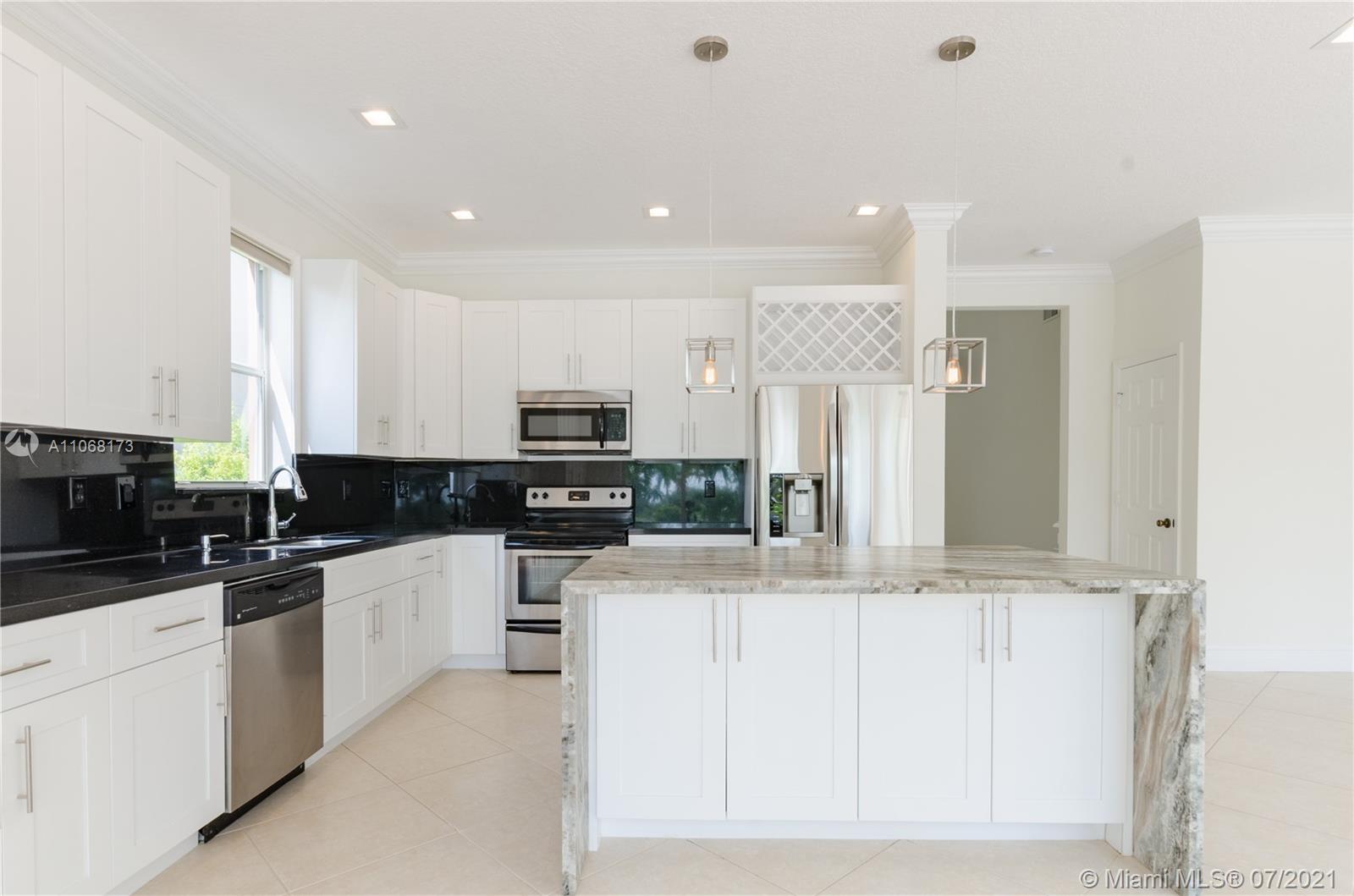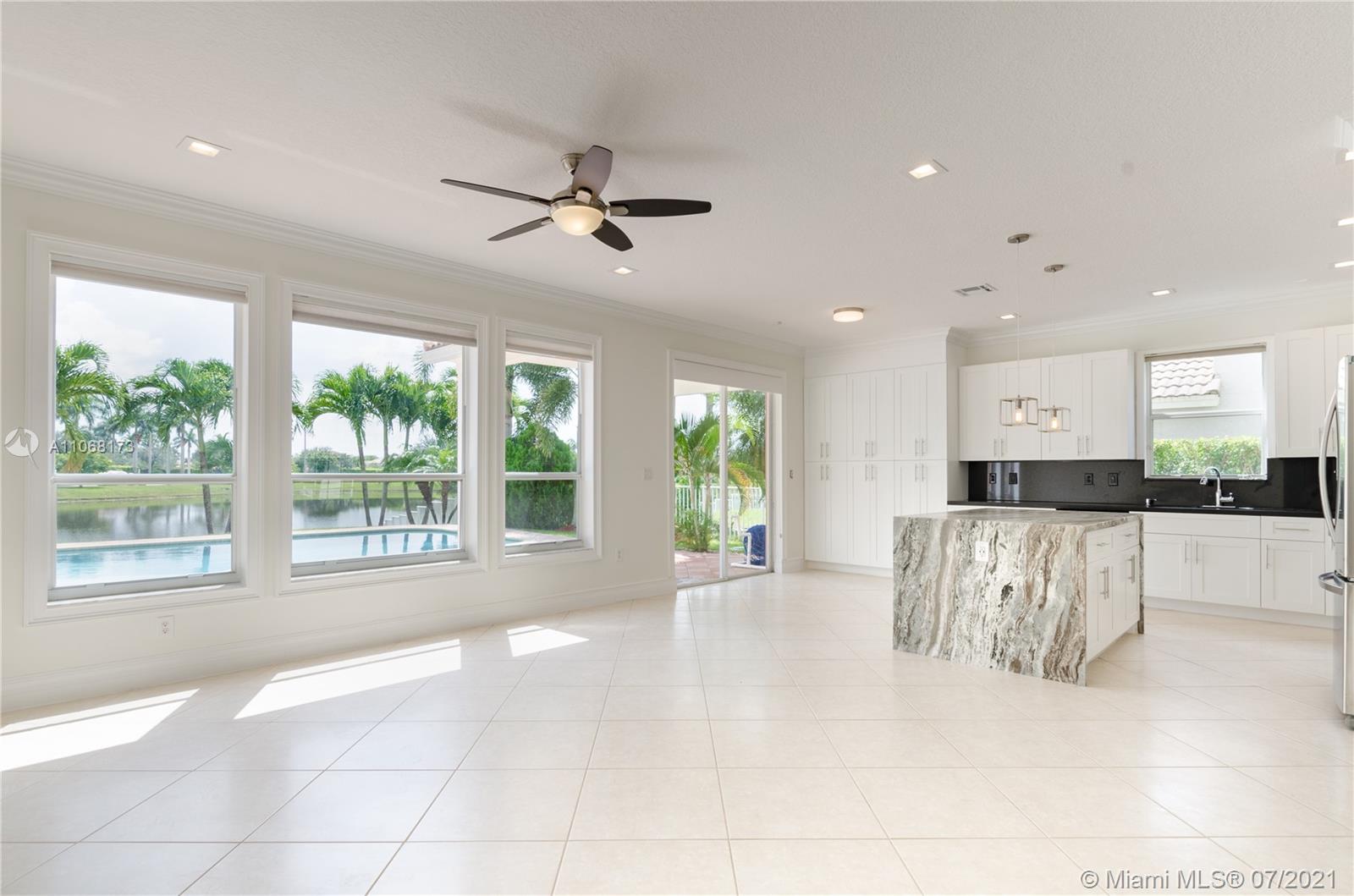 **Gorgeous Esplanade Model** The unobstructed lake view will impress you as soon as you step in. Beautiful house, recently remodeled in 2019, very comfortable layout, vaulted ceilings, lots of light, bright and modern: 1 bed and full bath downstairs. All bathrooms were redone, new kitchen cabinets, new Led lights, new light fixtures, ceiling popcorn removed. Customized drapes and blinds. Customized kitchen island, a lot of cabinets with multiple storage options. Accordion shutters throughout, fenced back yard, 2018 A/C unit, natural gas stove & water heater. Oversized pool with net protection.Great amenities and Resort Style Club House. Tenants left last week, house is clean and empty, ready for a new family!! Call for more details.