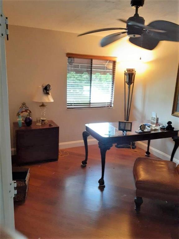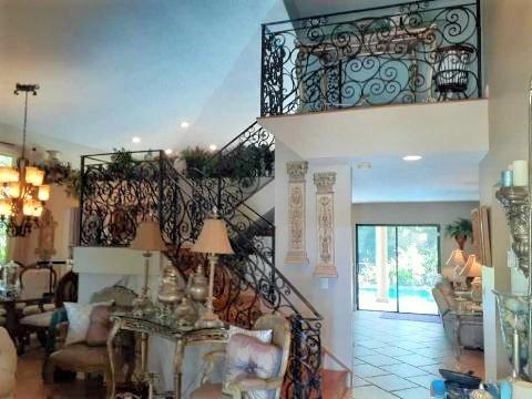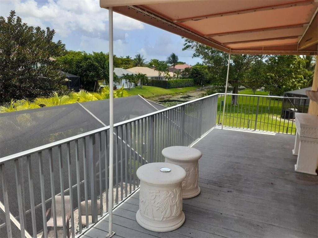 A spacious entertainer’s paradise with nearly 2,500 square feet of living space, a family room/library and a pool with a screened-in patio. The nicely designed layout features high ceilings, designer touches, custom ornate wrought iron and an updated kitchen with granite countertops. The master bedroom usptairs has an ensuite bathroom, his-and-her closets and a large balcony. There are 2 other bedrooms and 1 full bath upstairs and 1 bedroom downstairs with a full bath. The home is in a quiet cul-de-sac on a canal with a fenced-in yard and pool. Low maintenance, $300 per year. Within walking distance to A-rated Park Springs Elementary School.