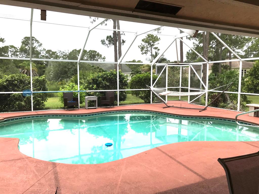 The best priced SFH in the Acreage! 5 BE, 4 full BA, pool & 4 car garage on a paved road! Open kitchen with wood cabinets, SS appliances & granite countertop*Spacious family room with wood working fireplace*Split floor plan-MA suite with pool access,walk-in-closet,big BA with double sinks,roman tub, separate shower*Big second BE with elegant bay window & newly renovated private BA-can be another MA BE.*3 more bedrooms & 2 upgraded BA on other side of the house*High vaulted ceiling*Formal dining area* Living room with french door leading to a covered patio and screened pool area perfect for entertainment*Pool heated by solar panels*Dual AC zoning (2014 & 2015)*Newer garage doors*Hurricane panels*Fully fenced*Fruit trees*Great location-walking distance to Citrus Grove Park*What a steal!