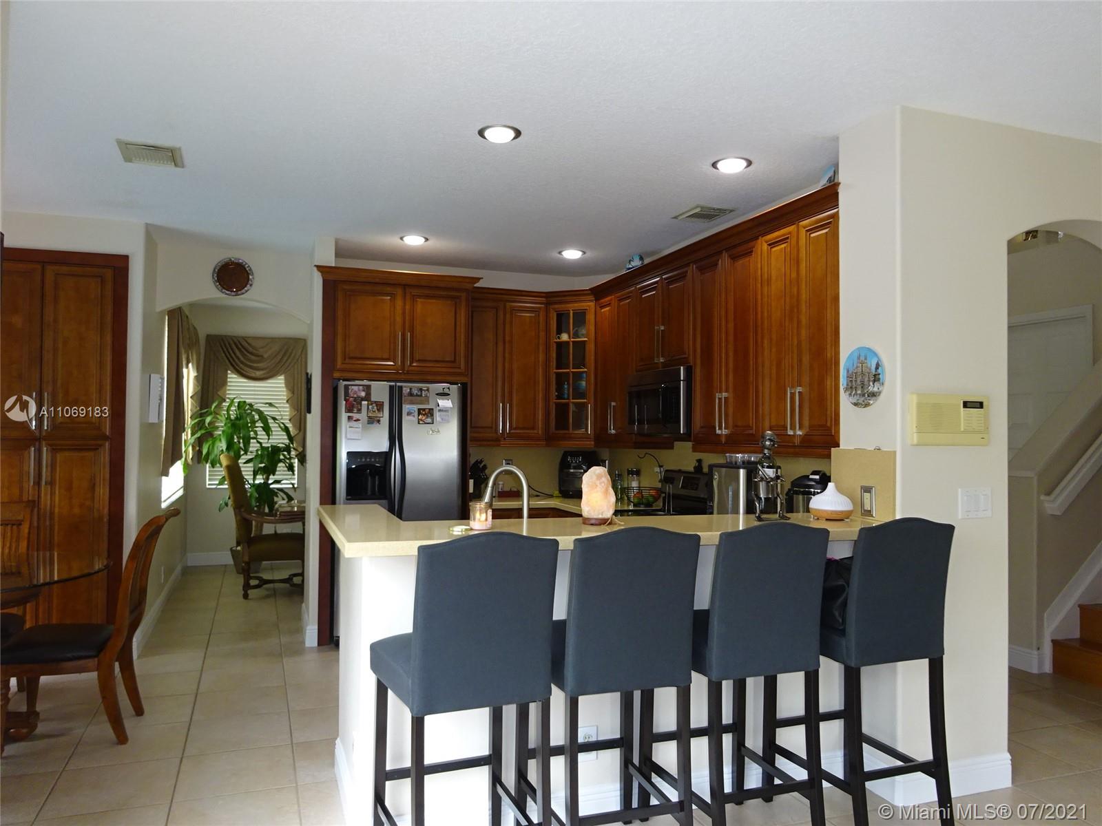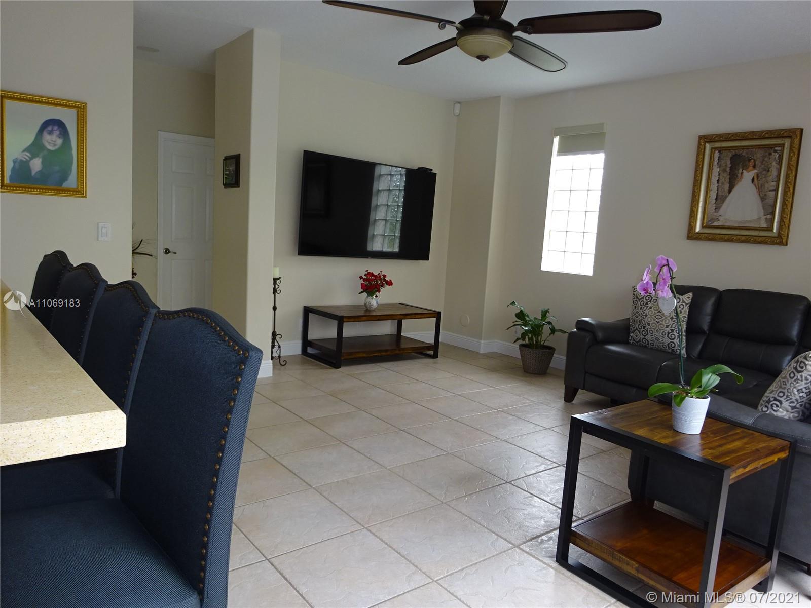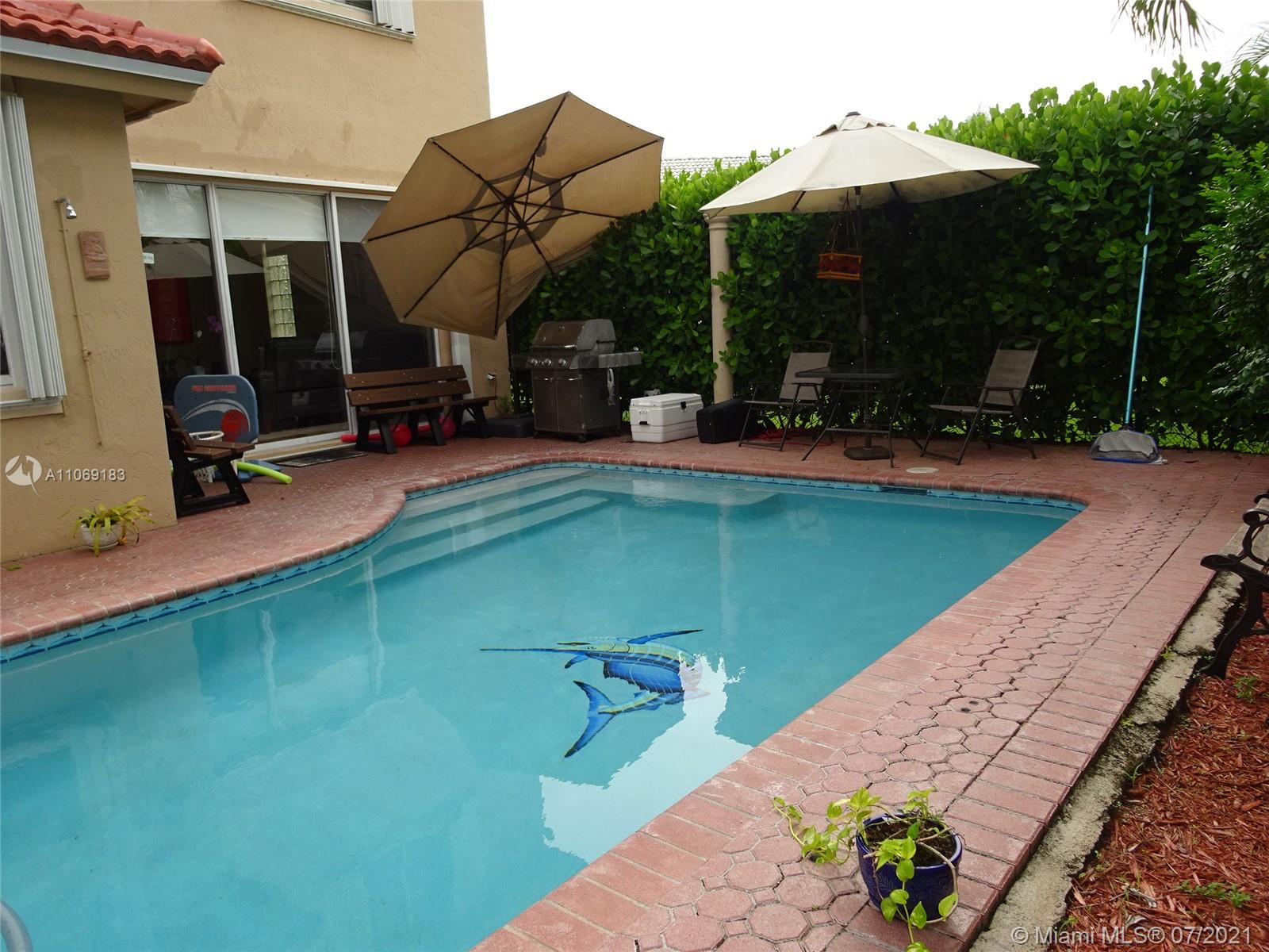 Stunning 2 story salt water Pool Home! This 3 bed 2 1/2bath with a loft can be used as a 4th bedroom, has been completely remodeled. Beautiful spacious kitchen with quartz countertops, pull out drawers, gorgeous bathrooms, brand new tile roof, Open concept, Volume ceilings, 2 car garage, new washer & dryer, accordion shutters on all windows and sliding doors, pool was resealed with diamond bright, ceramic tiles on the 1st floor and laminated floors on the second floor, gated community, A/C and water heater 1 year old, Great schools for kids, Close to shopping centers and more. Entertain family and friends by the pool area. Family fun-time. This is truly Florida living. Come see for yourself! Gate code 271 See you soon!