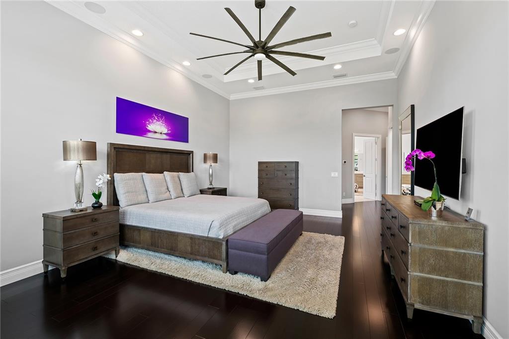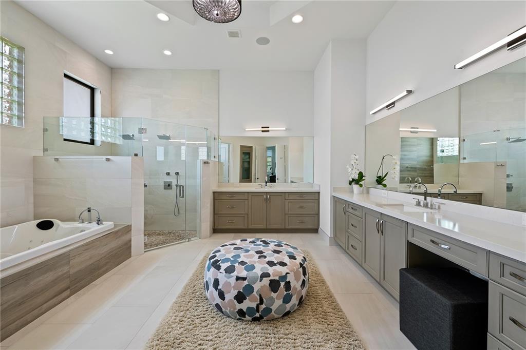 Custom-built new construction in 2017. Mint condition and contemporary interiors! Offers 4 Bedrooms, 5.5 Baths, Formal Office and Media Room. Over 5,000 SF of living area situated on just under an acre. Triple split floor plan/ all guest bedrooms are ensuite. 3 Car garage. Plenty of room to build your dream pool. Porcelain large format tile in main living areas, top of the line gourmet kitchen -All Miele appliances, 2 sinks, induction cooktop, 2 dishwashers, steamer, speed cooker, and microwave. Fabulous summer kitchen with grill and fryer. Whole house gas generator. Formal dining room and wet bar with wine cooler. Electric shades in the main living area and Master bedroom. No HOA.