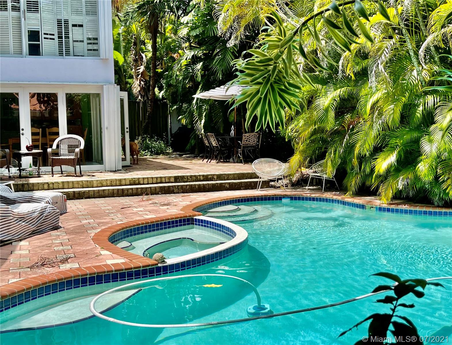 SINGLE FAMILY CORNER HOUSE ON LUSH 6900 SQ FT LOT IN GATED COMMUNITY OF 5 HOMES. BEAUTIFUL LARGE POOL AND PATIO, VAULTED CEILINGS, FIREPLACE. VERY LIGHT, OPEN YET COMPLETELY PRIVATE BECAUSE OF THE WELL THOUGHT OUT SITE PLAN AND TALL PRIVACY WALL. EACH BEDROOM HAS A FULL BATH. ROOF IS 2008 A.C. 2020. HIGHLY COVETED BEST NORTH COCONUT GROVE LOCATION. LESS THAN A MILE TO BISCAYNE BAY, WATERSPORTS, MONTY TRAINER'S, BIKE RIDE TO HOBIE BEACH, MINUTES TO BRICKELL AND LESS THAN A 20 MINUTE DRIVE TO M.I.A. NEEDS UPDATING AND TLC AND IT'S PRICED WITH THAT IN MIND. EXCELLENT “BONES” AND LAYOUT, RENOVATE AND END UP WITH A VERY COOL, UNIQUELY MODERN POOL HOME WITH VERY SUBSTANTIAL "UP VALUE"! ENTER