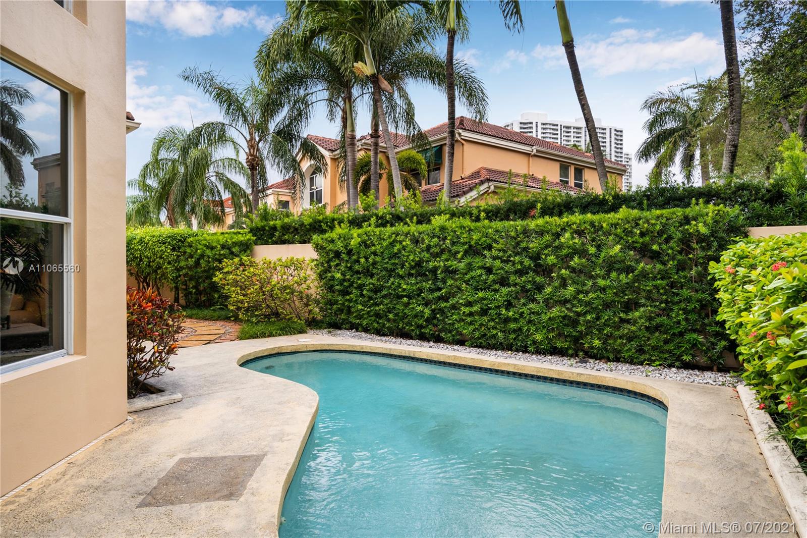 Beautiful 4/3 house with Private Pool and Private Patio. Located in Private Community of Island Way in Aventura. House is greatly maintained. Original owner used it as a vacation home. Flooring is new. Bedroom and Bath located on the 1st floor and 3 bedrooms on second floor. High ceilings and large windows. Breakfast area, official dinning and living room areas and TV room. Separate Laundry area - 2 spaces car garage + 2 spaces driveway parking. Minutes from Aventura mall, supermarkets, pharmacies and Aventura hospital. Security guard 24/7. Gym, Community pool and playground area. Enjoy a walk to the Waterways marina with community access. Pictures are renderings.