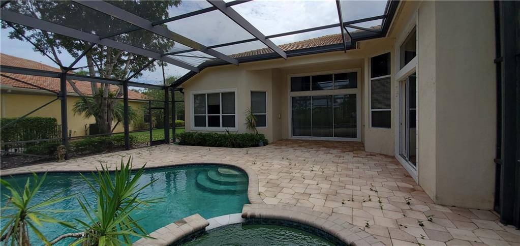 Beautifully maintained IBIS Gulf & Country Club community. This pool home over looks the gulf course in the back, and a circular driveway for ample parking, with an additional garage parking for your Gulf Cart. Your home has a front view of a waterway, and water feature. This 3 Bed room, 3 Bath room home is designed with a split floor plan. Other features includes high ceiling, spacious kitchen, family room combo, leading to the pool area. This is a setting for an enjoyable, relaxing, and entertainment. This is a must see.