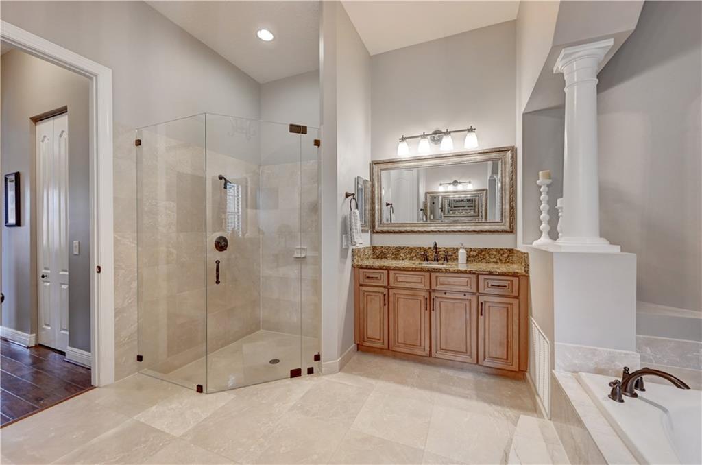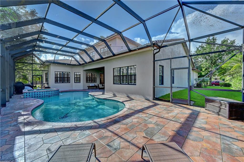 Beautiful one owner 5BR/4BA plus office/den and loft in Parkland Estates! Amazing kitchen w/36" refrigerator, 36" freezer, 2 dishwashers, cook top in center island, double wall oven, butler's pantry w/wine cooler and huge pantry. Extra storage room under stairs. Master suite on 1st floor with custom his & hers walk-in closets, whirlpool tub, frameless shower door and bidet. French doors. Plantation shutters. Screened & heated salt water chlorinated pool & spa. Fenced side yard (dog run). Gated community. HOA fee includes lawn/yard maintenance.