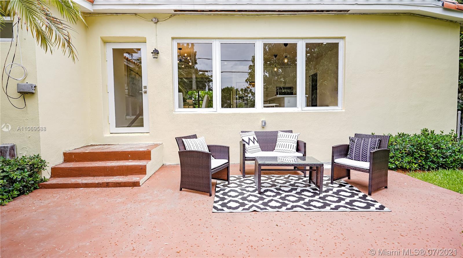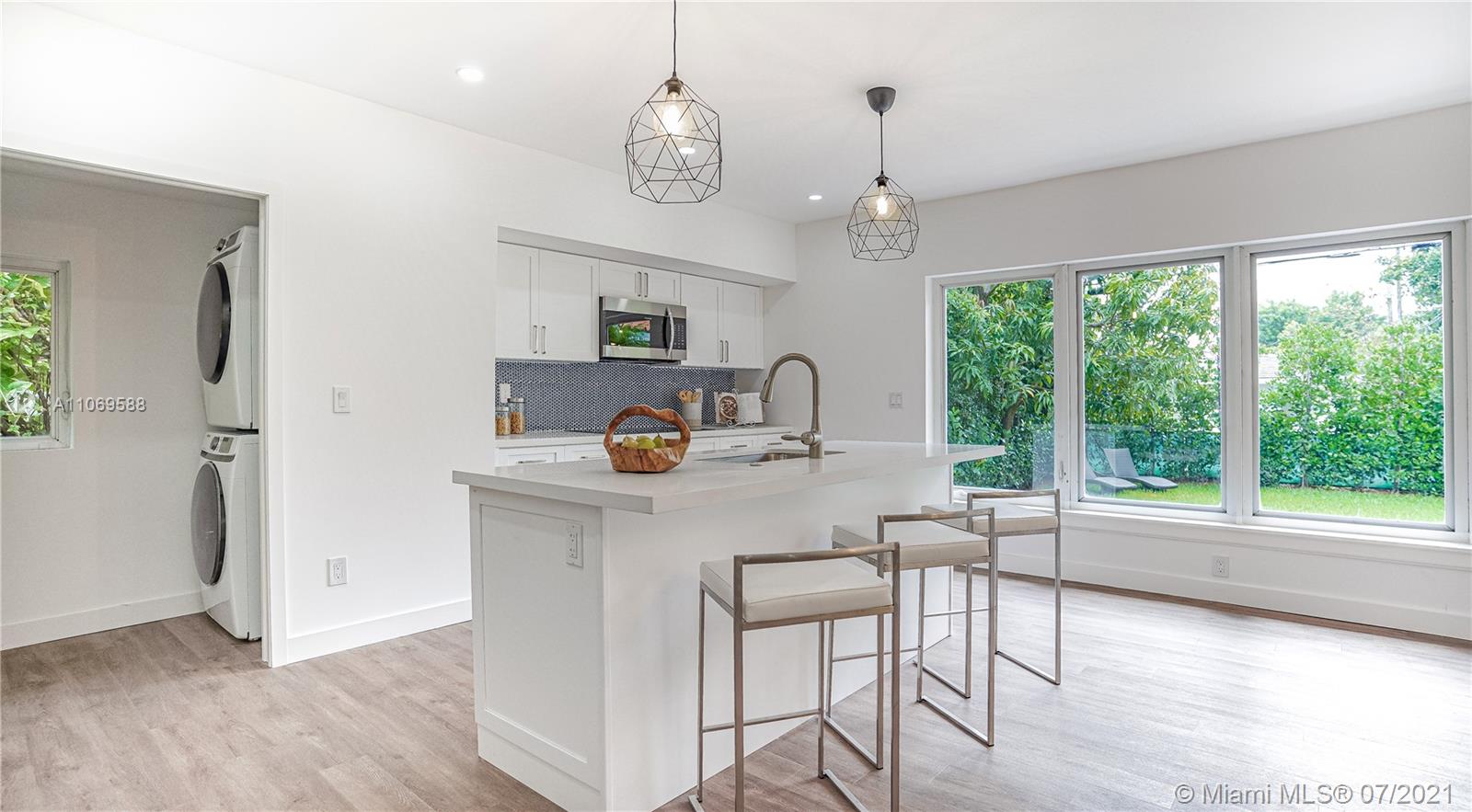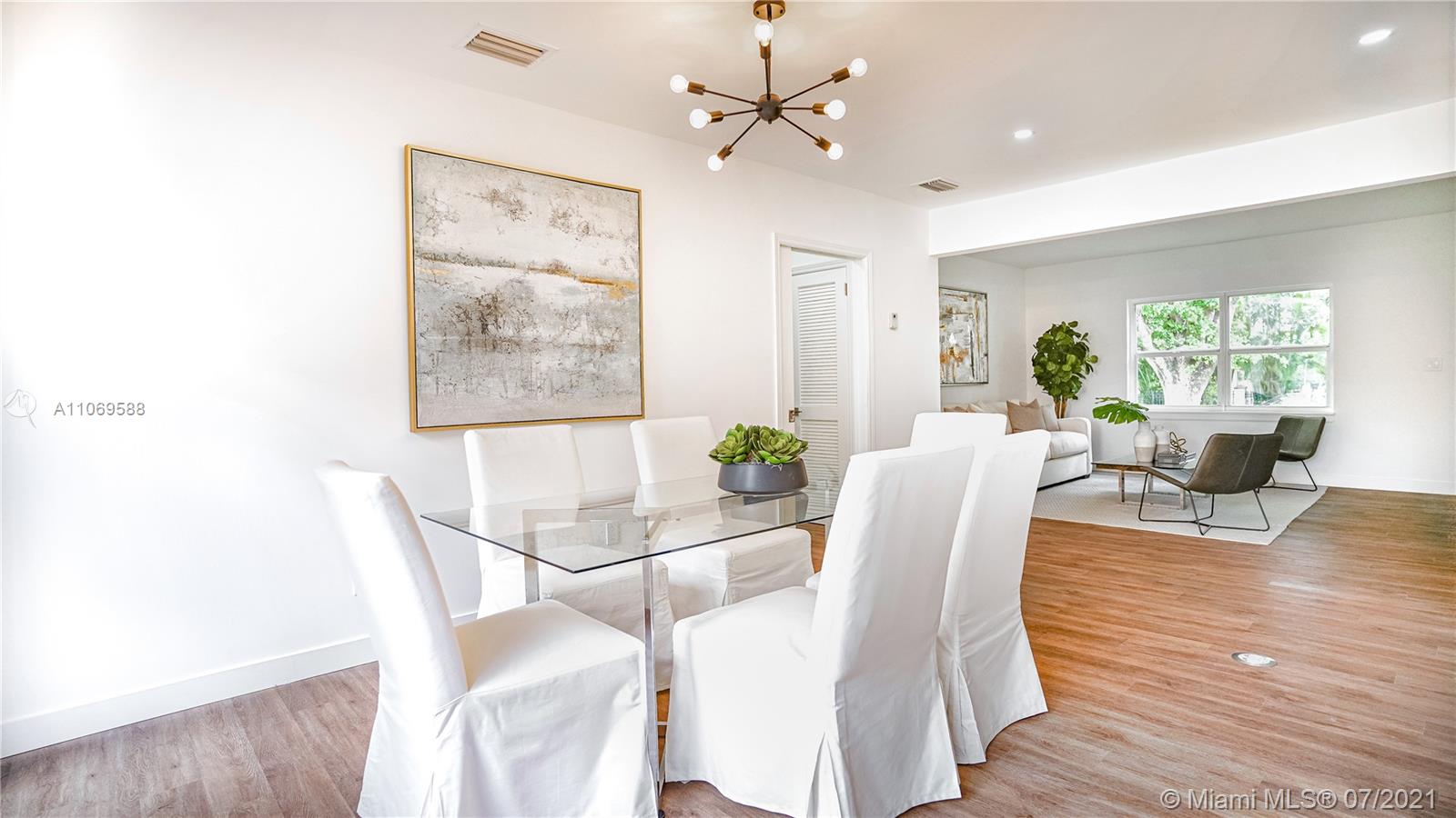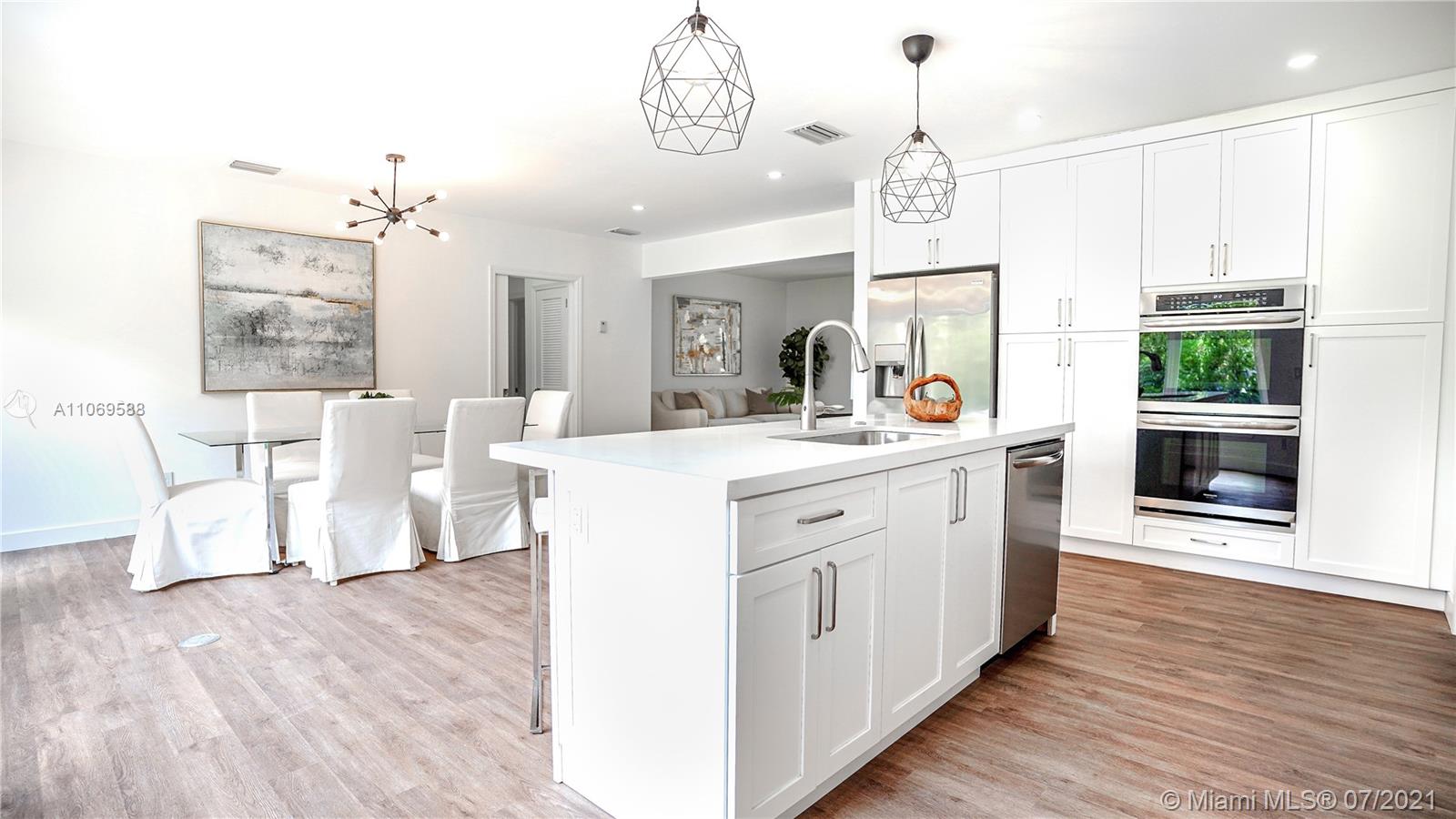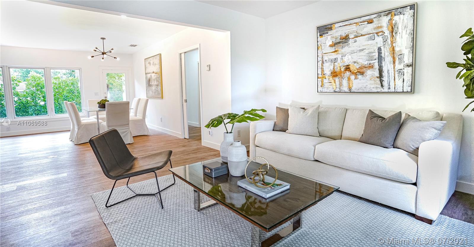 This beautiful, bright 3/2 house has been renovated to perfection and has been fully permitted by the city of CG.  Includes new lighting, plumbing, and electrical wiring. Featuring a spacious layout. Stainless steel appliances from the Frigidaire Gallery line (double wall ovens, microwave, stove, dishwasher, washer and dryer). Contemporary kitchen features wood cabinets, quartz countertops, touchless faucet, and more. The doors and windows are impact-resistant. Luxury vinyl planks that look like wood. Ring video chime doorbell. There is a spacious backyard with a pergola, stair railings, a mango tree, and privacy trees, and it is big enough for a pool! (pool photo is virtual). Termite protection through August 2022. Don't miss out on this gorgeous home!