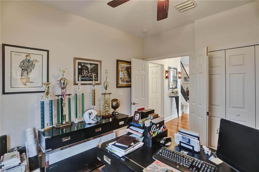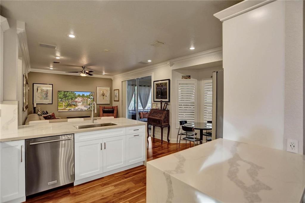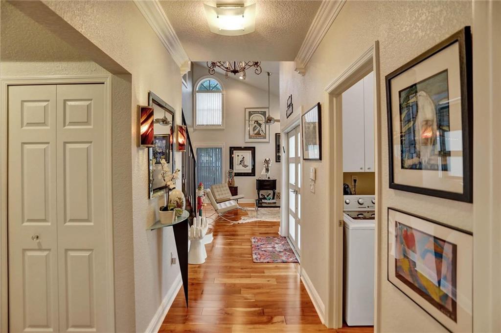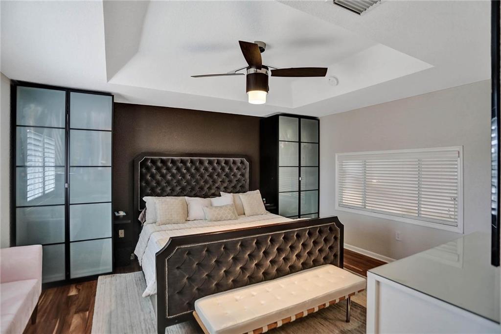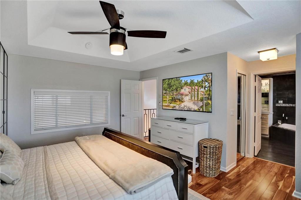 This expertly designed and remodeled home nestled on the premier corner lot in the coveted The Cove in Poinciana Parc, features 4 beds 3 baths and 2,124 of eclectic living space. Step inside the impact french doors on to the brilliant wood floors that are found throughout, a wrought iron staircase, and volume ceilings in the foyer and living room next to the formal dining room. The gourmet kitchen features white shaker cabinets with crown molding, stainless steel appliances, and majestic waterfall quartz countertops, a breakfast nook with impact bay windows overlooking the pool. Entertain in style or just relax in the covered and screened-in patio overlooking the heated pool with brick-pavers, custom bar and grill which is perfect for entertaining guests or your private enjoyment alike.