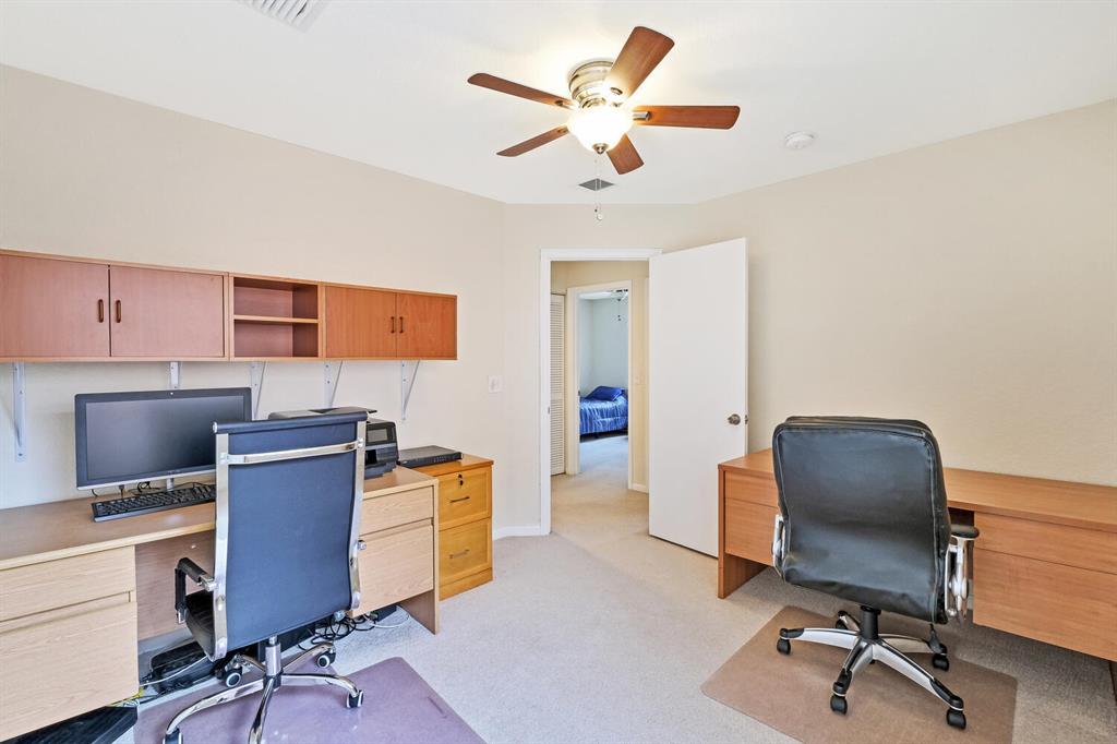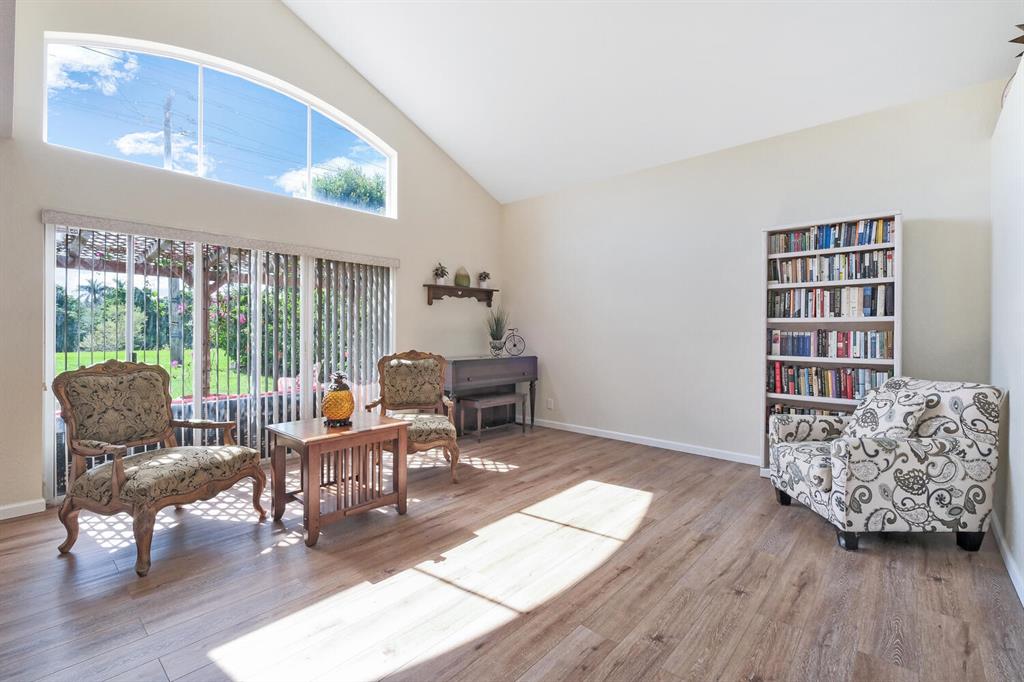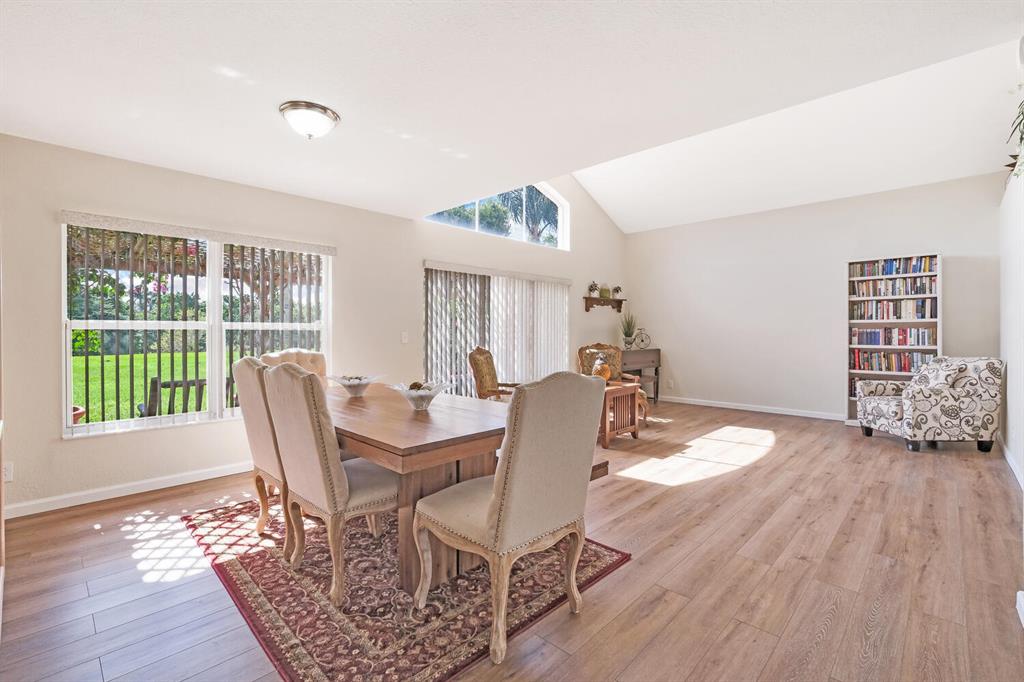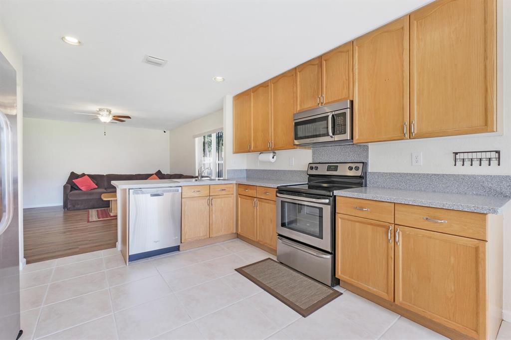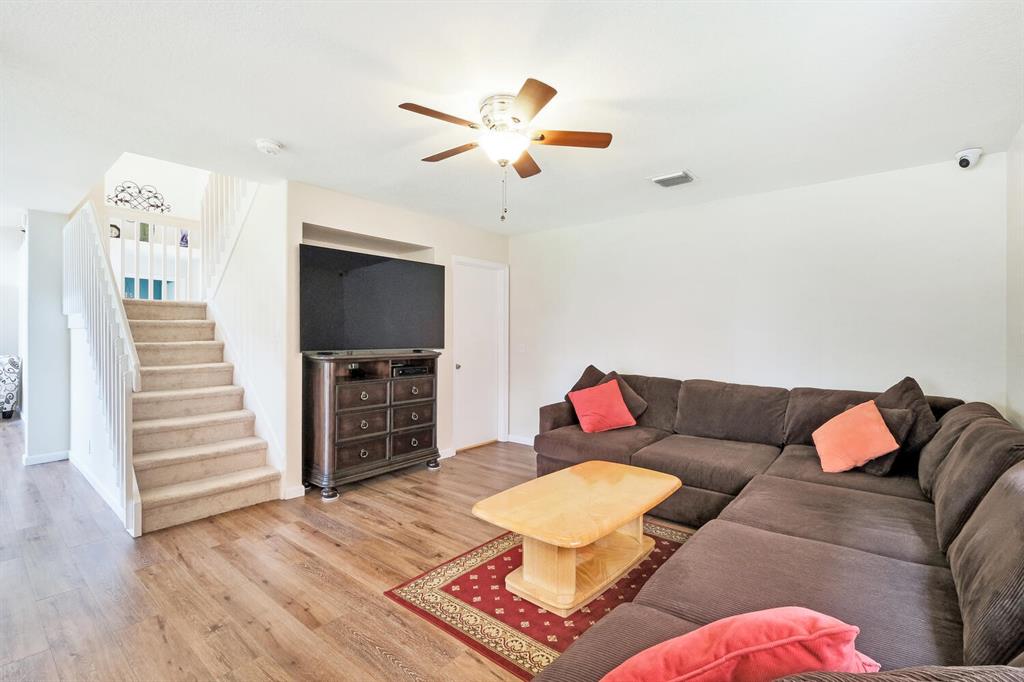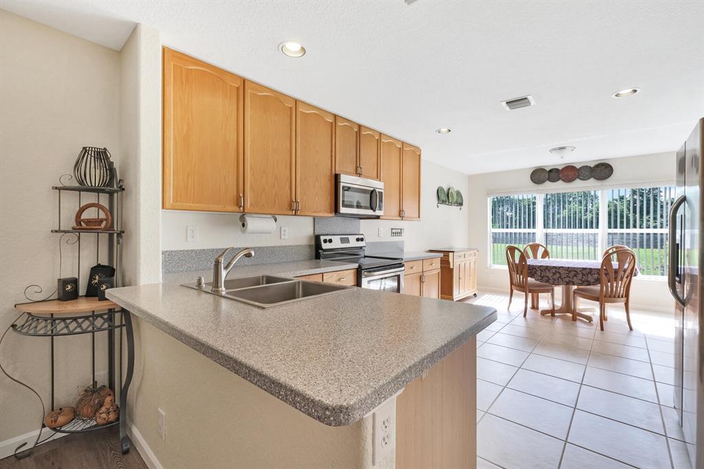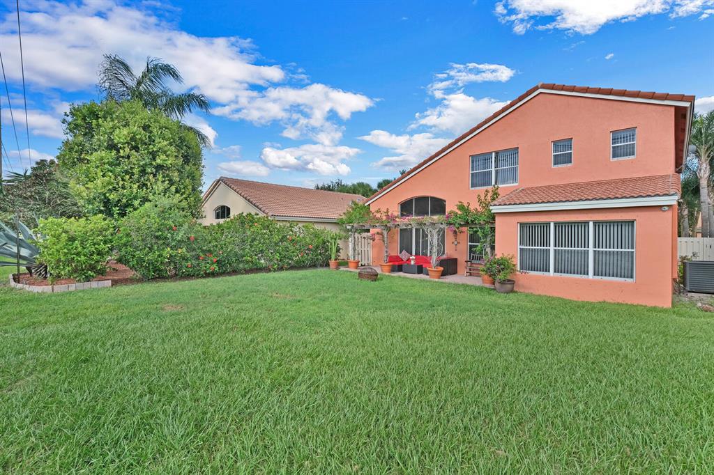 Beautifully maintained two-story home with hi-ceilings, with beautiful wood laminate floors and ceramic tile. modern kitchen, with breakfast area, stainless steel appliances and flux granite countertops, separate dining area off the living room.Bathrooms have large soaking tub, and jetted tub, and walk in shower. Spacious master bedroom with large walk-in closet. Backyard has private pagoda porch area Beautiful plants, overlooking canal and trees.Newly painted recently, and large two car garage.Neighborhood has Clubhouse, beautiful swimming pool