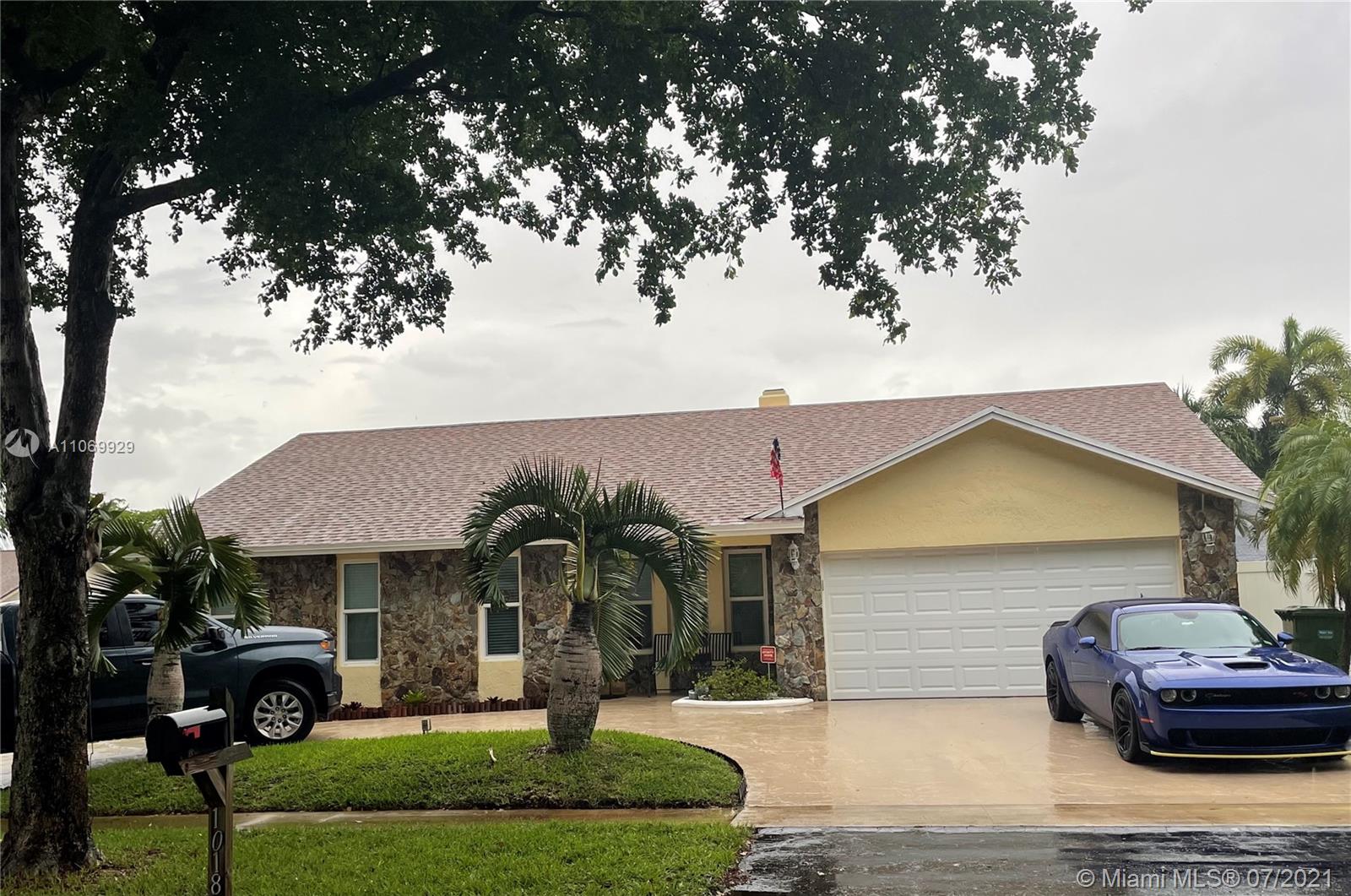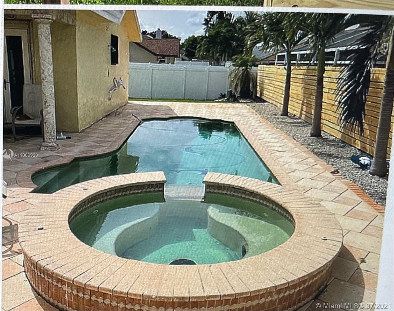 Must See this ready to move in Charming Corner House. 3/3 Big bedrooms and Spacious Bathrooms. Master bedroom with his and her closet, master bathroom with double sinks. Two of the bathrooms with heated lamps. Each Bedroom has its own Bathroom. New FLoors through the entire house. Beautiful Island Kitchen with Stainless Steel Appliances. Real Wood Burning Fireplace. This house has a formal dining room, family room, living room. It's so spacious. Now let's talk about the wonderful pool and jacuzzi - lovely backyard with paved stones as well as a grass area.