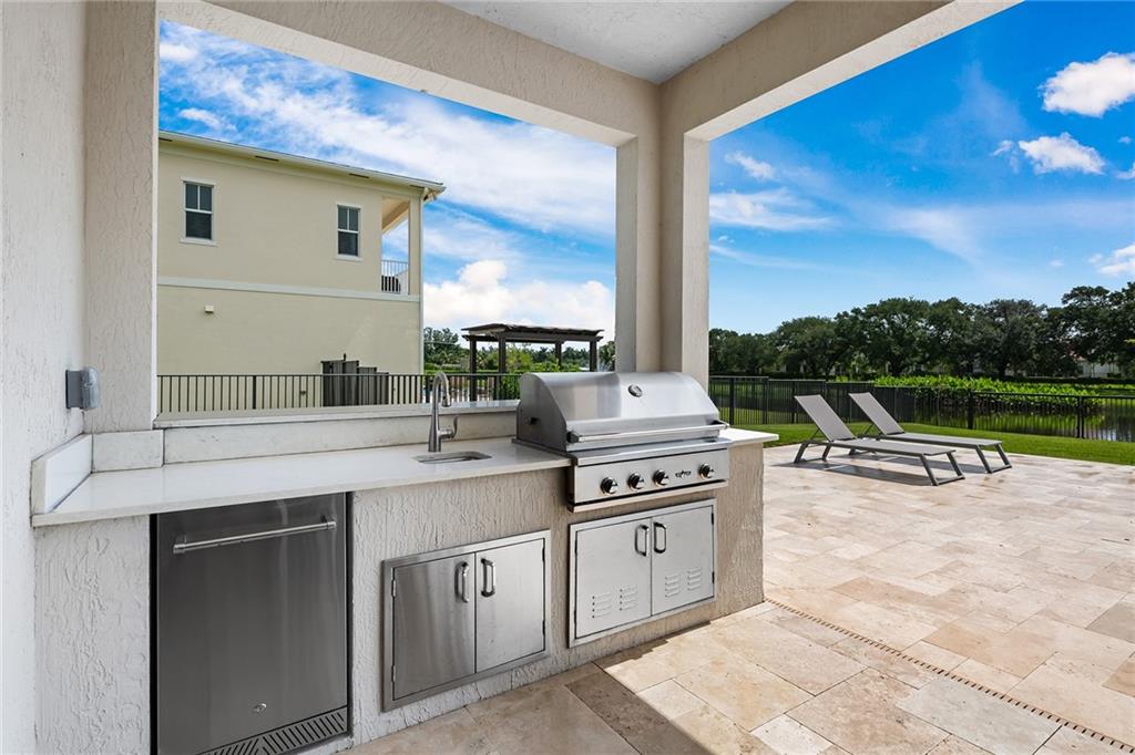 Why wait to build! Amazing Sedona model located on one of the best lots in Stillwater Shores with gorgeous sunrise views! 6 Bedrooms, 5 Full Baths, Loft, and 3 car garage with heated pool and spa with views of the lake in front and back! Completed in 2019 this 2-story home offers all the following: porcelain tile in main living area, wood floors in bedrooms, great room floorplan with all upgraded appliances: Subzero and Thermador, quartz countertops, amazing pantry, electric blinds, central vac system, smart home system, summer kitchen with gas grill, fenced yard,affinity designed pool with spa, impact windows and doors, custom closet cabinetry and much more! HOA includes lawn maintenance, community gate, and sprinkler system using lake water! Pleasure to show!