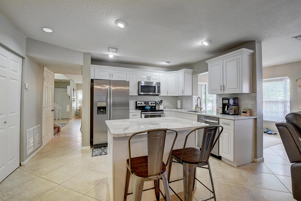 Don't miss out on this wonderful, lakefront 2-story, 4 bedroom / 2.5 bath West Boca home! Situated on a corner lot and the best location in the community. Steps away from the pool, playground, and other amenities with low HOA fees! Brand new tile roof 2018, new exterior paint 2019, new hot water heater 2020. Beautiful white kitchen with stainless steel appliances. Split floorplan with three guest bedrooms, large guest bathroom with double sinks and tub, and a large master bedroom with double sinks including a beautifully remodeled shower and large walk-in closet. No carpet here, tile on the first floor and wood floors on the second floor. Rare bonus screened in Florida room that opens to a large backyard with new travertine pavers and an oversized 2 car garage with built in storage.