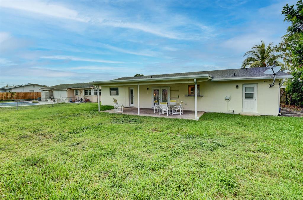 East Boca 4/2 home just minutes to beaches and Boca Downtown. Updates include roof 2019, brand new AC, electric panel and hot water replaced within past 6 yrs, kitchen appliances approx. 5 yrs., laminate flooring in main living area, kitchen updated approx. 10 yrs. ago and more. Enjoy the large fenced backyard and covered patio. Walking distance to downtown, shops and more.
