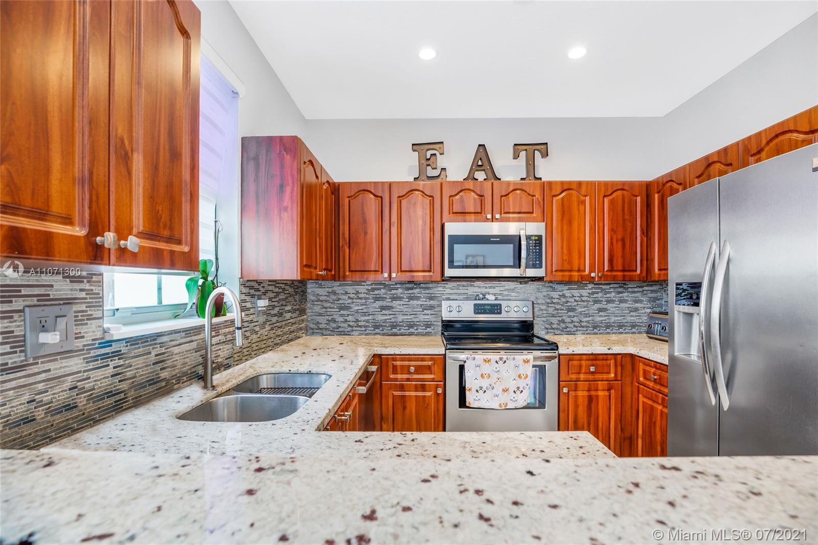 Great opportunity to live in a family community in Doral "Windward". 3 bedrooms and 2 and a half baths, kitchen, and bathrooms remodeled with granite countertops, wood cabinets, stainless steel appliances, tile on the first floor, and wood on the second floor. A/C unit 2016, the community has a swimming pool and playground. It is located close to highways, parks, shopping centers, schools and 15 minutes from Miami International Airport