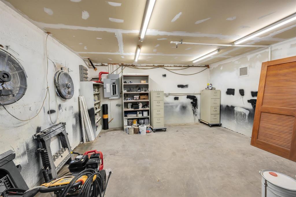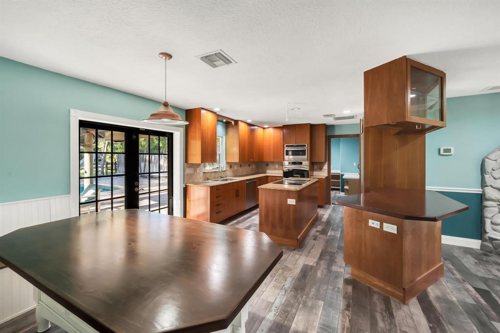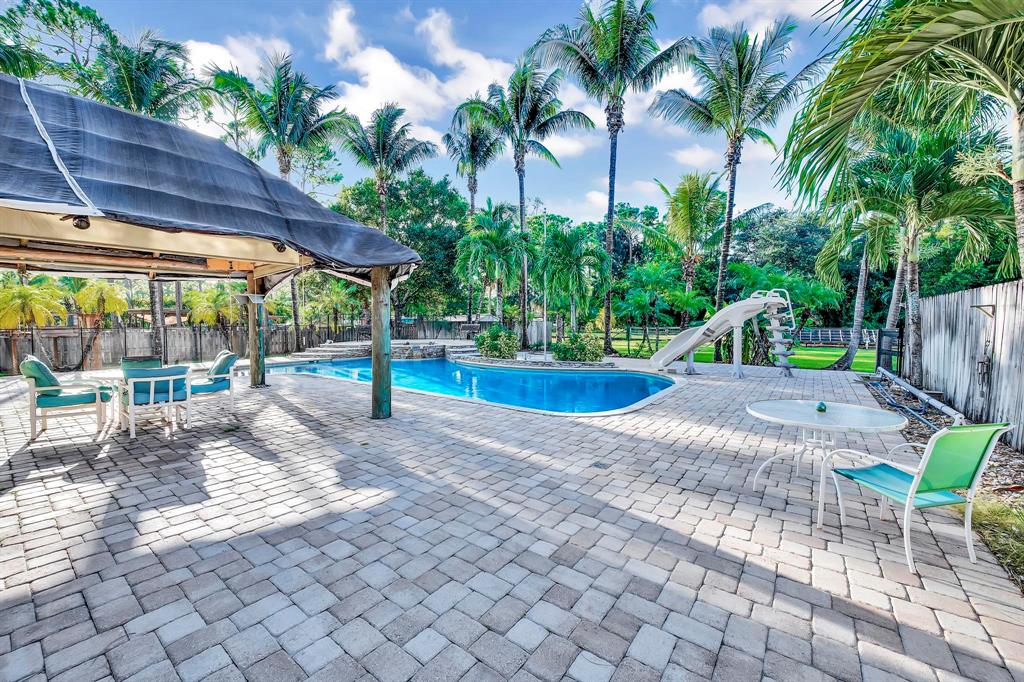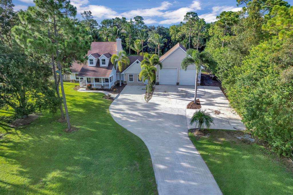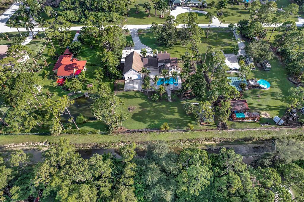Follow your heart & find home at this gorgeous ranch fenced in on 1.25 acre in The Acreage. Fully air conditioned 30 x 50 detached garage w/(3)10' rolling doors, built in workshop w/cabinets, electric, & office loft. Exterior features a resort style 38,000 gallon pool w/shallow wading/sun bathing area, slide, spa (solar panel heated), brick paver patio w/tiki hut, irrigation, playground & two sheds. This 2 story country home kitchen features book matched cherry wood cabinets, granite counter tops w/island w/cooktop, custom breakfast nook table & benches. Downstairs master bedroom & 1 spare w/private entrance, living room w/fireplace & surround sound. Upstairs has 2 bedrooms, 1 of which is an efficiency w/Jack & Jill bath. Spray foam insulation. RV, Boat & parking for all of your toys!
