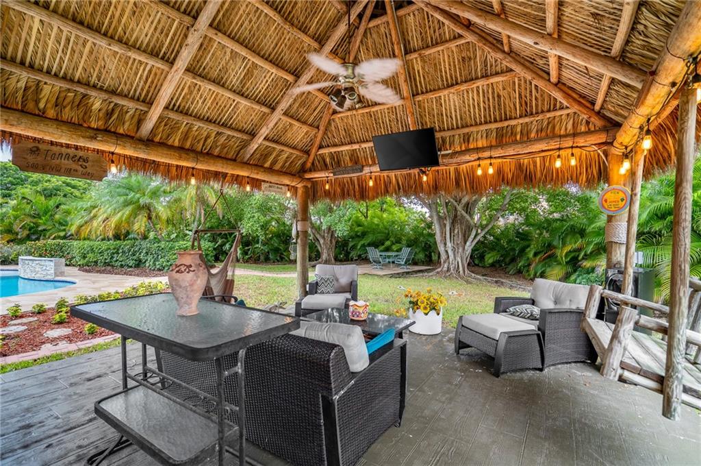 Welcome to Mariner’s Cove, a private haven of only 131 homes w/ 24/7 manned guarded gate. As you pull into your own personal 1/2 acre resort, you’ll take notice of a driveway that can hold up to 14 cars. The home has been completely renovated and includes an updated kitchen, bathrooms and other elements. Bedrooms upstairs have new carpet & paint. The kitchen has custom pull out drawers for spices, garbage and utensils. A/C units were replaced 8 months ago. Two new hurricane doors in the back of the house have recently been installed. Let’s take a walk to this incredible backyard: Wooded privacy in every direction, a recently renovated tropical pool w/waterfall and led lights that change colors. Head over to the Tiki hut for rest and relaxation, rain or shine.