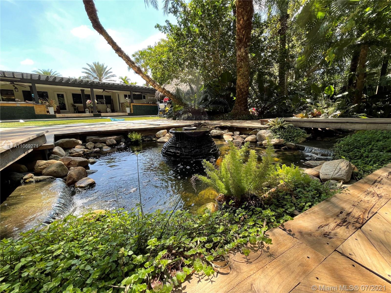 A beautiful, must-see turn-key home, that is one of a kind, completely remodeled. Custom kitchen with large center island quartz countertop, marble backsplash, top of the line appliances including a gas range. Impact windows and doors. Neutral tiles throughout and all bedrooms have wood floors. Master bathroom with custom dual sink and designer shower. Large living, dining, and family room with view to the most fabulous yard with a cabana bath. Tropical oasis backyard that feels like you are in Tulum, Mexico, with all its exotic plants, trees, and orchids. Custom oversized pool with waterfall, custom bar, and outdoor kitchen, including a pizza oven. Separate area with spa and bar. Amazing KOI ponds and professionally designed landscaped yard. Large barn-style workshop. A must-see!!