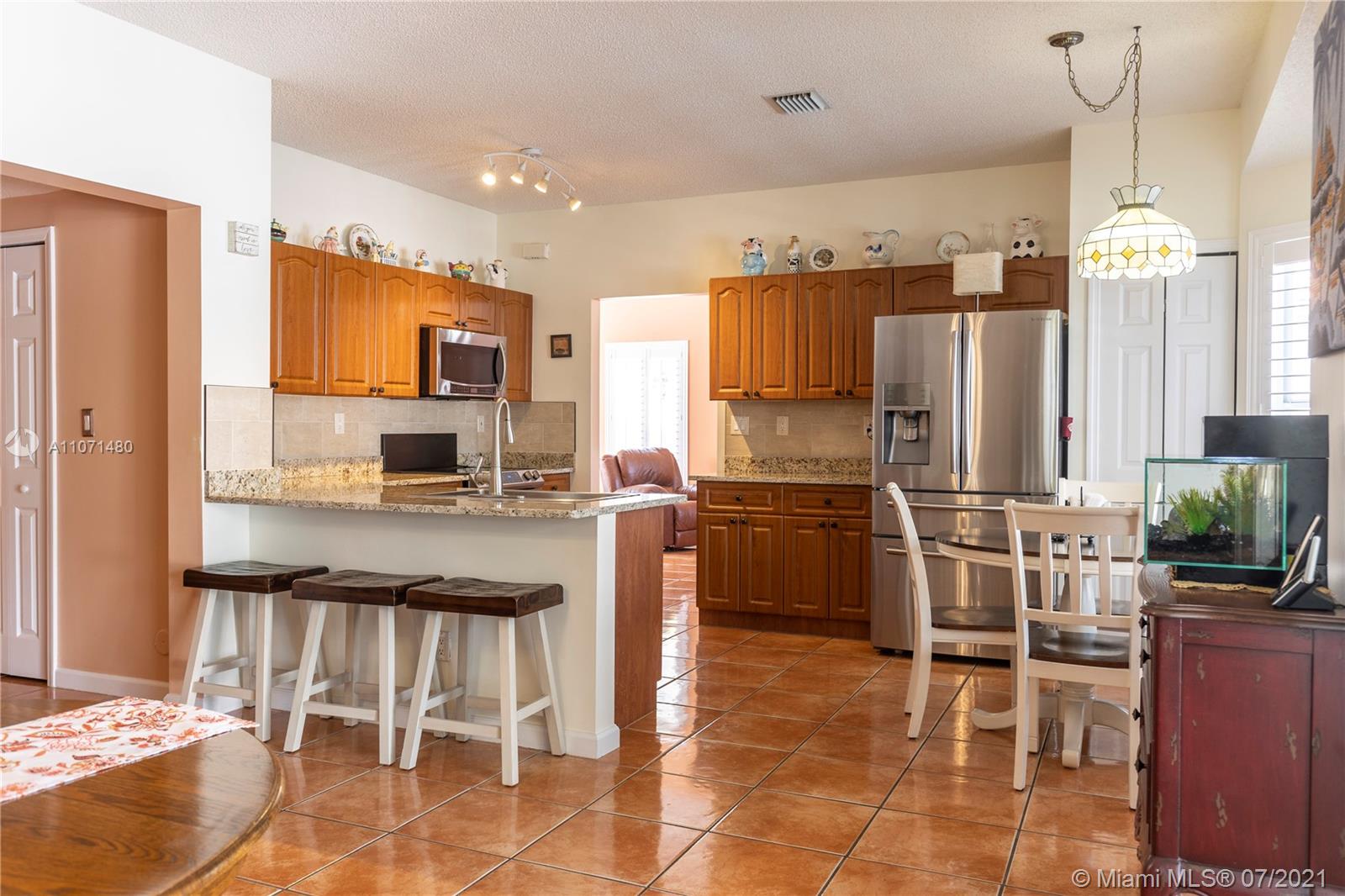 Spacious 5 bedroom, 3 bathroom pool home in Poinciana Parc in Davie. Original owners who have meticulously maintained the home. Our home is the largest model, The Ambassador Model featuring a full bedroom/bathroom downstairs and 4 bedrooms and 2 bathrooms upstairs. Plantation shutters throughout the home, Saltillo floors downstairs and engineered Cherry wood floors upstairs, recently updated master bathroom and ceiling fans in all rooms. Enjoy the oversized backyard with large covered patio, newly resurfaced pool and Banana, Mango and Avocado trees. Association dues include the front lawn and 24 hour security. Hurry!! This beautiful home won’t last.
