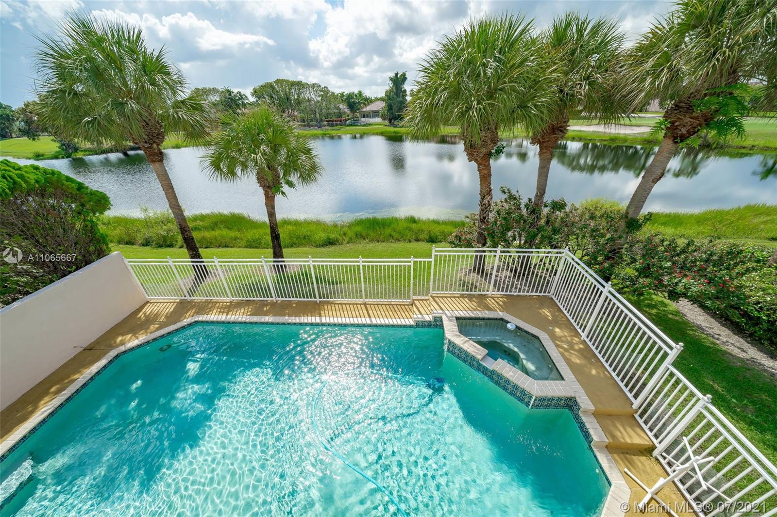 Spectacular 4/3 waterfront Single Family Home in Grand palms! Definitively one of a kind! Impeccably maintained and being sold directly from original owners. House features a balcony with water views, heated and fenced swimming pool, hot spa, 2017 AC, new water heater, accordion shutters, laminate floors throughout and a bright/spacious layout. Enjoy Grand Palms Golf Resort lifestyle: Community offers gated entry, 24 hr security, beautiful palm lined streets, green spaces, children playground, biking/jogging paths and a peaceful atmosphere. HOA includes basic cable, ADT alarm, lawn service, exterior painting and pressure cleaning. A+ Charter School System and great public schools. Shopping and restaurants just outside community. Great Loacation!