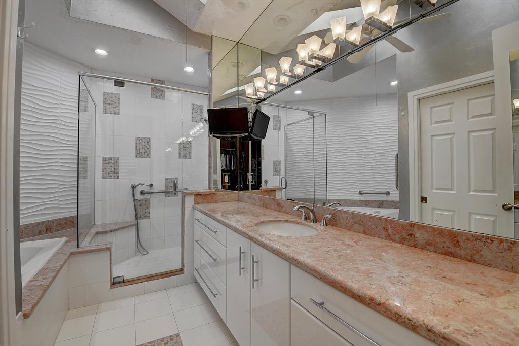 Best home on market in Broken Sound. Extremely bright and spacious 3 bedroom 3 full bathroom plus office. Home is in mint move in condition. Architectural details and double high ceilings bathe it in warmth and contemporary style. The kitchen was remodeled and so were 2 full bathrooms. All bedrooms ensuite. beautiful home office. New floors. New heated waterfall pool and all new pavers. Covered lanai, lush landscaping. New hurricane garage door opening to spacious newly painted 2 car garage with plenty of storage built in.Surround Sound /home theater in master bedroom and living room. New 82' TV. all new window coverings. Extra large driveway. home situated on quiet cul-de-sac. Furniture is negotiable. 2 new AC units, New hot water heater, central vac, ice-maker, microwave, built in wine