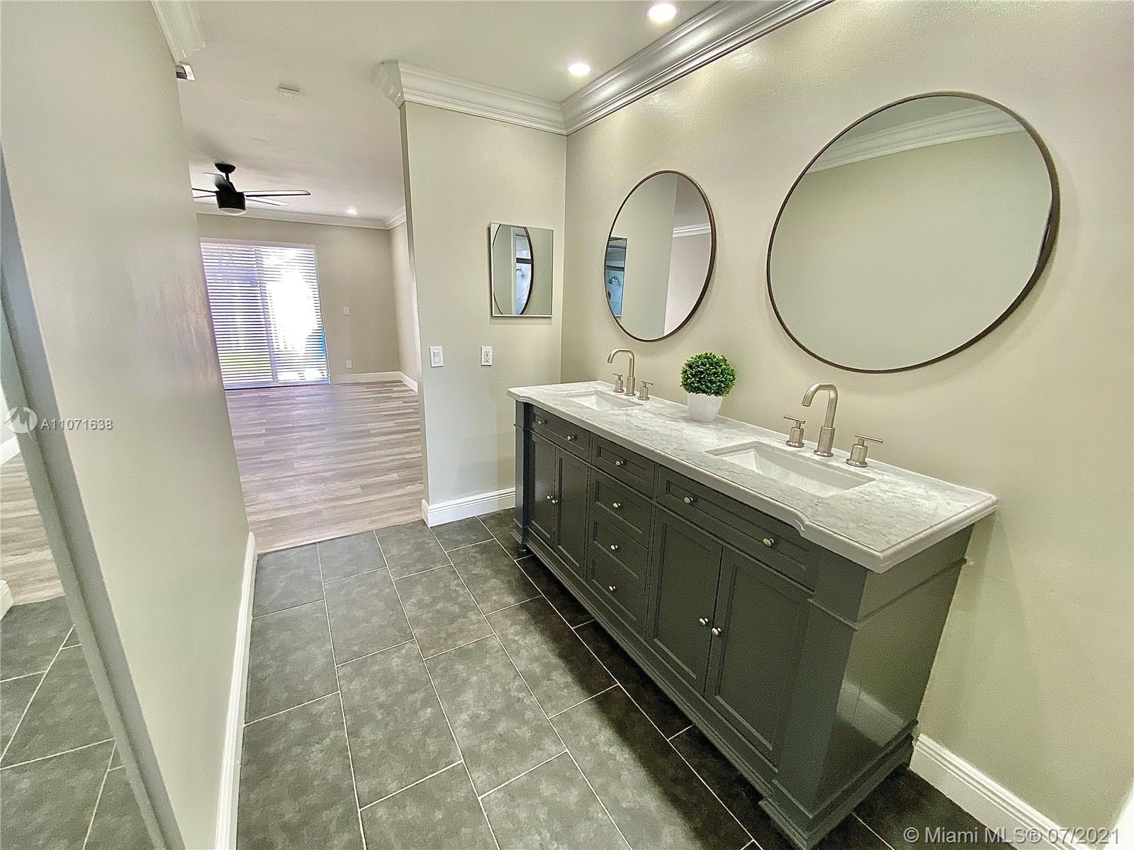 Are you looking for a freshly remodeled home in the heart of Weston? This architecturally distinct property offers a unique floor plan, featuring all new flooring, new interior paint, smooth ceilings, new stylish lighting, a sleek kitchen with quartz counters, plenty of storage & work space, cooking hood vent and all stainless appliances. All bathrooms have been updated with new tile, vanities & mirrors. Stay cool with brand new ceiling fans with lighting in every bedroom & family room, sheer window blinds throughout, Roof 2010. Relax in your covered & screened patio & fully fenced private yard with concrete deck. Centrally located in quiet street, within easy reach to community pool, Country Isles Park, Midtown Athletic Club & I-75. *New Accordion shutters are in the permitting stage*