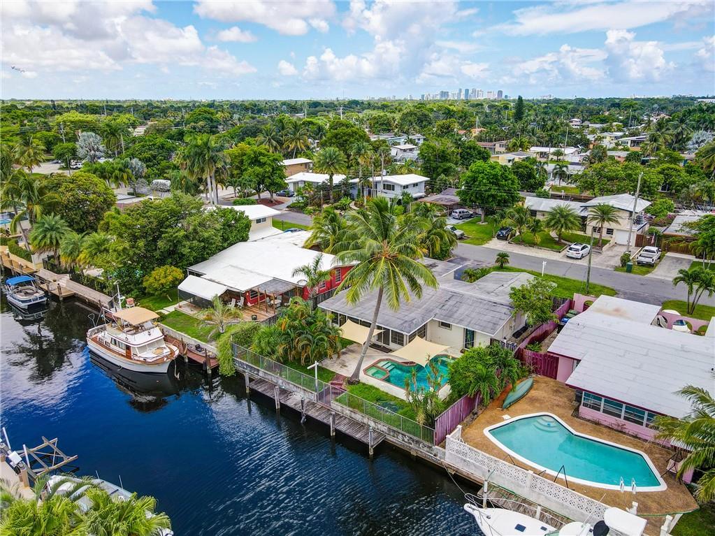 Ocean Access with no fixed bridges. Enjoy Boating and water sports from your own backyard. 65' waterfront pool home in the boating community of Lauderdale Isles. Just minutes away from all major highways, FLL International airport, downtown and the beaches. Direct ocean access by boat via the New River. Community boat ramp just two streets away. Wide open floor plan with vaulted ceilings in the living area. Originally a three bedroom two bath home, one wall was removed to make two master suites. Hurricane shutters, fenced yard with storage shed. The perfect renovation opportunity to create your own tropical paradise to entertain or just relax waterside.