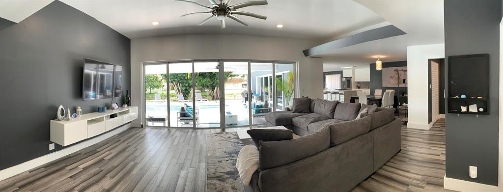 Tons of upgrades! Hardwood bamboo floors, impact windows, gas stove, roof 2015 with solar panels, radiant barrier in attic to deflect heat, LED pool, 2 cabana baths, boat dock, 2 water heaters 2019, 5 ton AC 2016, storage racks in garage, Ring alarm system, temp reducing paint in pool deck - complete kitchen and bathroom renovations. Home sits on 10,468 sqft lot!