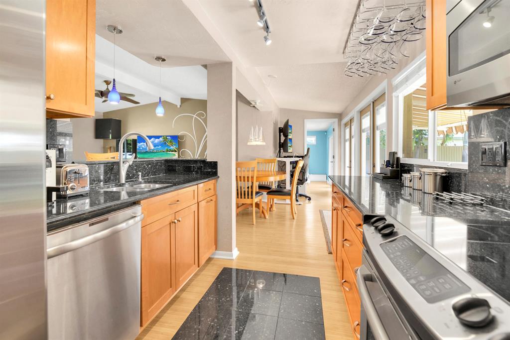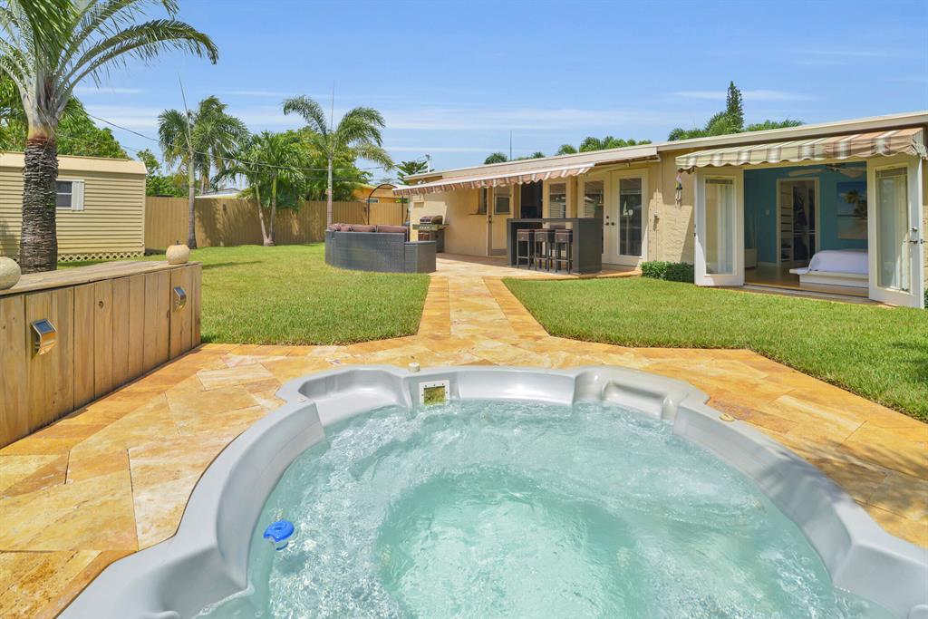 Fabulous rare opportunity to own a Beautiful Upgraded & Extremely well-maintained home sitting on a 7,500 SQF lot. Conveniently located right off US1 Federal Highway, and 10 min from beautiful beaches. This Florida-style home with 2/2 split open floorplan is sunny and bright. Enjoy an expansive backyard with gorgeous landscaping surrounded by a private-fenced yard with garden shed. High-end travertine floor patio, with a big in-ground Jacuzzi with direct access from your master suite. Solid Bamboo flooring throughout, nicely renovated kitchen with granite countertops, 3-yr old GE dishwasher, stainless steel appliances, convention microwave & solid wood cabinets. Partially Impact Windows. New Electrical Panel, A/C & Eco Smart tankless hot water heater, 3-yr old Whirlpool W/D. LED lights...