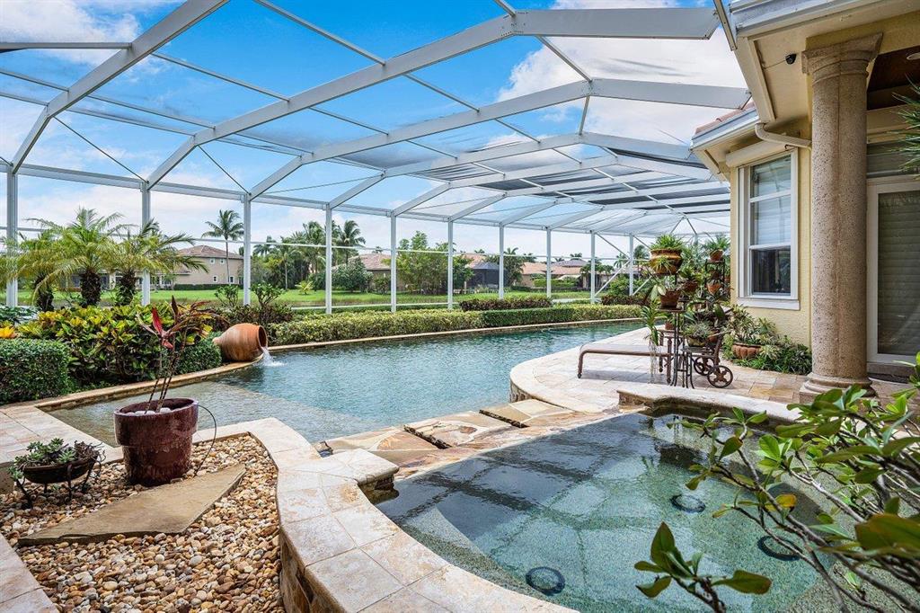 Situated on one of the largest exquisitely landscaped waterfront lots (.82 acre) at Ibis Golf & Country Club, sits this impeccably maintained, very unique 5-bed/5-bath grand custom estate. Built to the highest standard of design, construction, material selection and craftsmanship. Incredible south-facing panoramic views of the golf course, lake and sunsets from almost every room. Endless list of features include a chef's kitchen complete with Subzero/GE Monogram appliances & double dishwasher, two master/VIP suites, accommodation for future elevator, whole-home integrated audio system, wired security camera system, graciously sized downstairs master closets & bathroom, upstairs living/game room, wine cellar and SO much more (FEATURES LIST AVAILABLE UPON REQUEST/MLS DOCUMENTS SECTION)