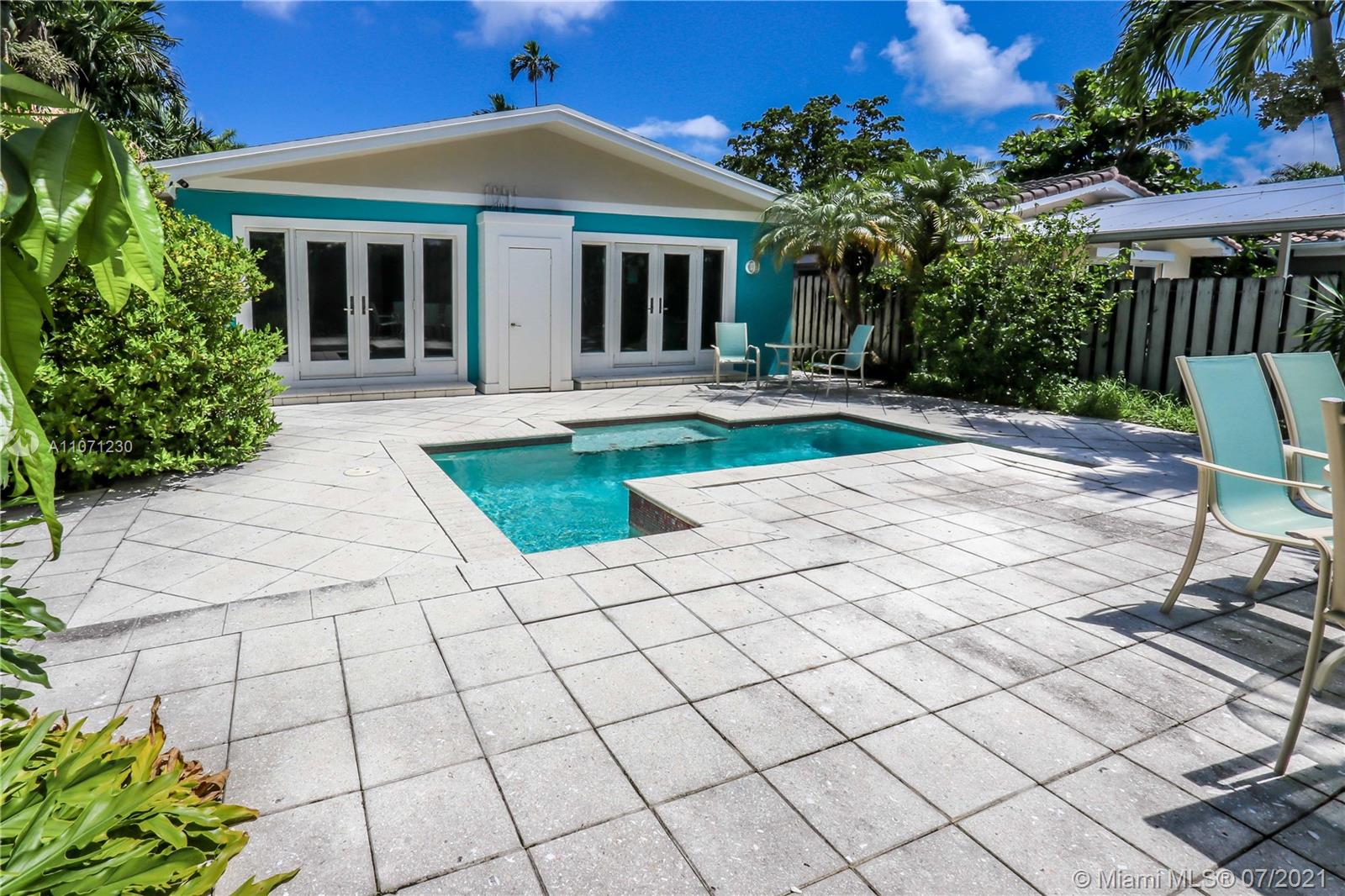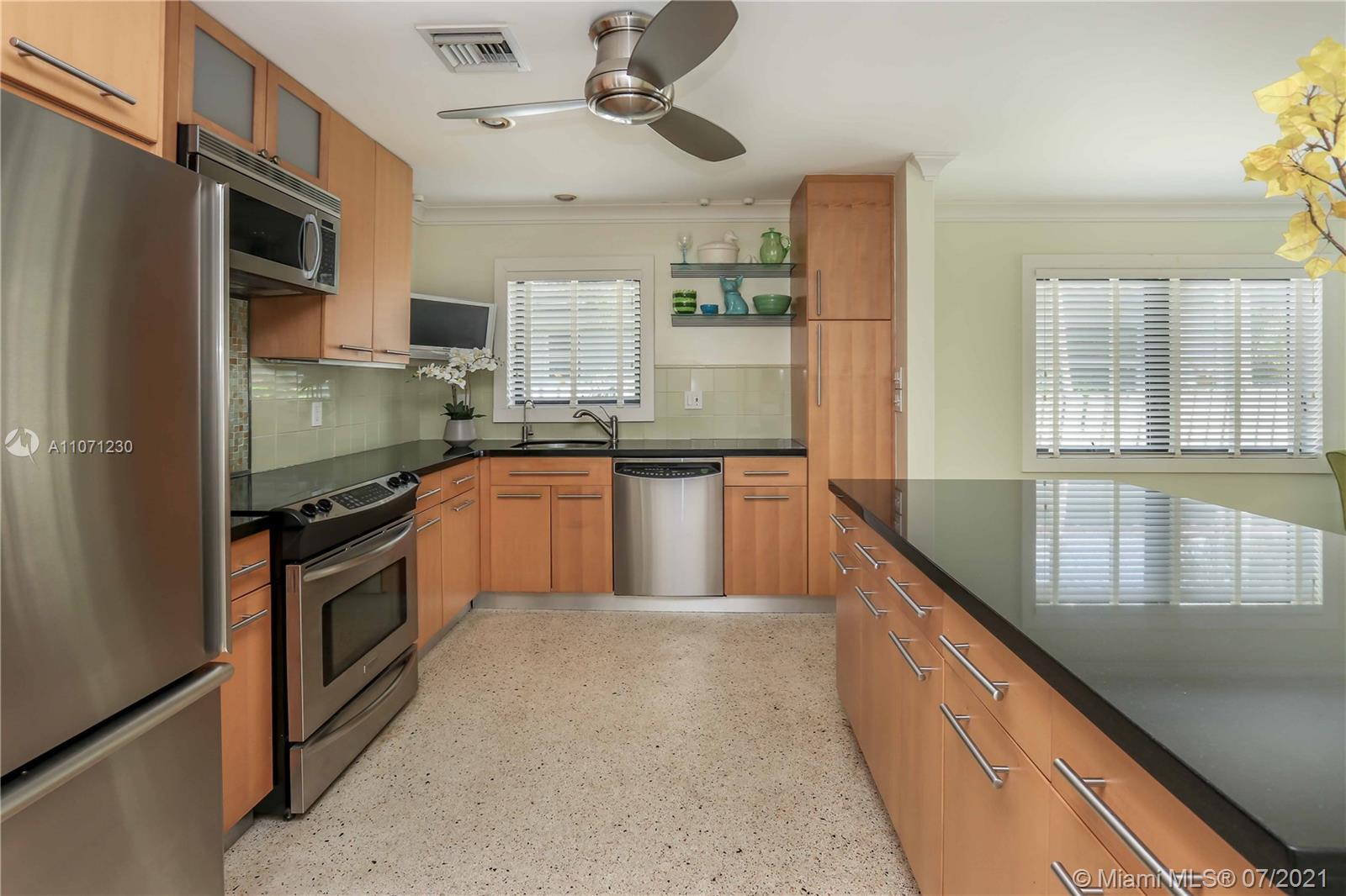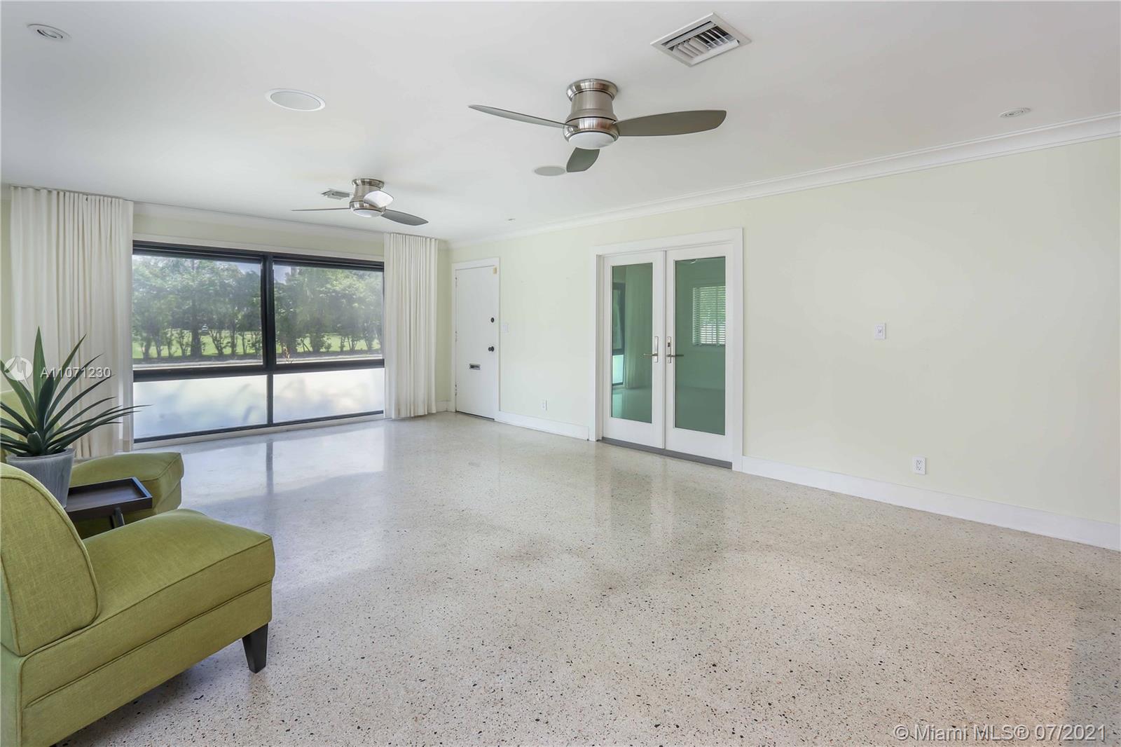 BEAUTIFUL 2 BED/2 BATH PLUS DEN THAT EASILY CAN BE USE AS A 3RD BEDROOM! THIS HOUSE FEATURES OPEN KITCHEN WITH STAINLESS STEEL APPLIANCES, GRANITE COUNTER TOPS AND WOOD CABINETS. TERRAZZO & HARDWOOD FLOORS WITH CROWN MOLDING. MASTER BEDROOM WITH LARGE CALIFORNIA CLOSET. UPDATED BATHROOMS. FRENCH DOORS LEADING TO BEAUTIFUL POOL. PRIVATE FENCED YARD, PATIO & POOL AREA W/ TROPICAL LANDSCAPING. GOLF COURSE VIEW. IMPACT DOORS & MOST OF THE WINDOWS. INSIDE STORAGE ROOM.