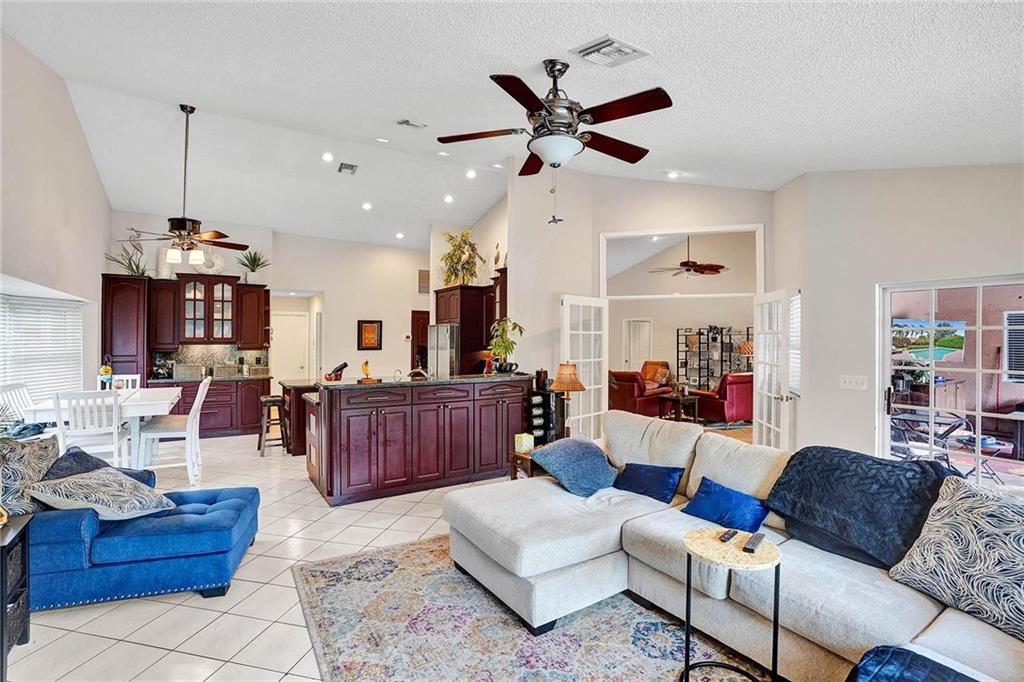 BEAUTIFUL OPEN SPACIOUS LIGHT AND BRIGHT 4/2.1 HOME APPROXIMATE 3134 TOTAL SQUARE FEET. YOU WILL FALL IN LOVE THE MOMENT YOU WALK IN. VAULTED CEILINGS, GREAT FLOOR PLAN, SPACIOUS BEDROOMS. LUXURY MASTER BATHROOM, HUGE FAMILY ROOM. A TRUE CHEF'S DELIGHT KITCHEN--GRANITE COUNTERTOPS, SNACKBAR, AND LOTS OF CABINETS. NEW REFRIG, NEW WASHER,DRYER, NEW IMPACT WINDOWS EXCEPT AROUND THE LANAIS/COVERED PATIO AREA THERE ARE SHUTTERS. SPECTACULAR REFRESHING SALT WATER POOL AND TROPICAL LANDSCAPED BACKYARD. NEW POOL MOTOR. SPACIOUS BACKYARD GREAT FOR PETS FOR BBQS. FURNISHED HOME EXCEPT MASTER BEDROOM FURNITURE. IMMACULATE. READY TO MOVE IN.