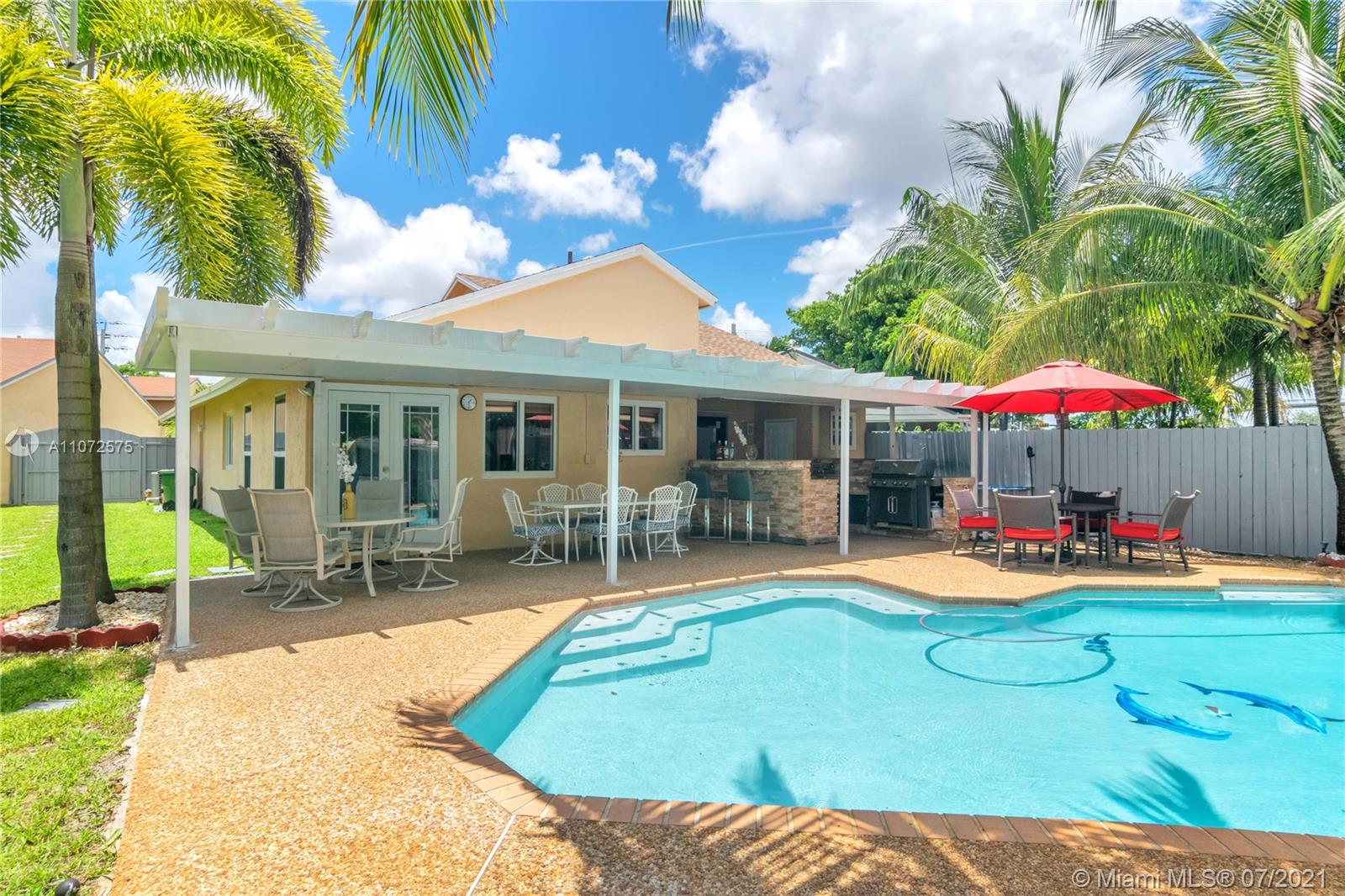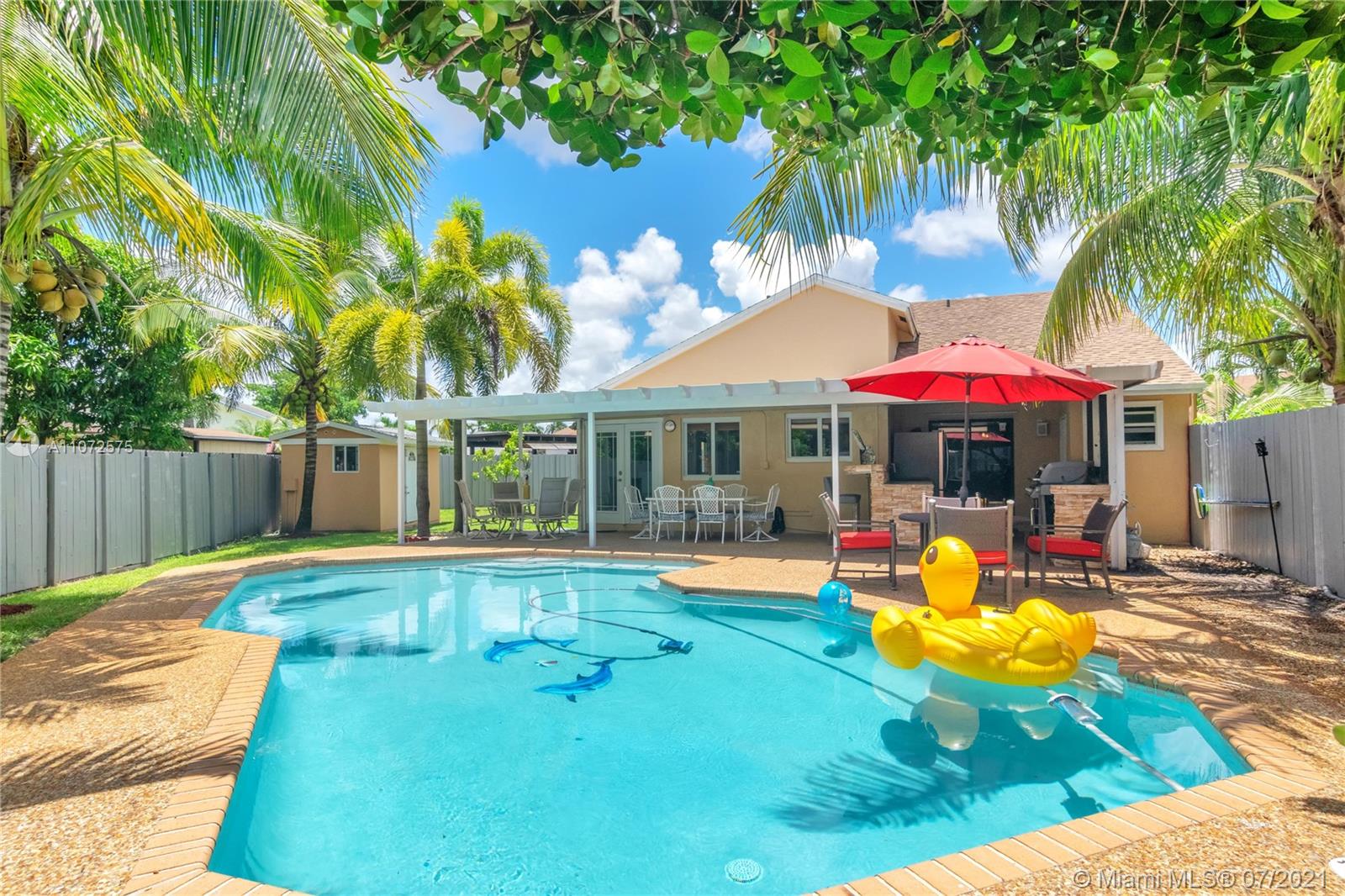 WELCOME TO YOUR OWN TROPICAL PARADISE IN YOUR OWN BACKYARD! THIS GORGEOUS SINGLE FAMILY HOME FEATURES; A BRAND NEW ROOF JUST INSTALLED JULY 2021, A GORGEOUS LARGE HEATED POOL WITH AN OUTDOOR KITCHEN AND BAR EXCELLENT FOR ENTERTAINING AND FAMILY GATHERINGS, SUPER LONG DRIVEWAY, GARAGE CONVERTED BY PREVIOUS OWNER TO A ROOM WITH CLOSET THAT CAN BE A 4TH BEDROOM OR OFFICE, STORAGE W/GARAGE DOOR MOTOR STILL THERE EASY TO CONVERT BACK, OPEN LAYOUT CONCEPT, FRESHLY PAINTED, ABOUT 6 IMPACT WINDOWS, LARGE STORAGE SHED, ONE OF THE LARGEST LOT IN THE NEIGHBORHOOD! CLOSE TO NEW PEMBROKE PINES CITY CENTER, RESTAURANTS, SUPERMARKETS, HIGHWAYS AND MORE! MUST SEE IT TO APPRECIATE IT! WILL SELL FAST.
