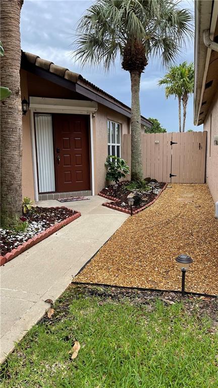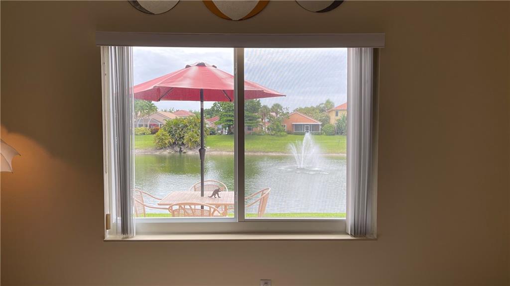 220 hookup for outside Spa-pulled permit (and for fence) exterior was painted 1 year ago. Finished backyard-tile. Lakefront. Main bathroom large shower. Hurricane windows and door 1 year ago except front door with Rolando shutter covering entire door w/ glass. stainless steel appliances, granite countertop, both bathrooms fully remolded. Over-sized tile, carpet in living room and bedrooms only. One owner since new. Meadow Lakes gated community offers access to a gorgeous pool area, tennis & basketball court, covered picnic areas & playground—all in a private, gated setting. The low HOA of $175/month covers this, common area maintenance, plus sprinklers & palm trimming. A-rated schools! Vaulted ceiling, Mirrored wall in kitchen and master Bed