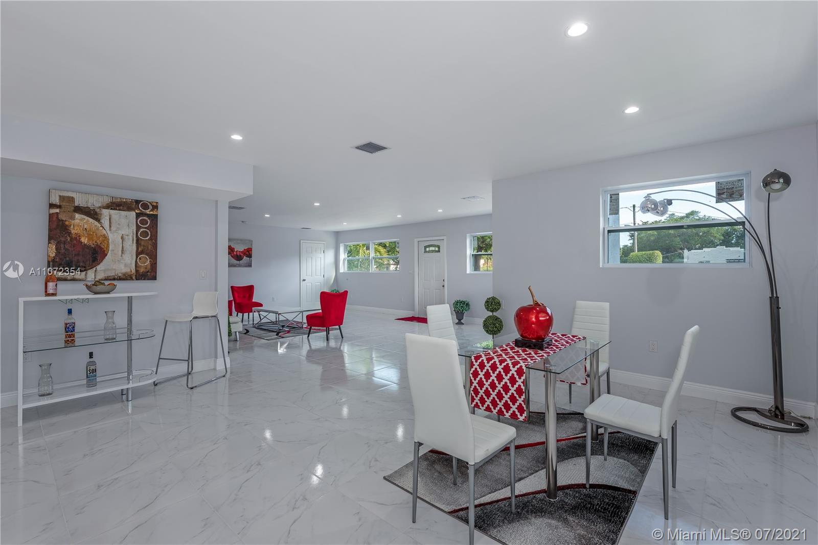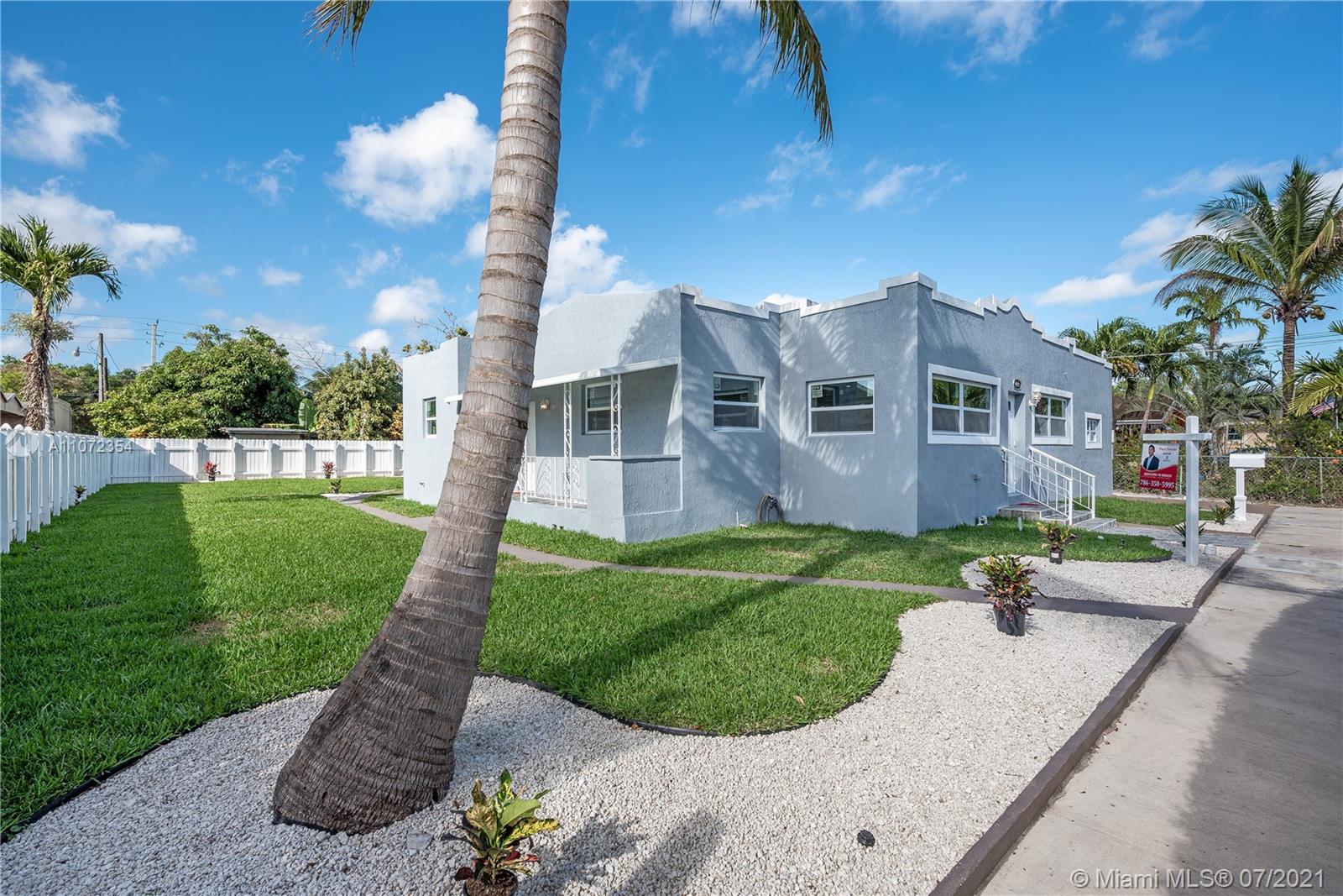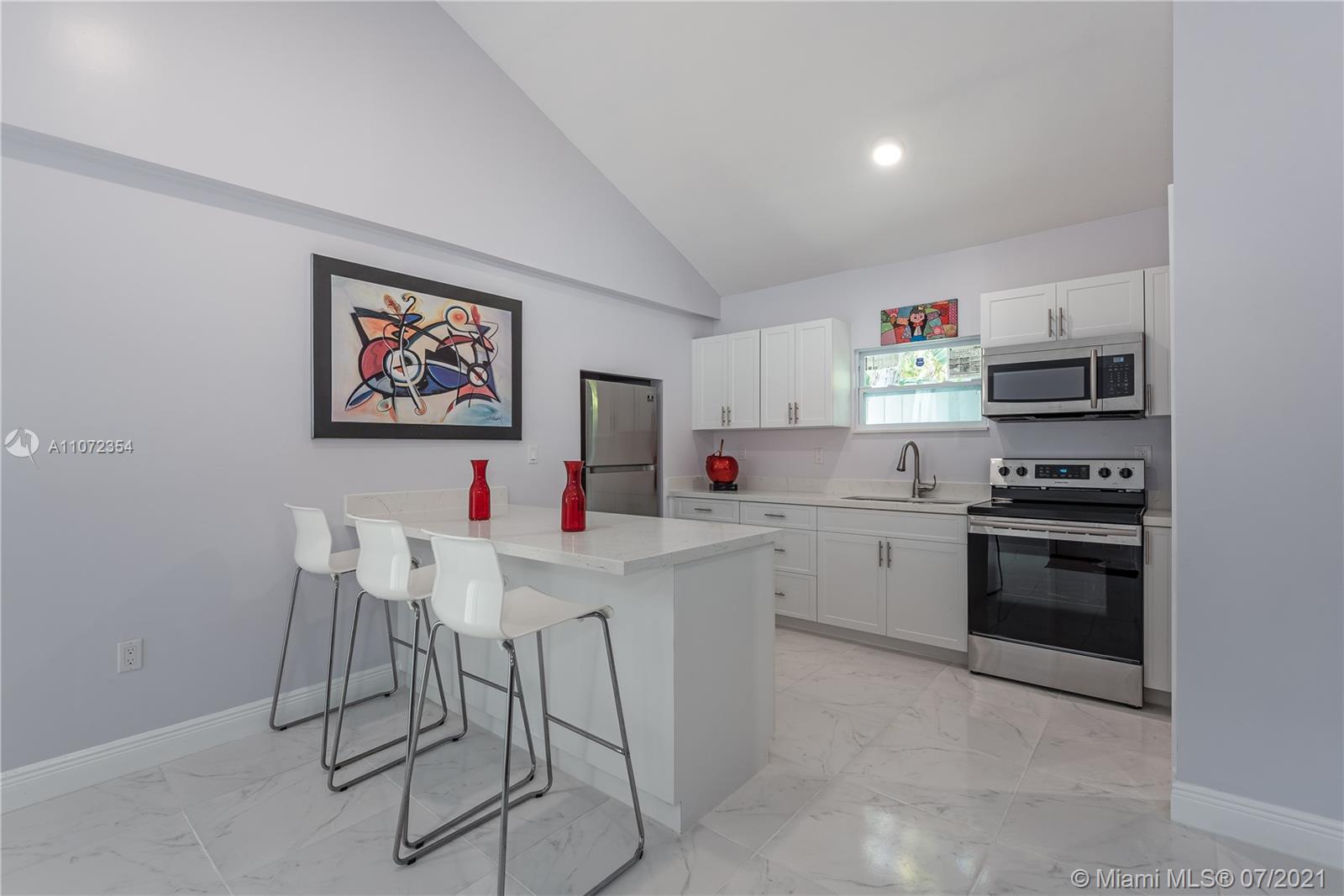 Completely renovated single family home w/ detached Guesthouse. Discover this modern designed home, 3BR/2BA w/ over 2,000+ SF. Illuminated by natural light & recessed lighting w/ impact windows/doors. Open layout w/ gleaming ceramic floors, ample living/dining room & kitchen w/ Quartz waterfall countertops, SS appliances & modern cabinets w/ soft closing. Spacious master BD, WIC & double vanities. This home has a legal 1BR/1BA Guesthouse w/ kitchen & own meter for use as in-laws quarters or rental income. Both homes remodeled w/ permits for new electrical wiring, plumbing pipes, central A/C ducts & units. Immaculately landscaped outdoors w/ patio & space for a pool. This hidden gem has a great curb appeal, located in a quiet & serene enclosed cul-de-sac, near beaches, shops & restaurants.
