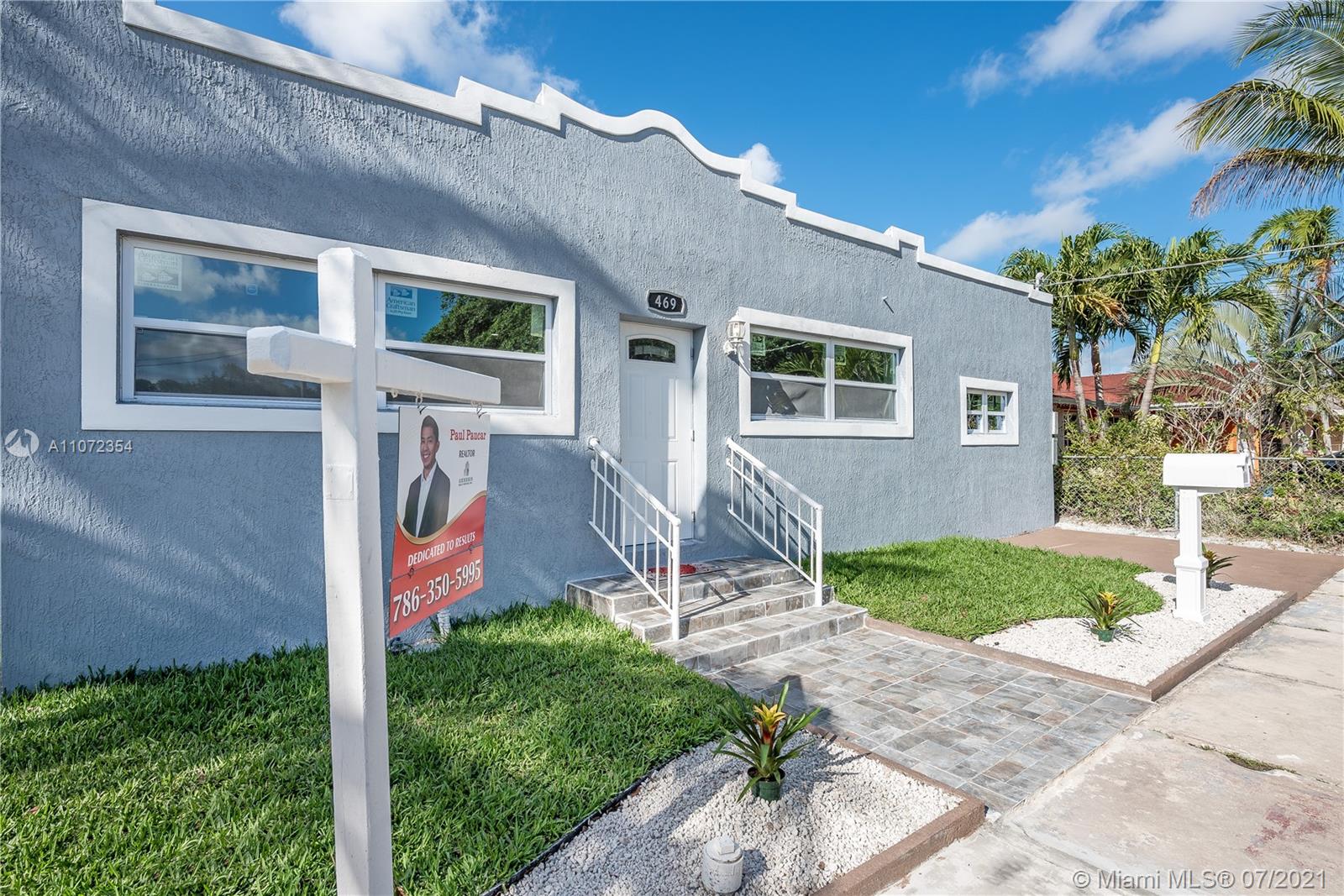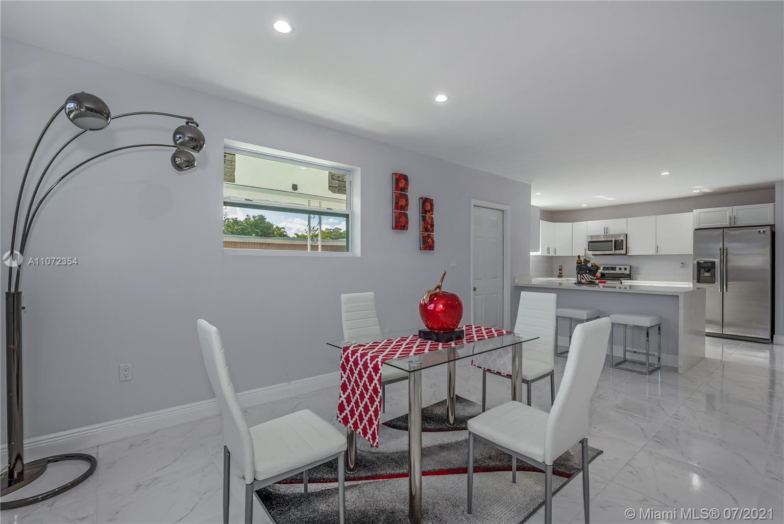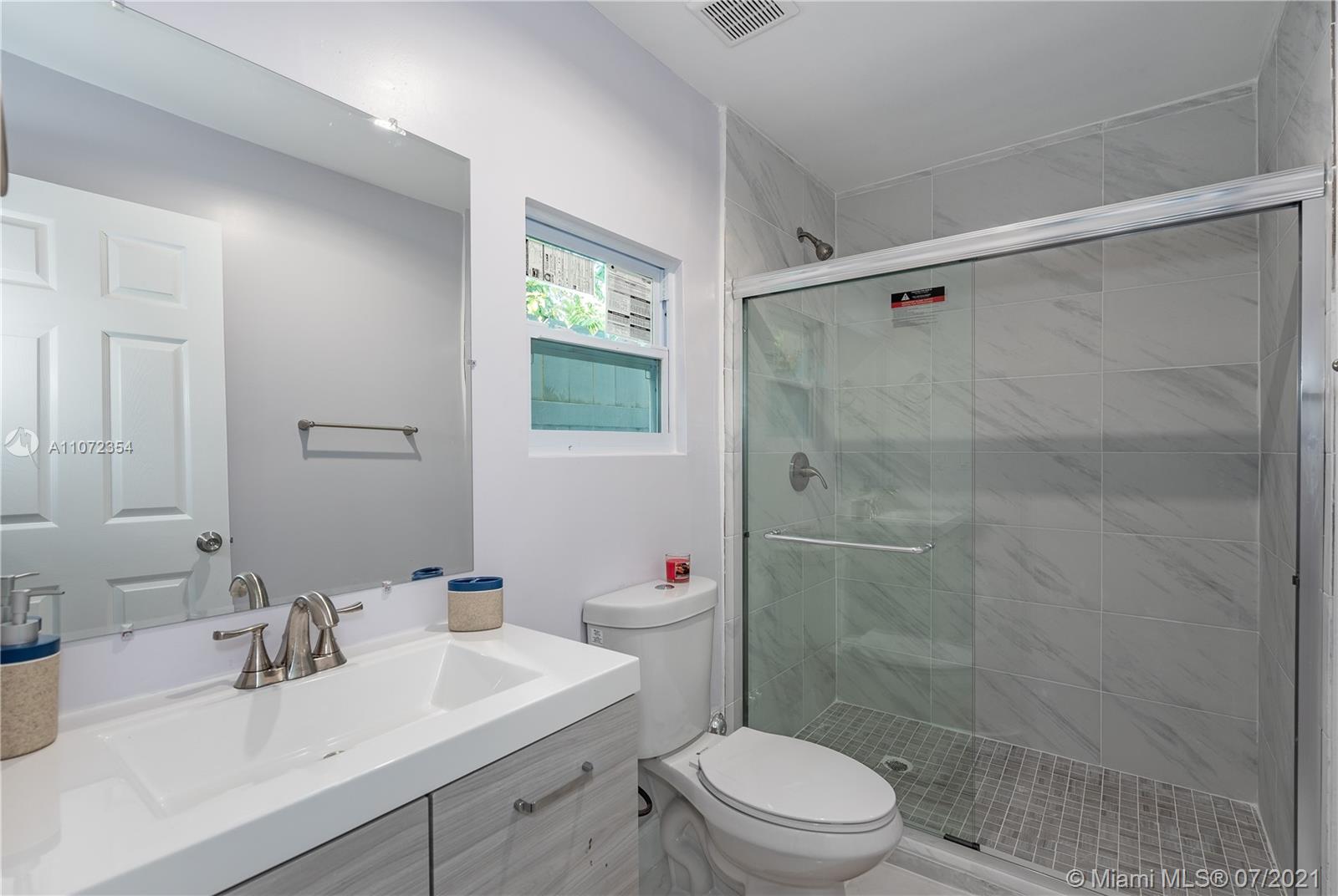 Completely renovated single family home w/ detached Guesthouse. Discover this modern designed home, 3BR/2BA w/ over 2,000+ SF. Illuminated by natural light & recessed lighting w/ impact windows/doors. Open layout w/ gleaming ceramic floors, ample living/dining room & kitchen w/ Quartz waterfall countertops, SS appliances & modern cabinets w/ soft closing. Spacious master BD, WIC & double vanities. This home has a legal 1BR/1BA Guesthouse w/ kitchen & own meter for use as in-laws quarters or rental income. Both homes remodeled w/ permits for new electrical wiring, plumbing pipes, central A/C ducts & units. Immaculately landscaped outdoors w/ patio & space for a pool. This hidden gem has a great curb appeal, located in a quiet & serene enclosed cul-de-sac, near beaches, shops & restaurants.