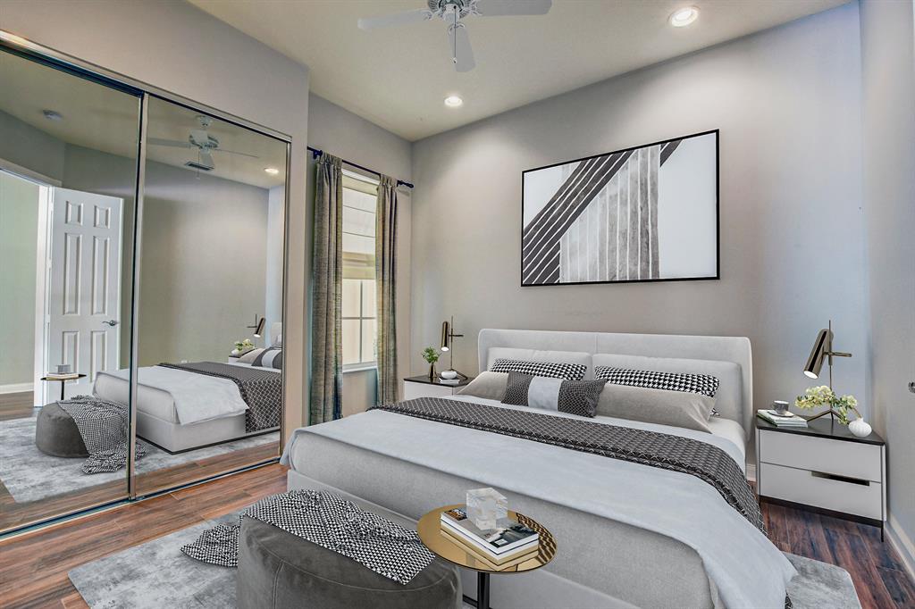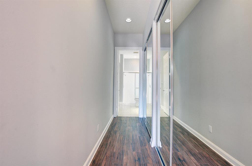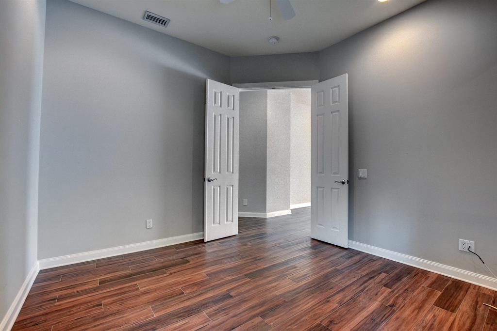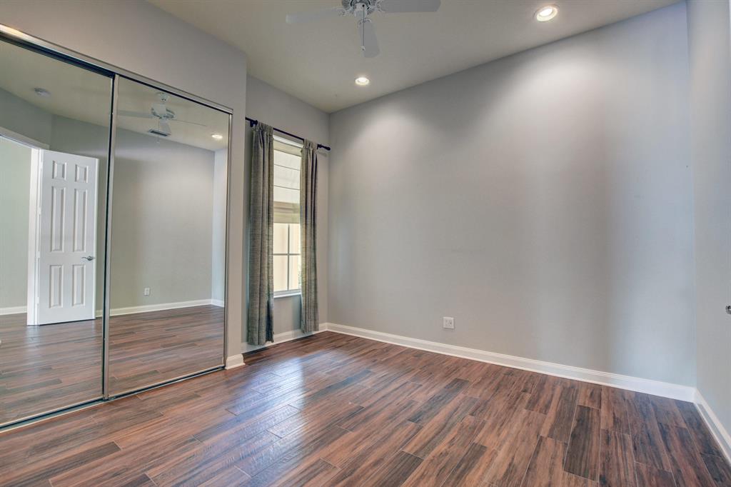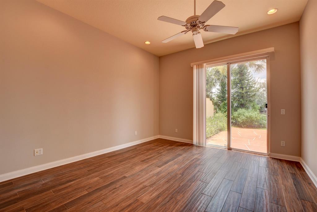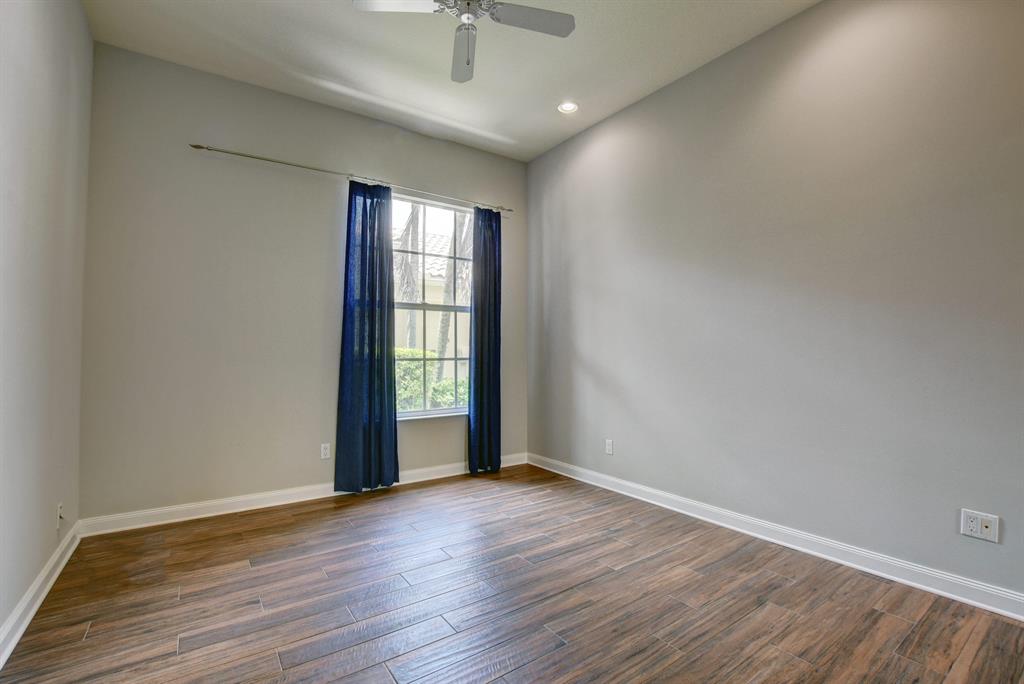 Enjoy the luxury of country club style living without the country club membership fees in this 3 bed 2 bath waterfront home. The home features newly installed wood look tile floors throughout, a galley kitchen with snack bar, new dishwasher, split floor plan, owner's bath with large shower, double sinks and undermount lights. Stop doing laundry in your garage and enjoy having your dedicated indoor laundry room with cabinets, countertop space for folding your clothes and a sink for your hand washables! After a long day enjoy the serenity of the lake while relaxing on the open patio. The backyard has enough space to put in your own private pool. Or you can opt to enjoy one of the many community amenities including going for a swim in one of the three heated pools.
